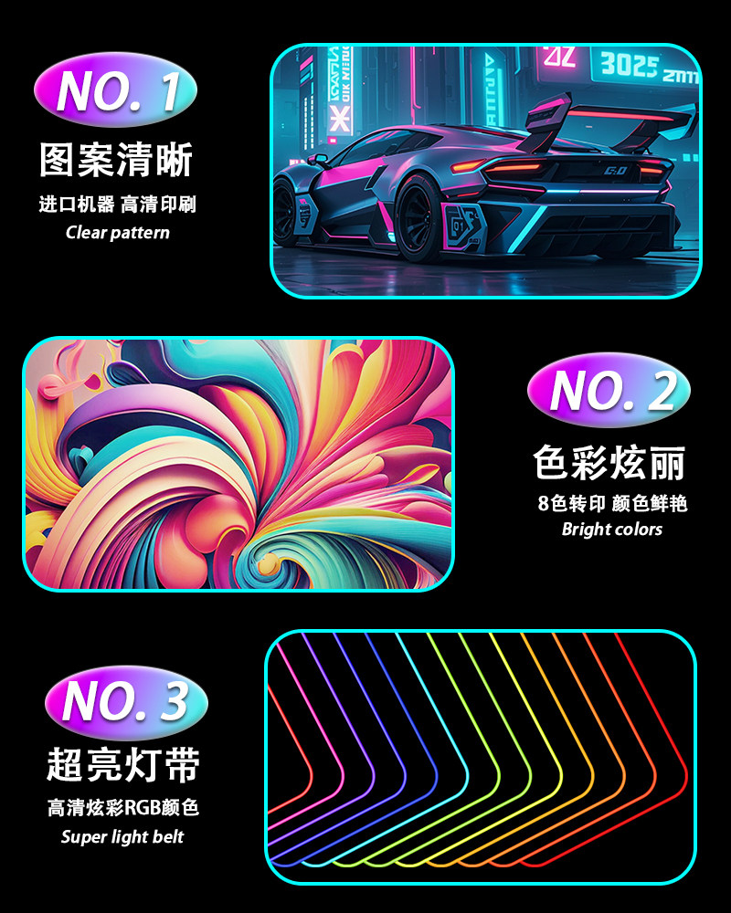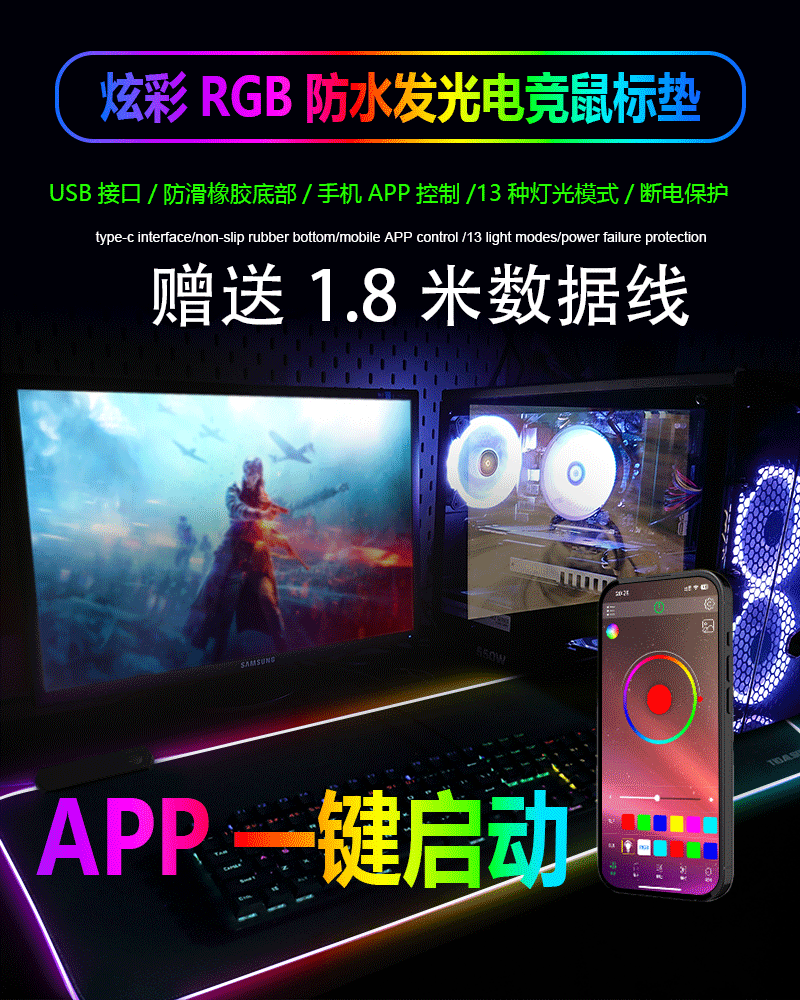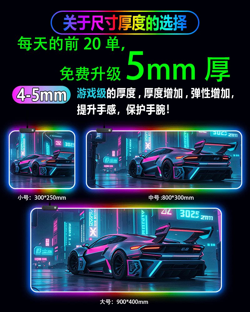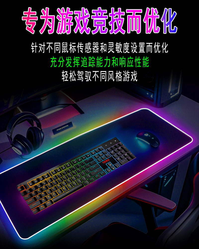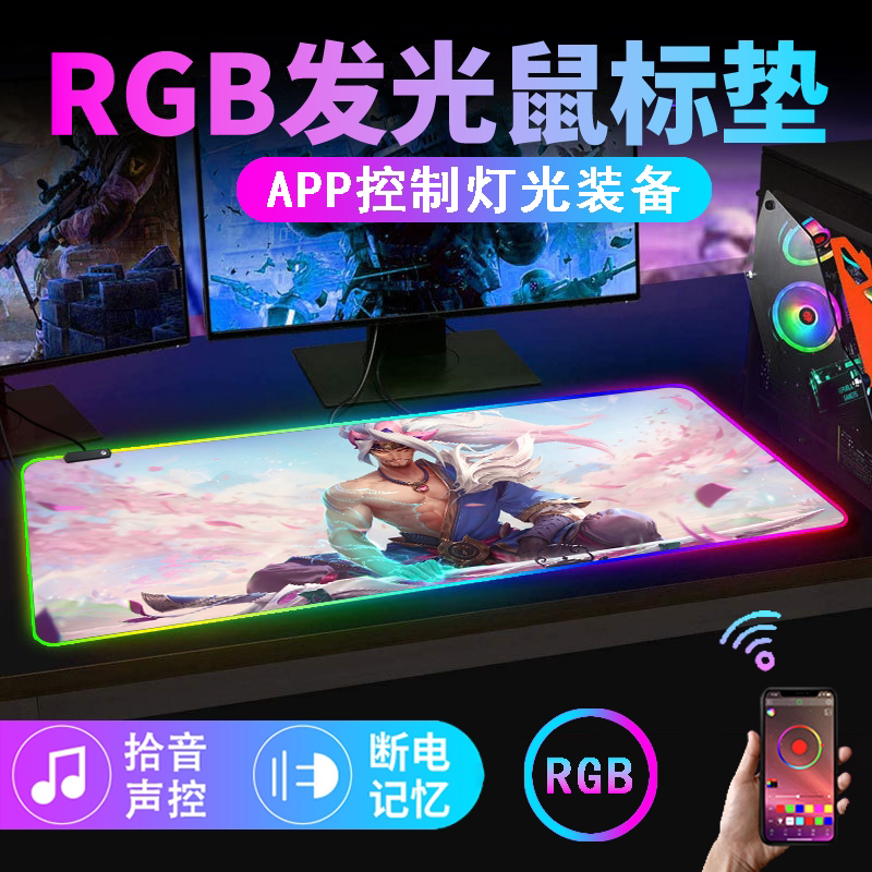 rgb發光滑鼠墊電競遊戯鍵盤墊超大rog電腦桌墊app音樂拾音滑鼠墊