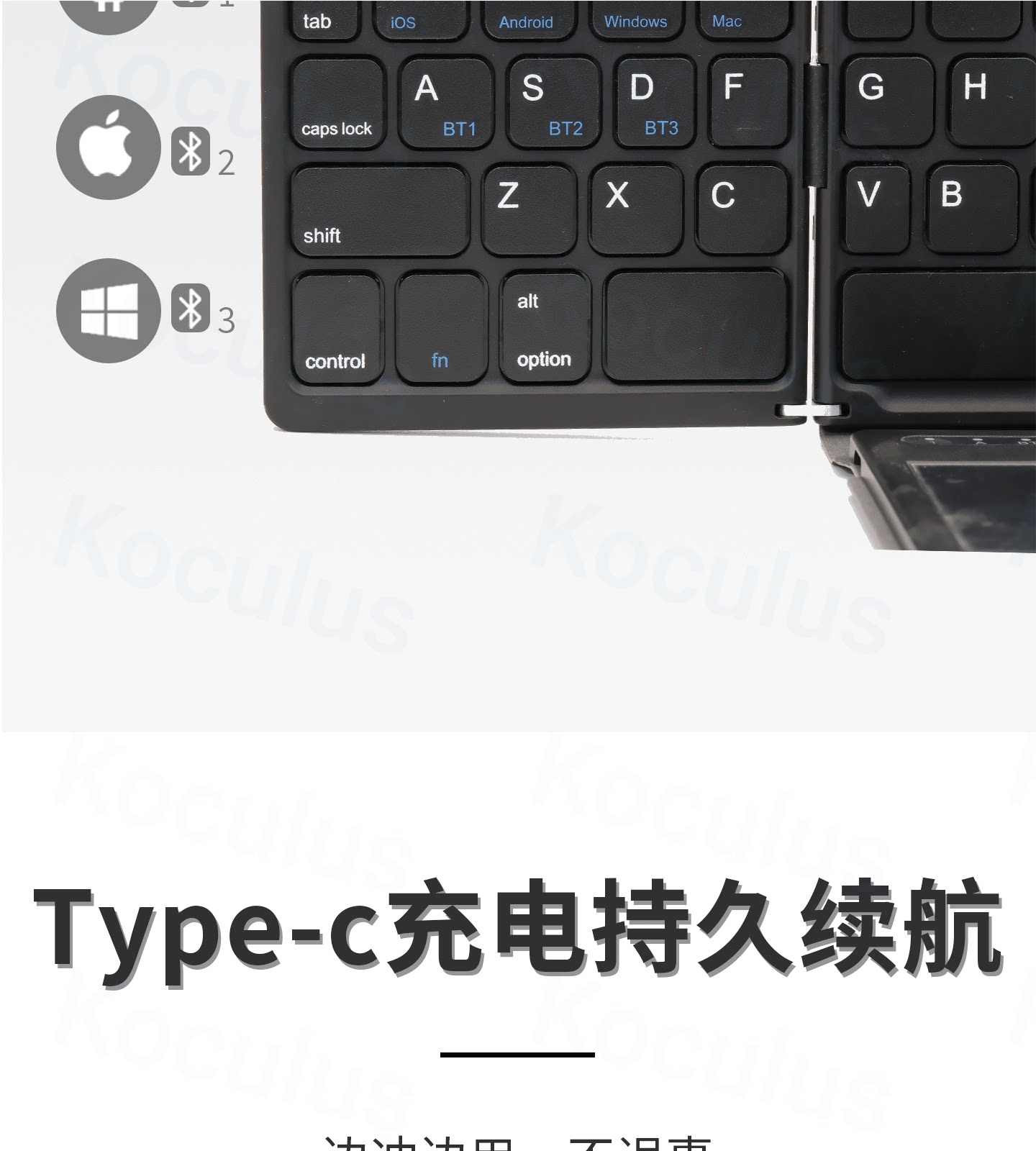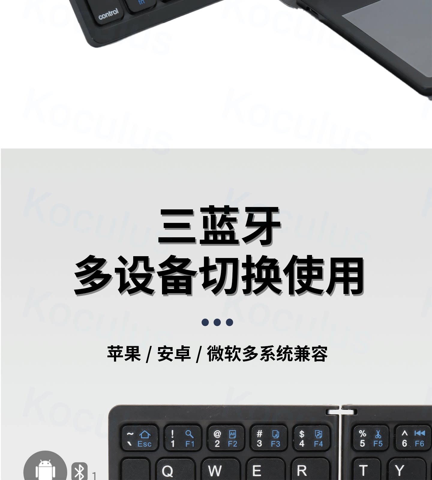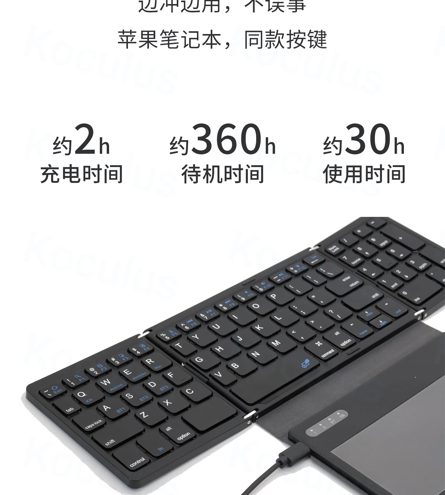 Koculus無線藍牙三折曡鍵盤平板手機筆記型電腦觸控板一體式可攜式