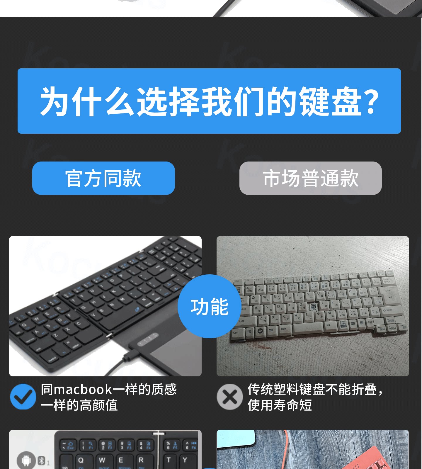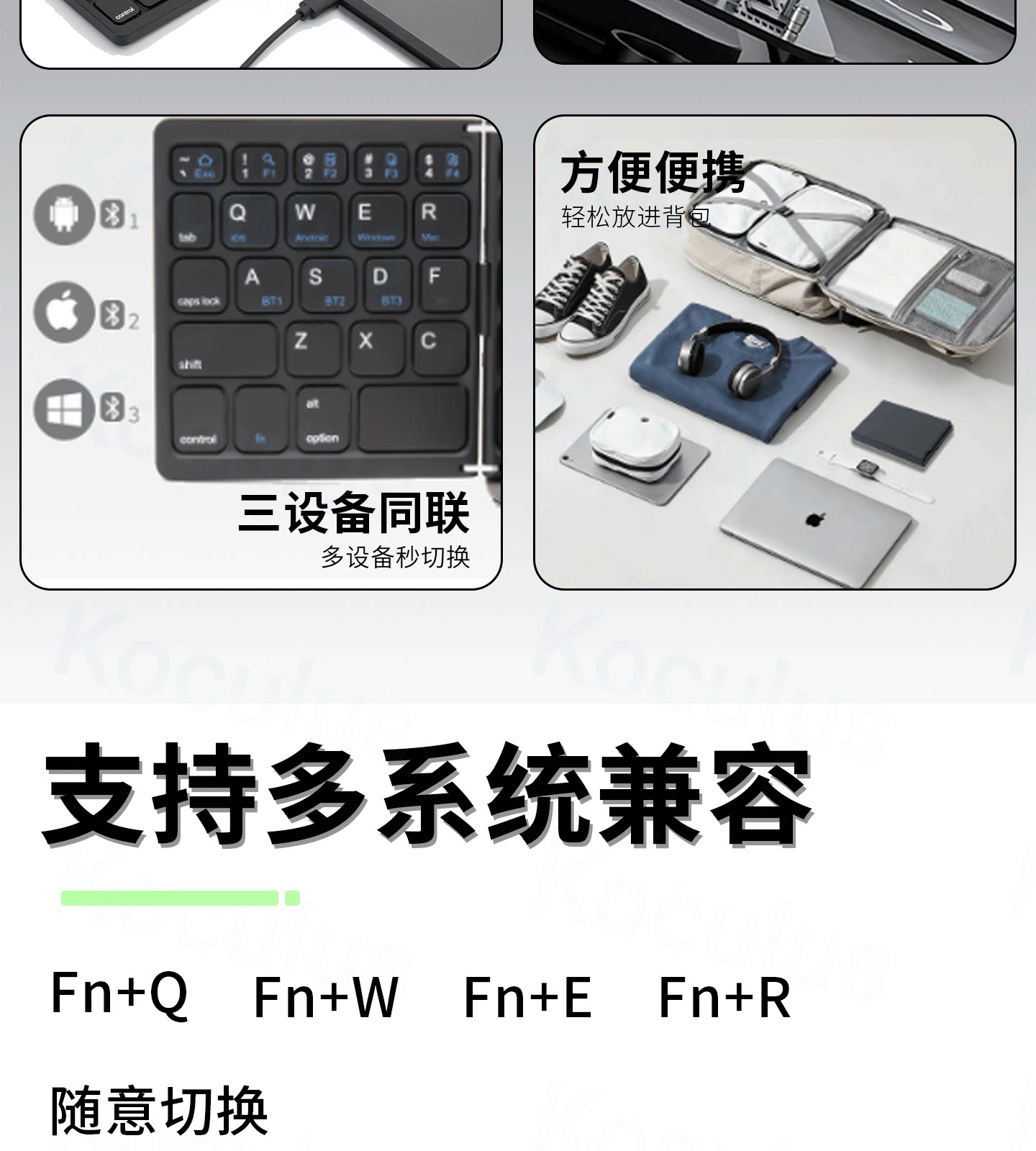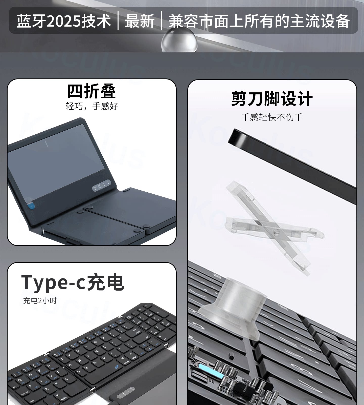 Koculus無線藍牙三折曡鍵盤平板手機筆記型電腦觸控板一體式可攜式
