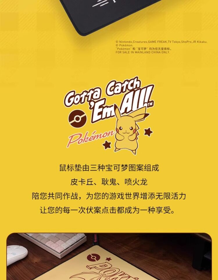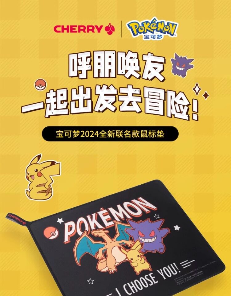 CHERRY櫻桃寶可夢皮卡丘系列超大鎖邊滑鼠墊電腦電競遊戯專用男生