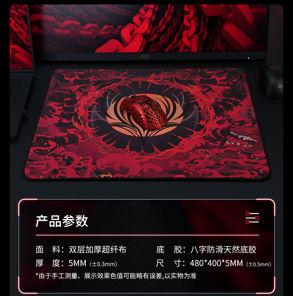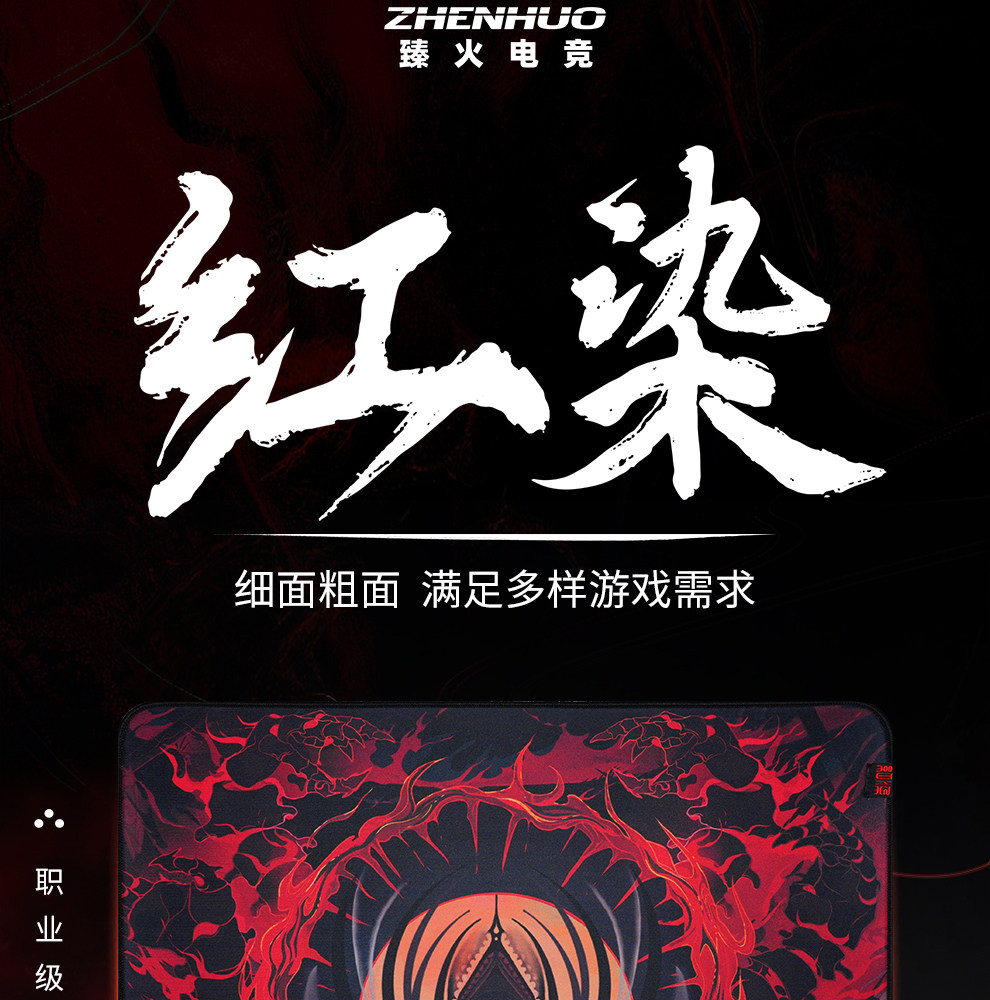 臻火電競【紅染】遊戯電競滑鼠墊無畏契約CSGO LOL三角州防水細面