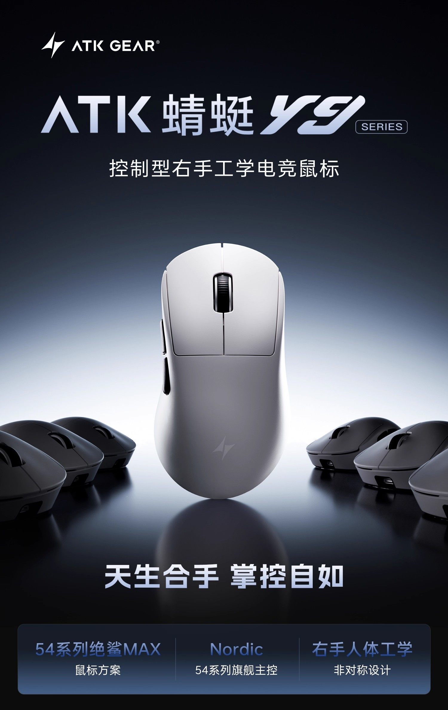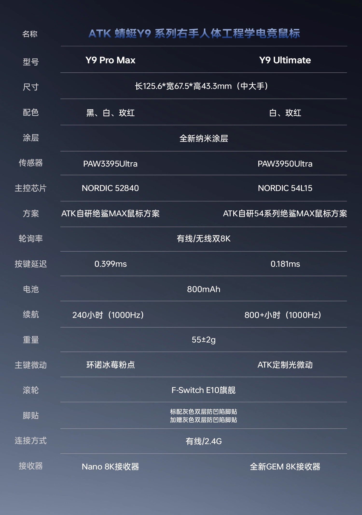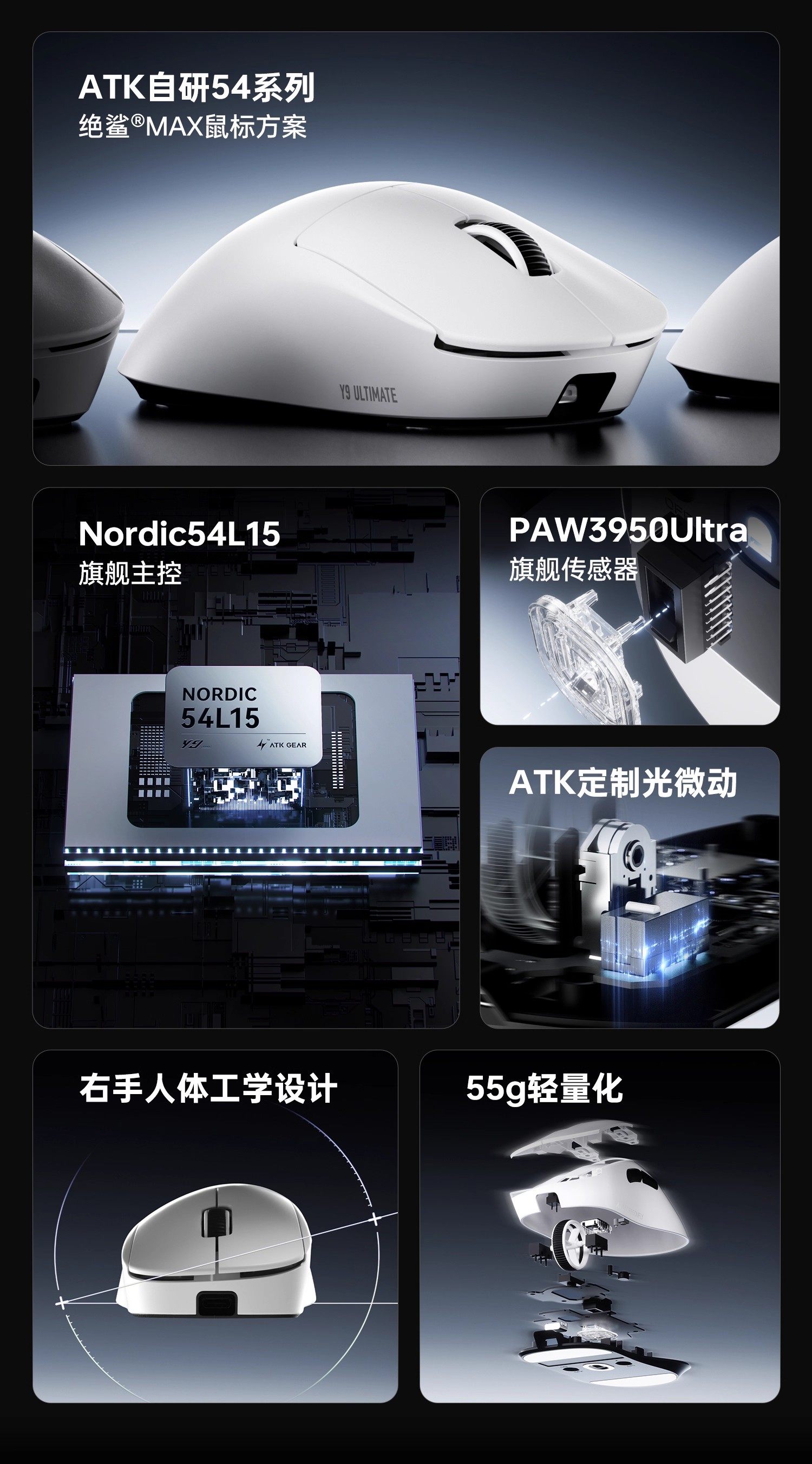 ATK 蜻蜓Y9右手人體工學電競遊戯無線滑鼠雙8K自研長續航無畏契約