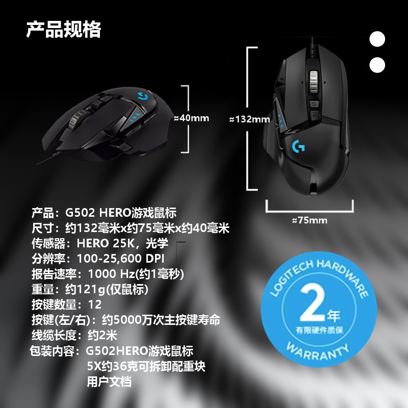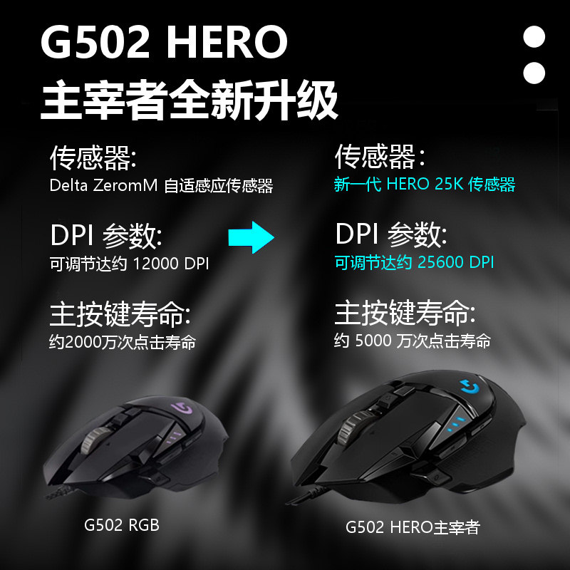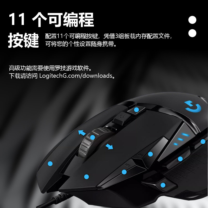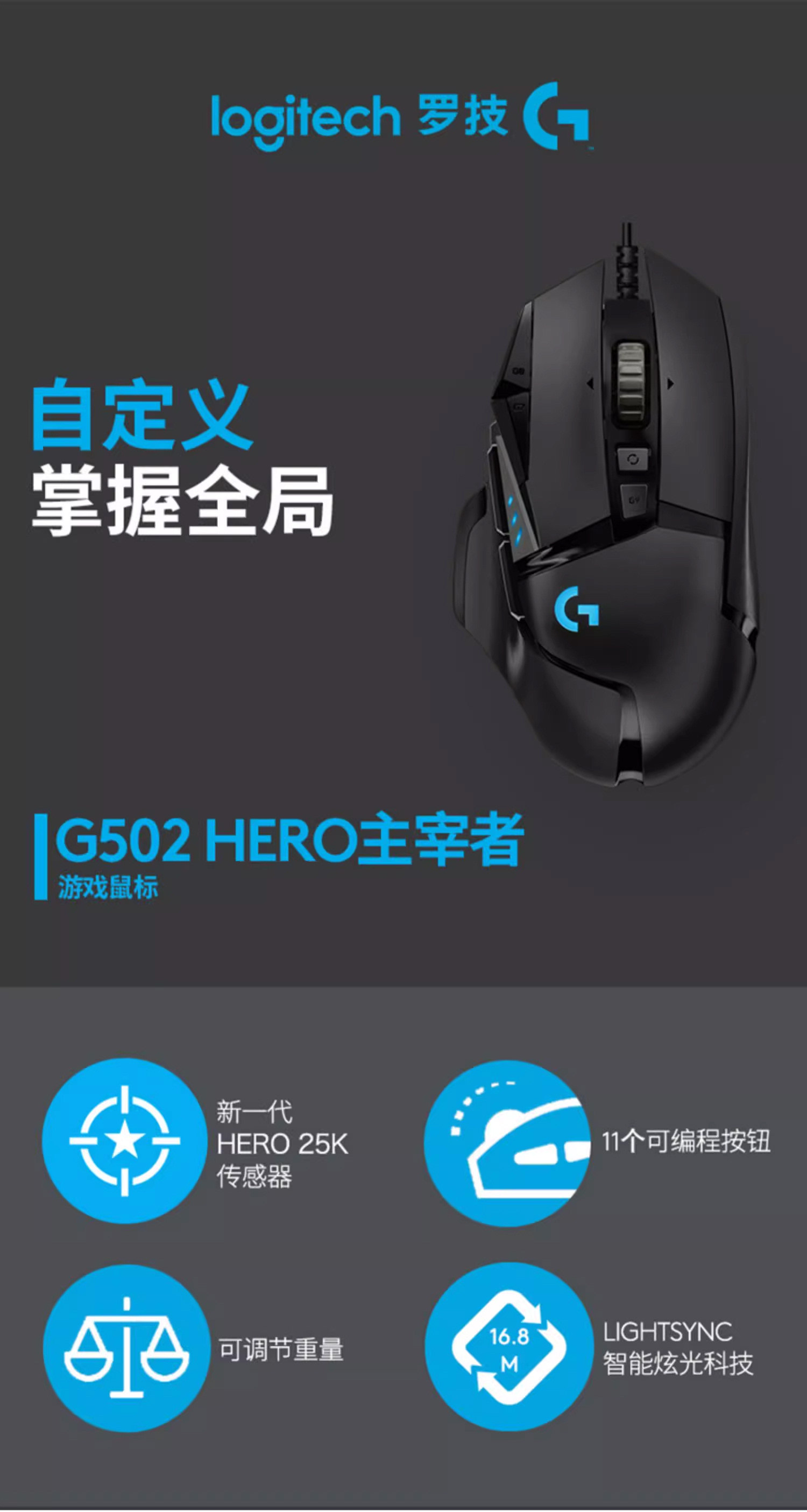 羅技G502 HERO主宰者25600dpi 有線遊戯電競滑鼠宏編程可配重 LOL