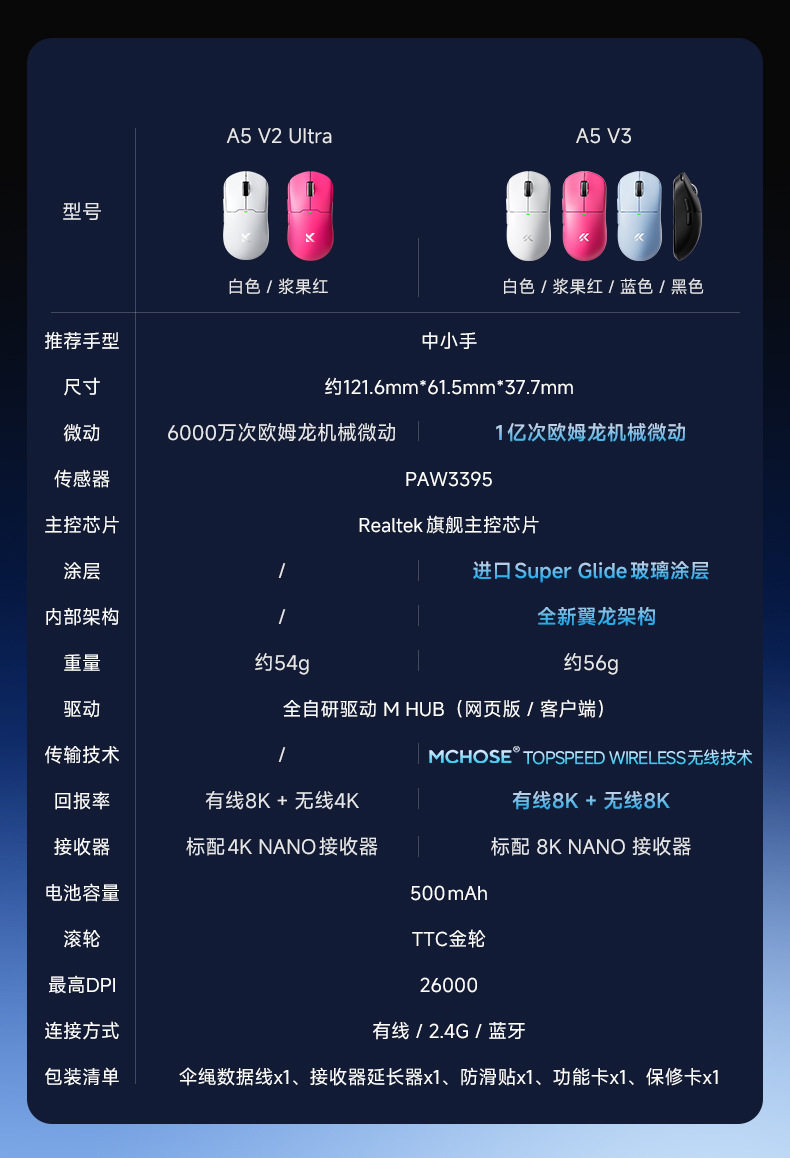 邁從MCHOSE A5V3無線遊戯滑鼠三模電競長續航PAW3395輕量化滑鼠