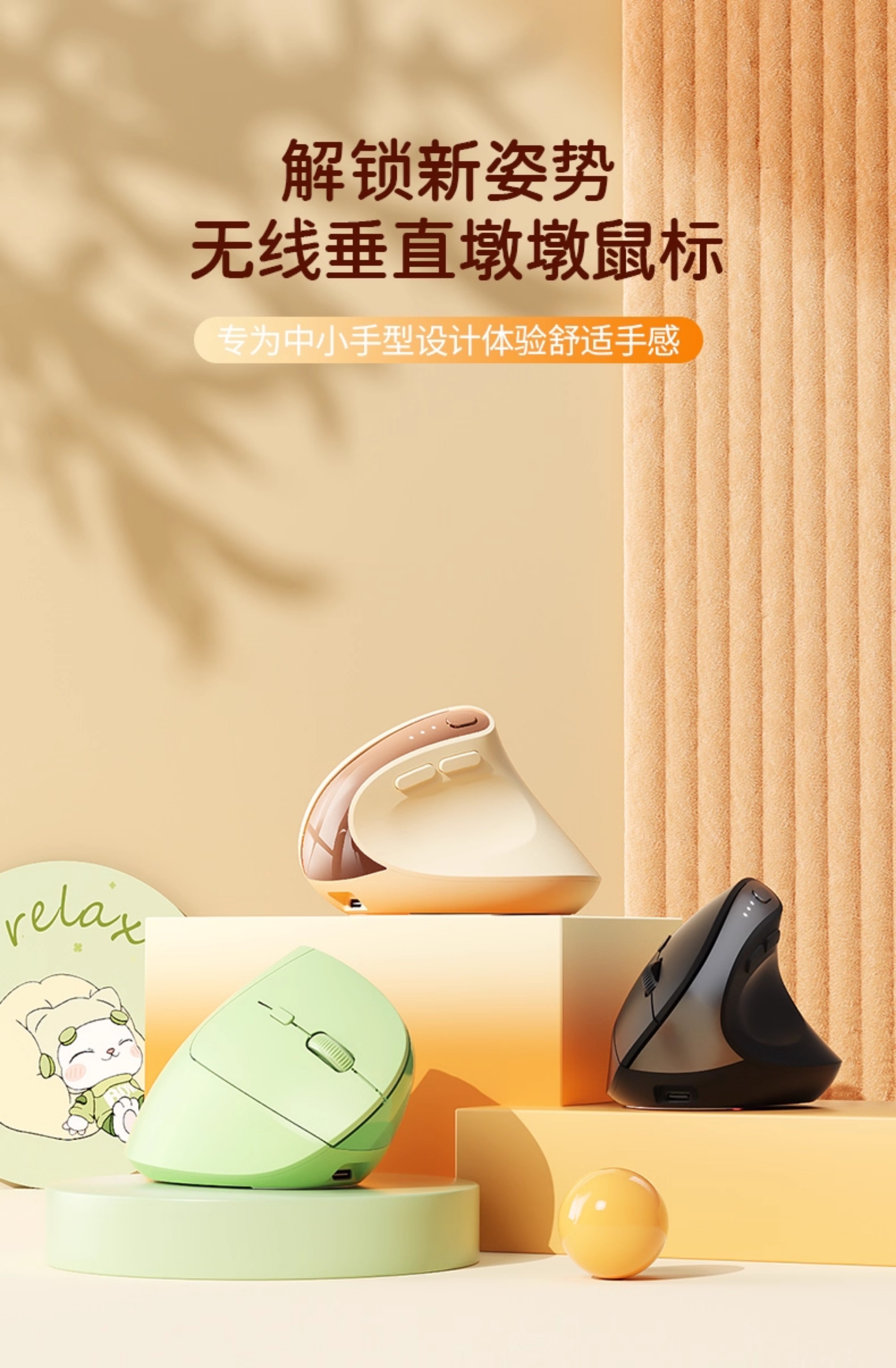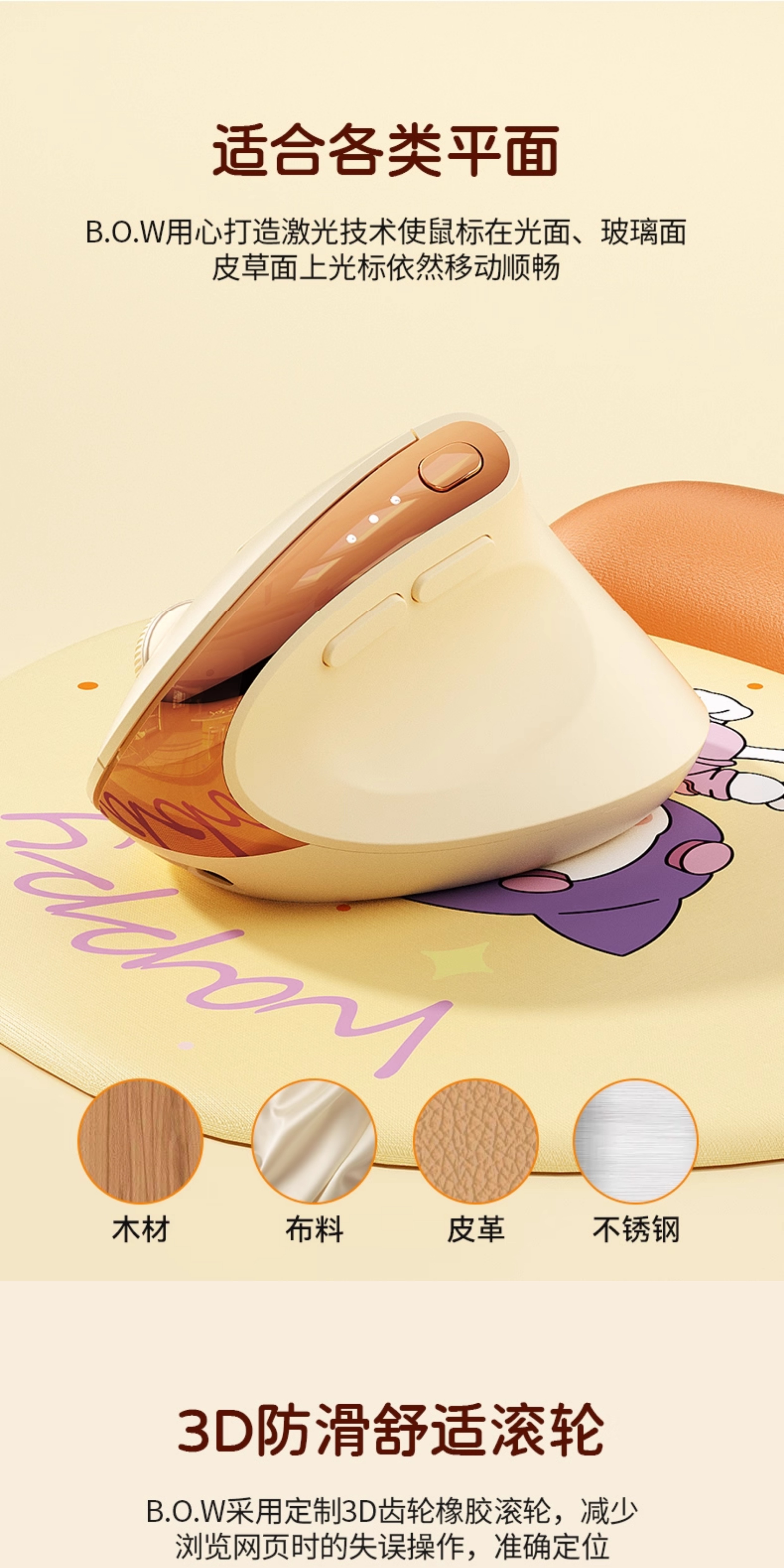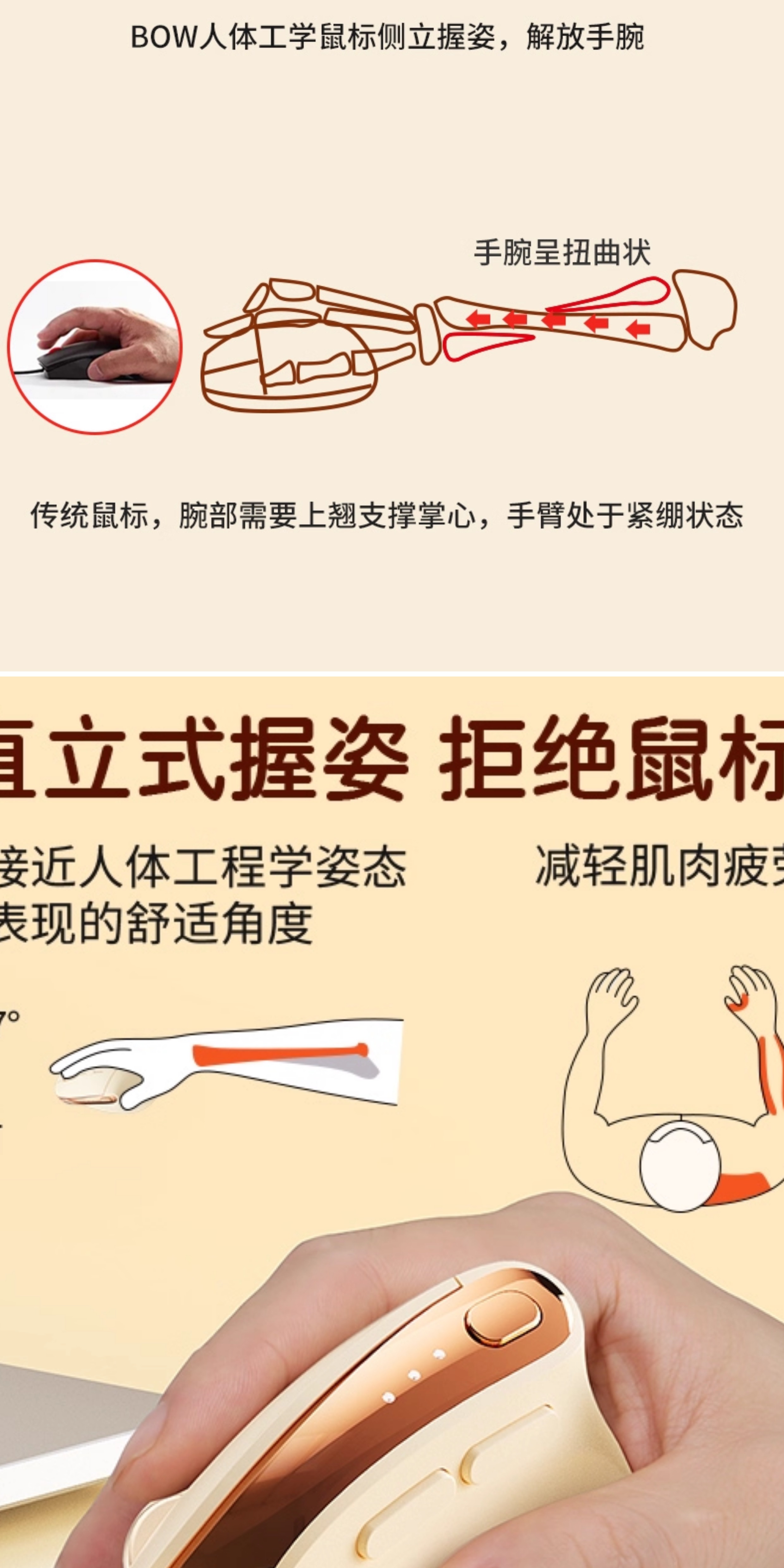 BOW 人體工學無線靜音滑鼠立式可充電垂直護腕男女辦公筆記型電腦