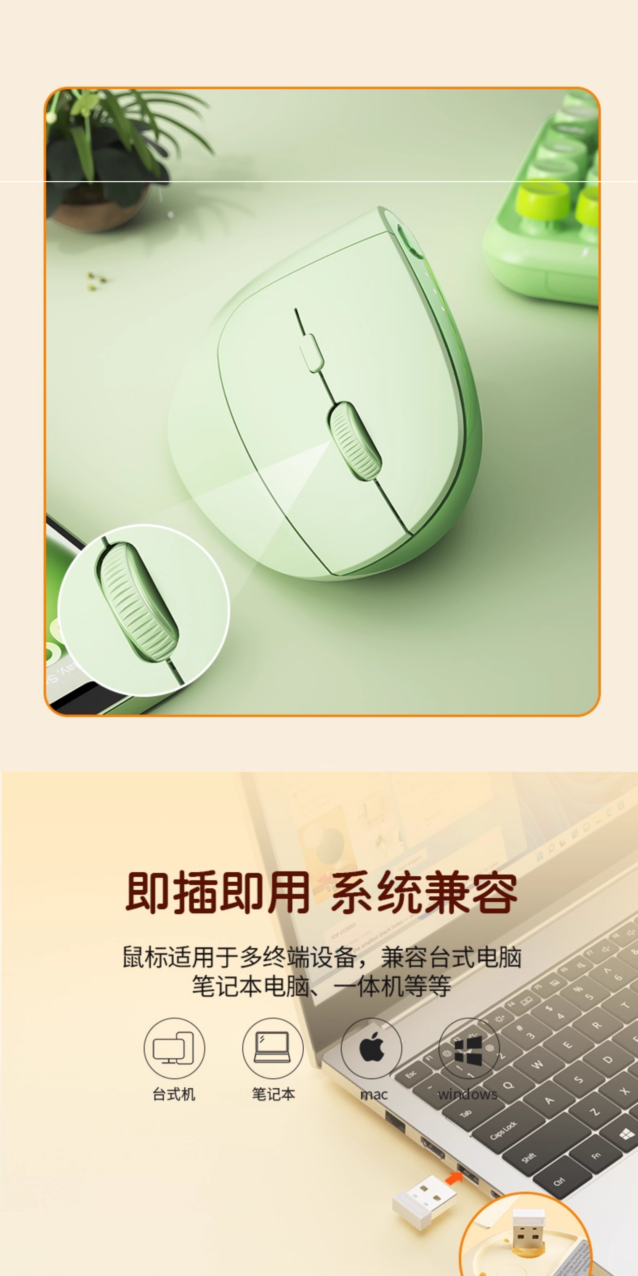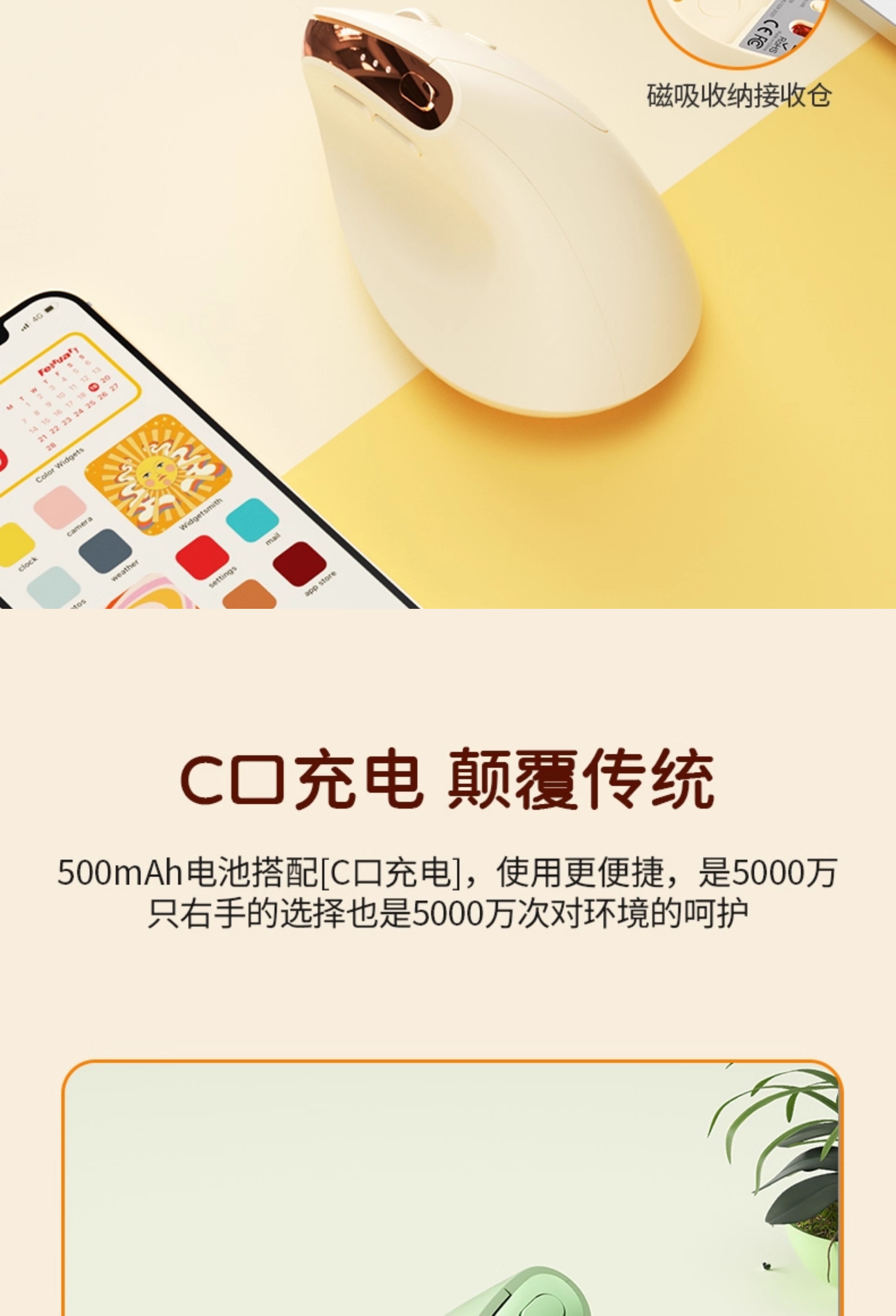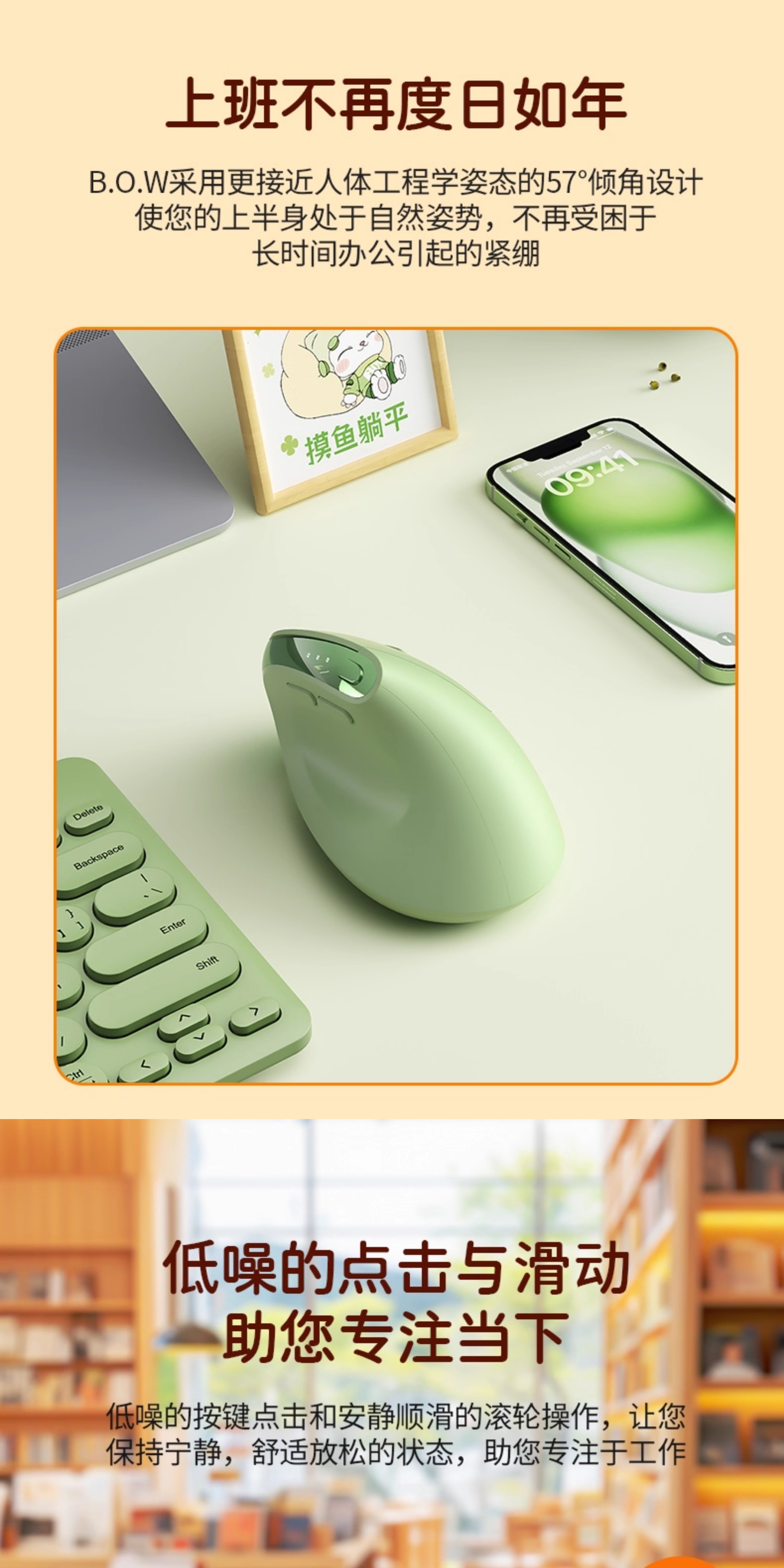 BOW 人體工學無線靜音滑鼠立式可充電垂直護腕男女辦公筆記型電腦