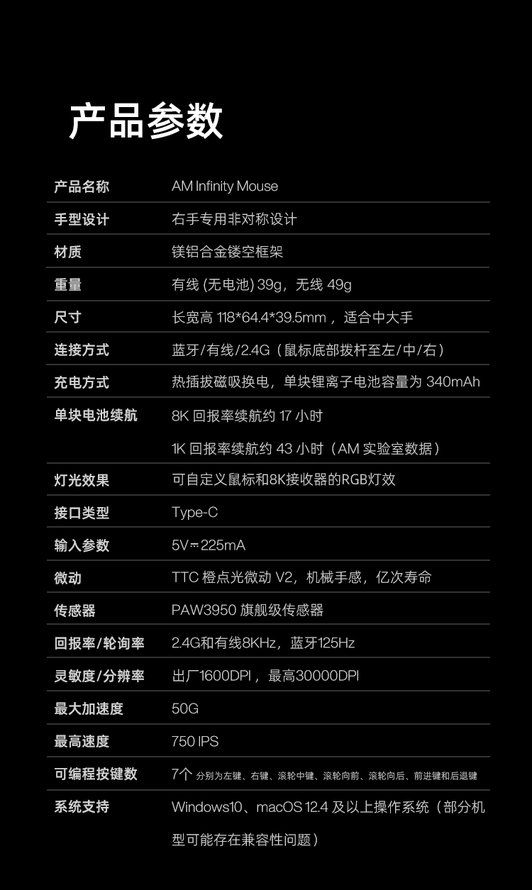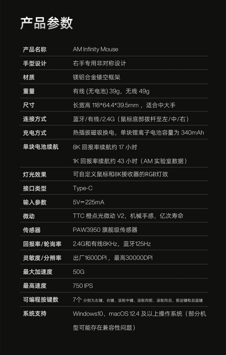 | 工作方式 | 無線藍牙雙模 |