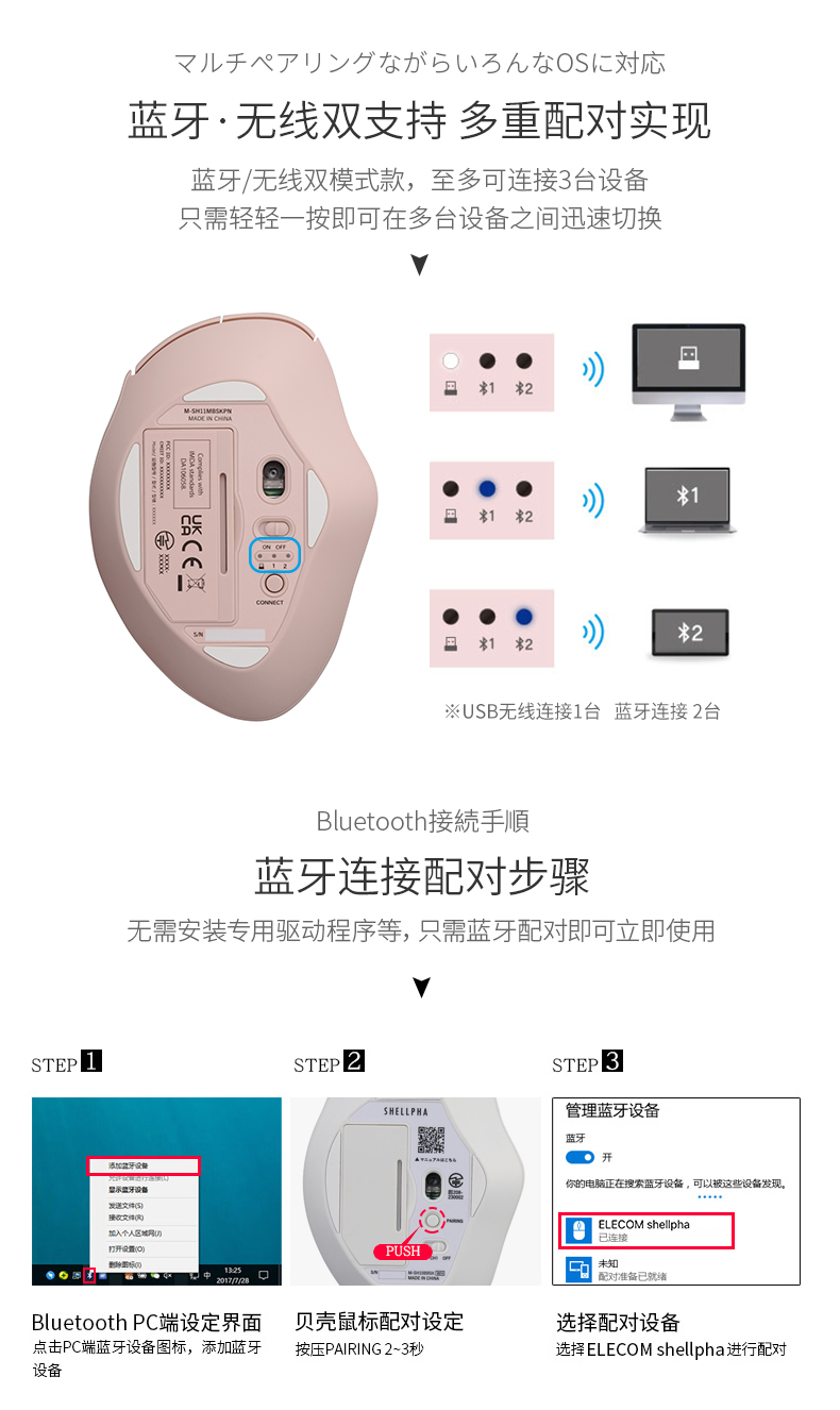 ELECOM貝殼滑鼠無線藍牙滑鼠雙模靜音滑鼠筆記型電腦辦公握感滑鼠