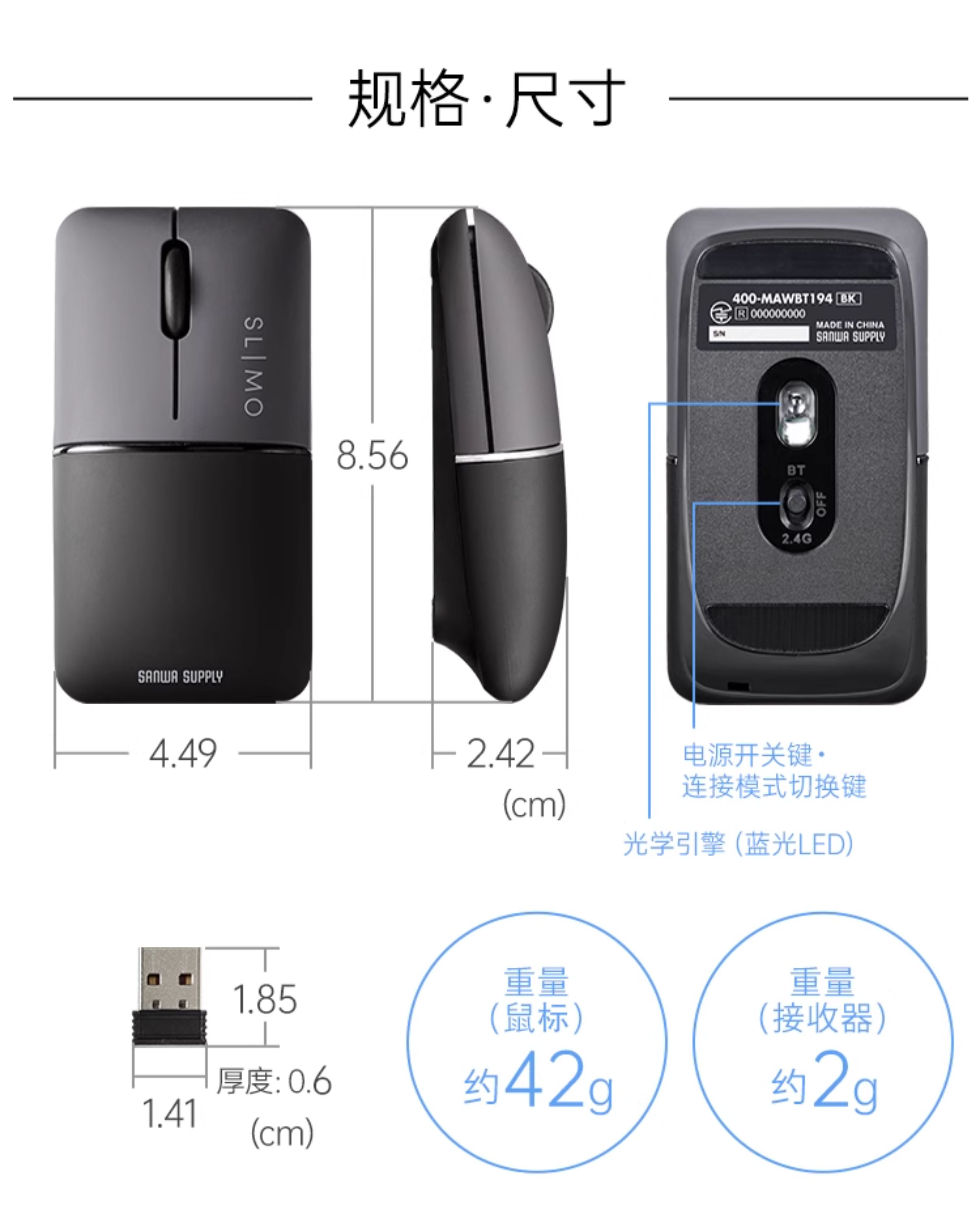 日本山業SANWA無線滑鼠藍牙雙模充電靜音小手可攜式電腦家用辦公鼠