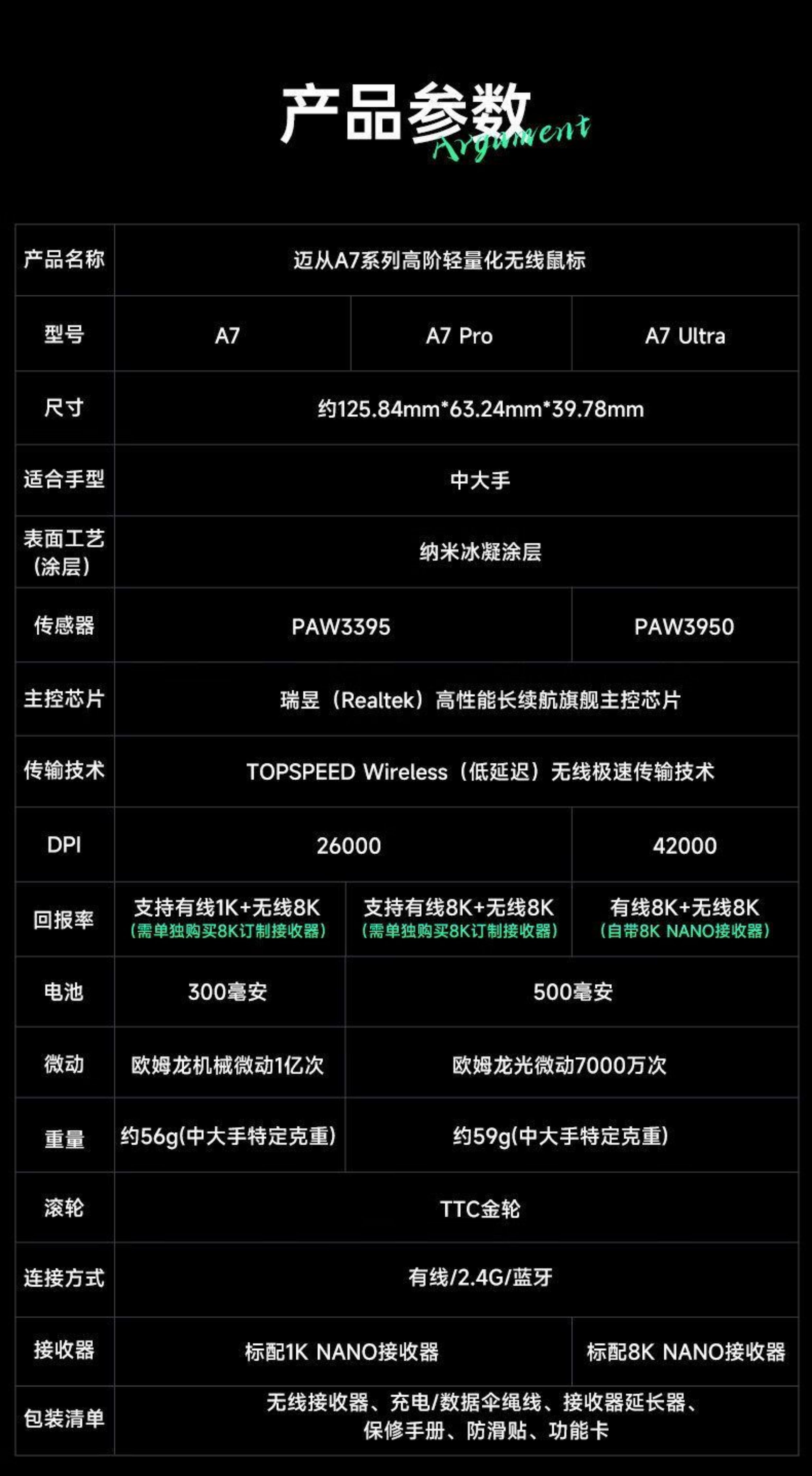 | 型號 | 邁從A7 Ultra |