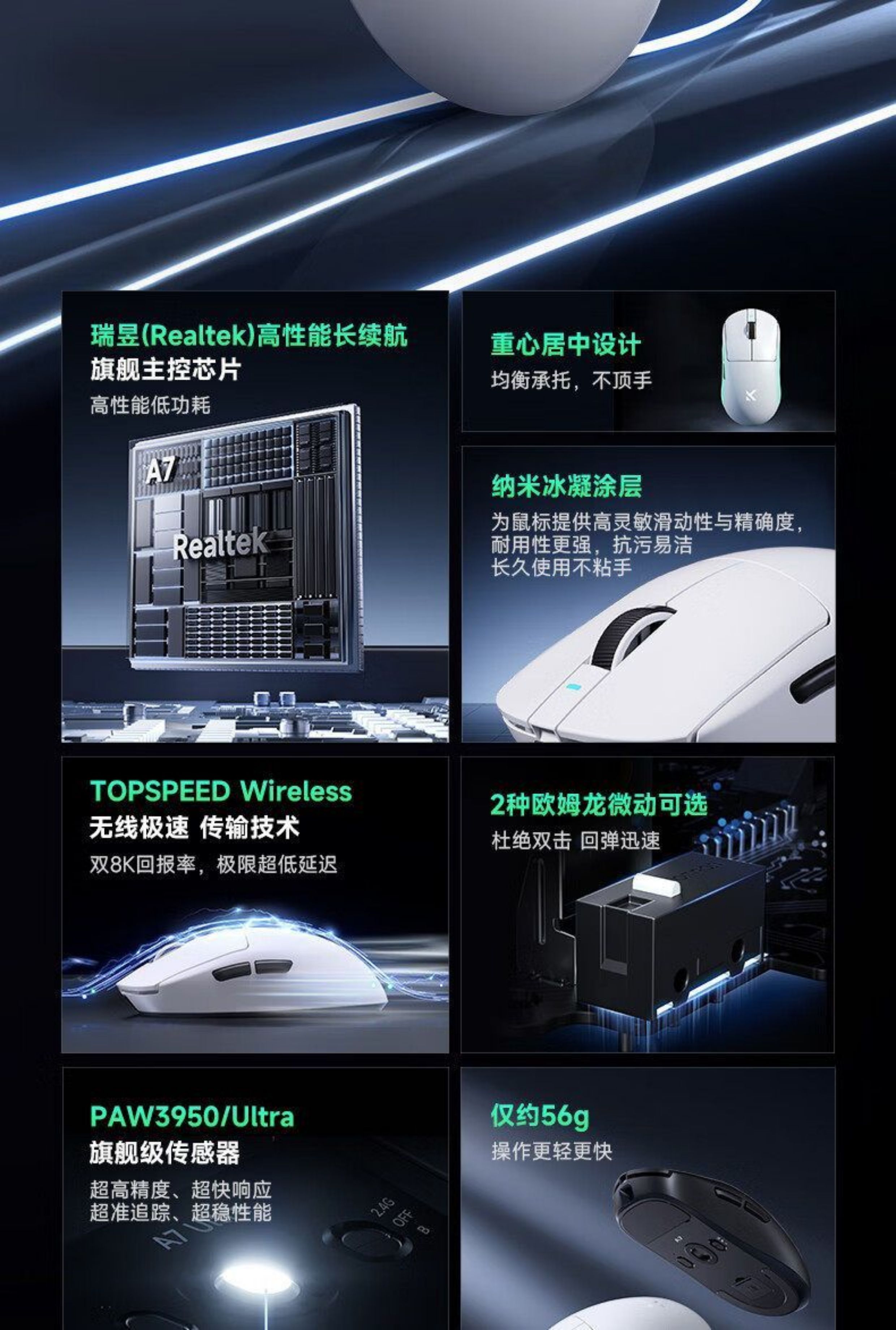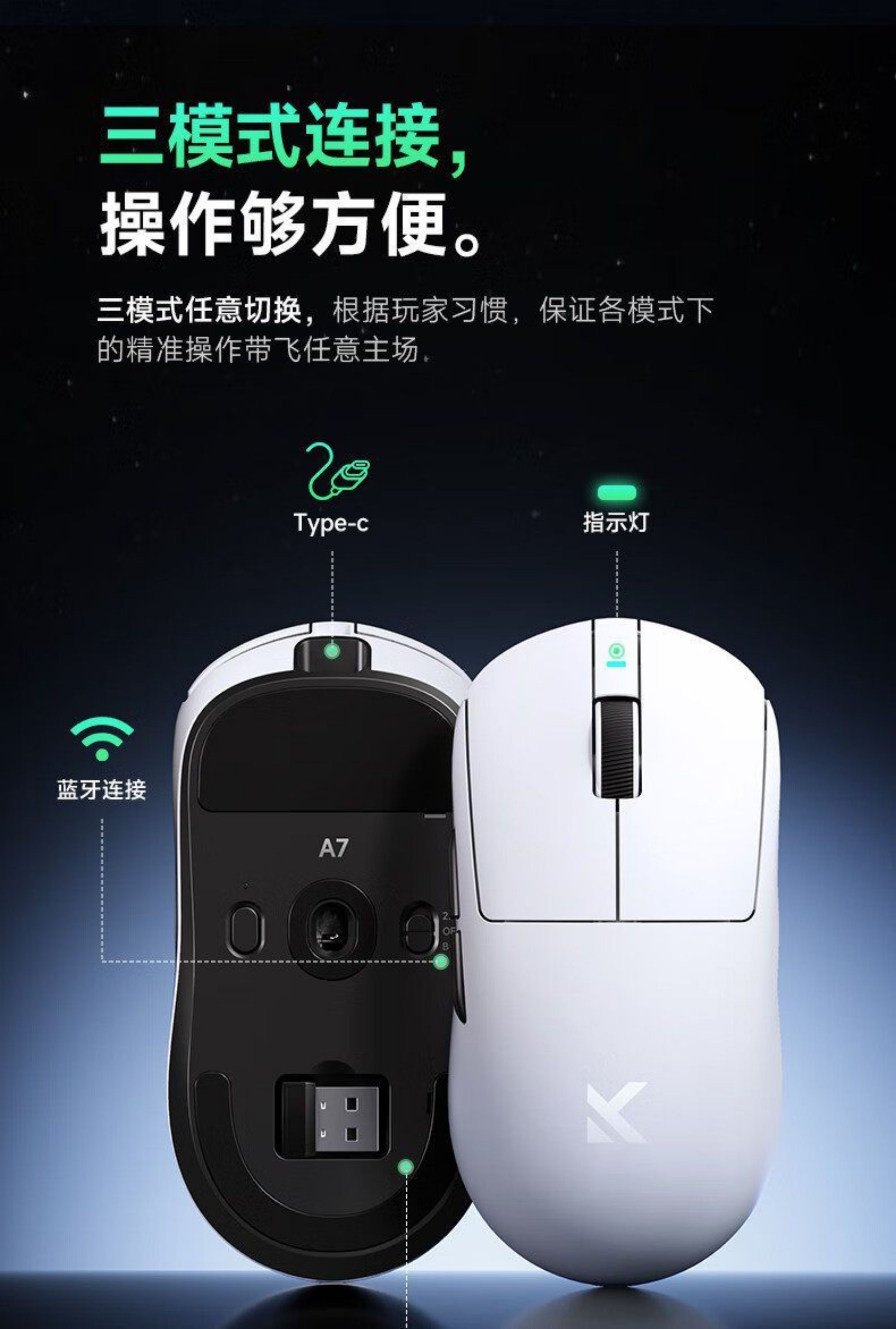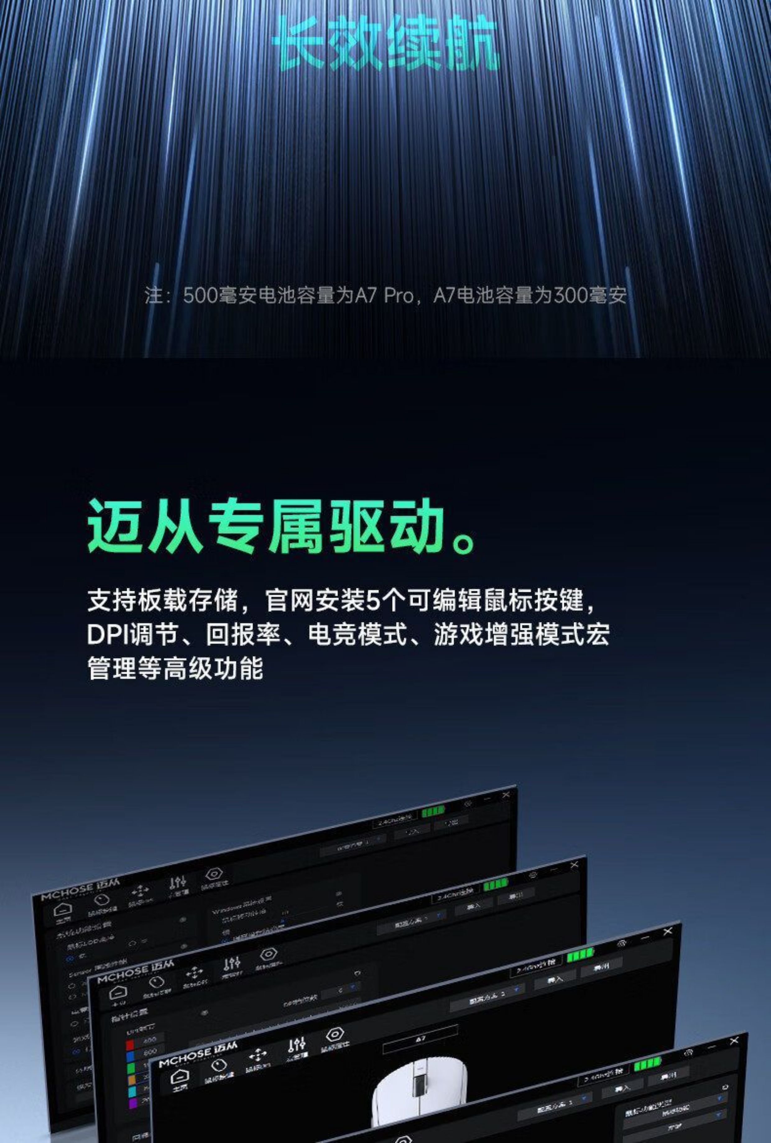 MCHOSE邁從A7 V2 Pro+滑鼠電競遊戯無線藍牙三模輕量化Ultra+3395