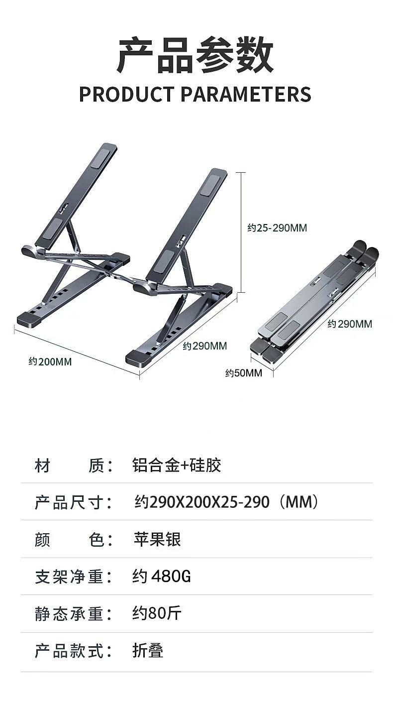 筆記型電腦支架鋁合金雙層增高懸空散熱可升降折曡可攜式桌面托架