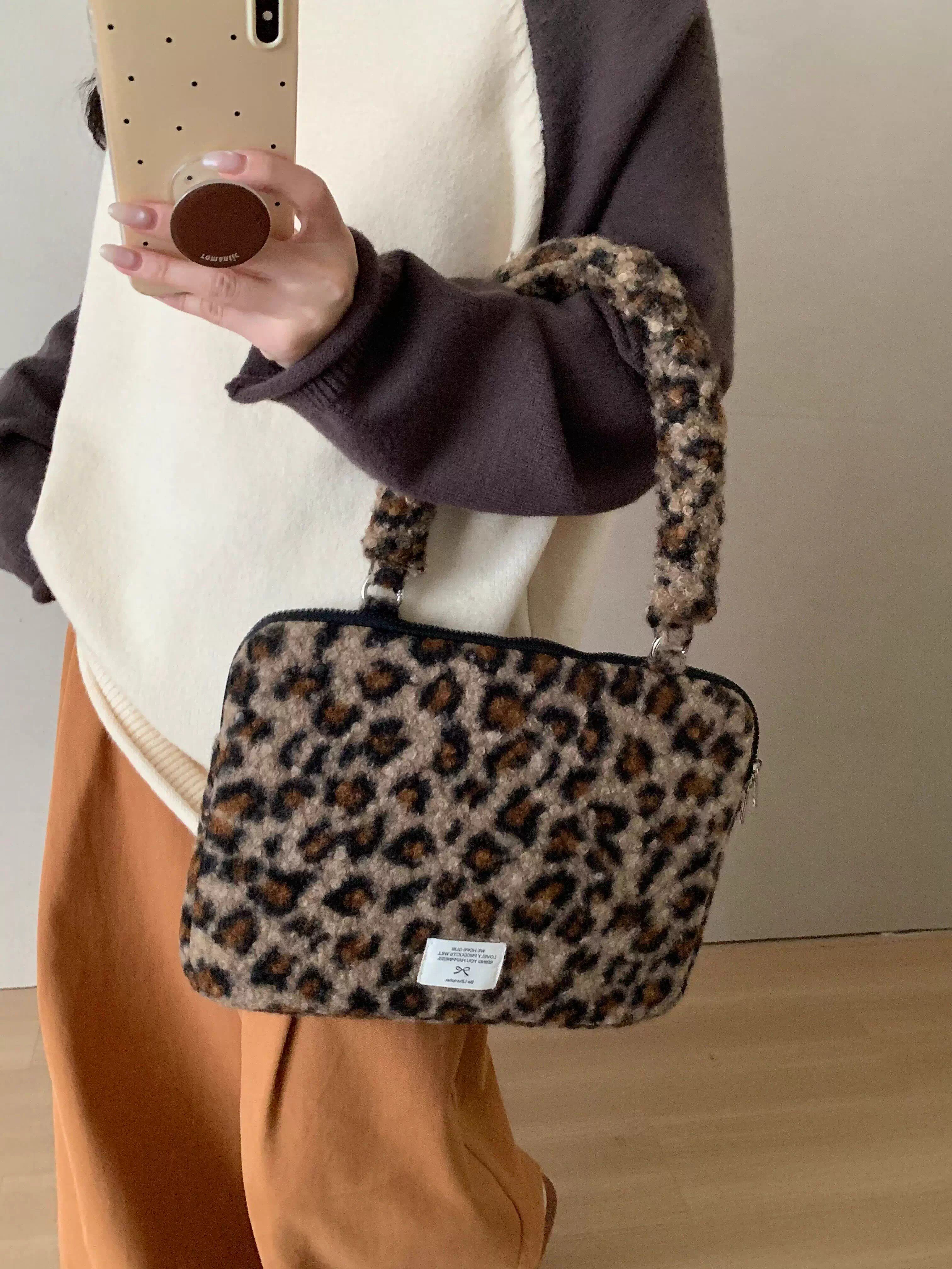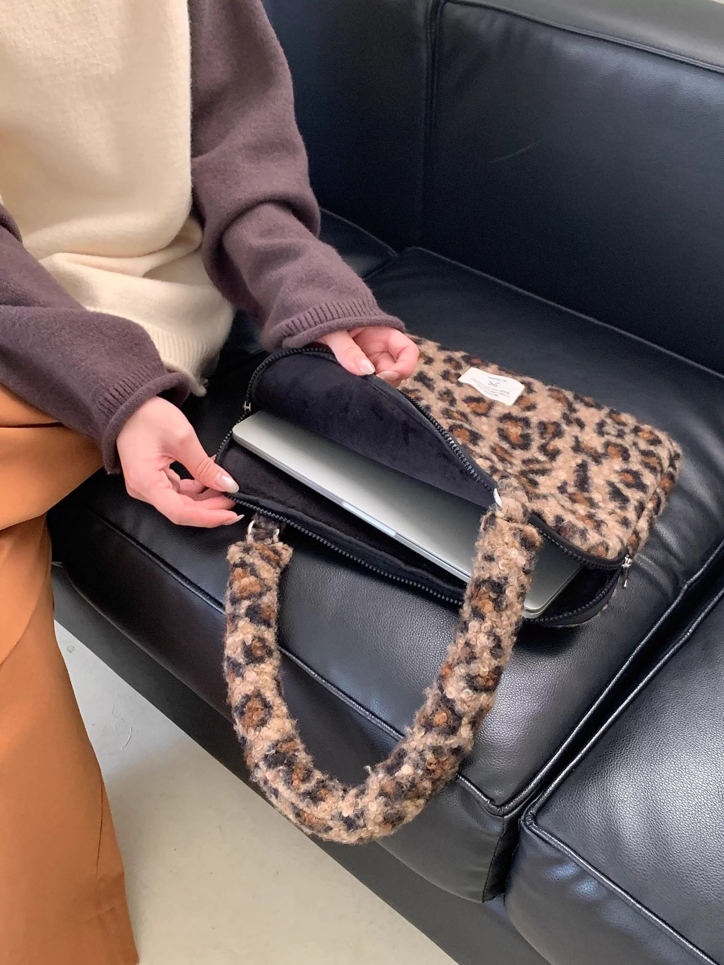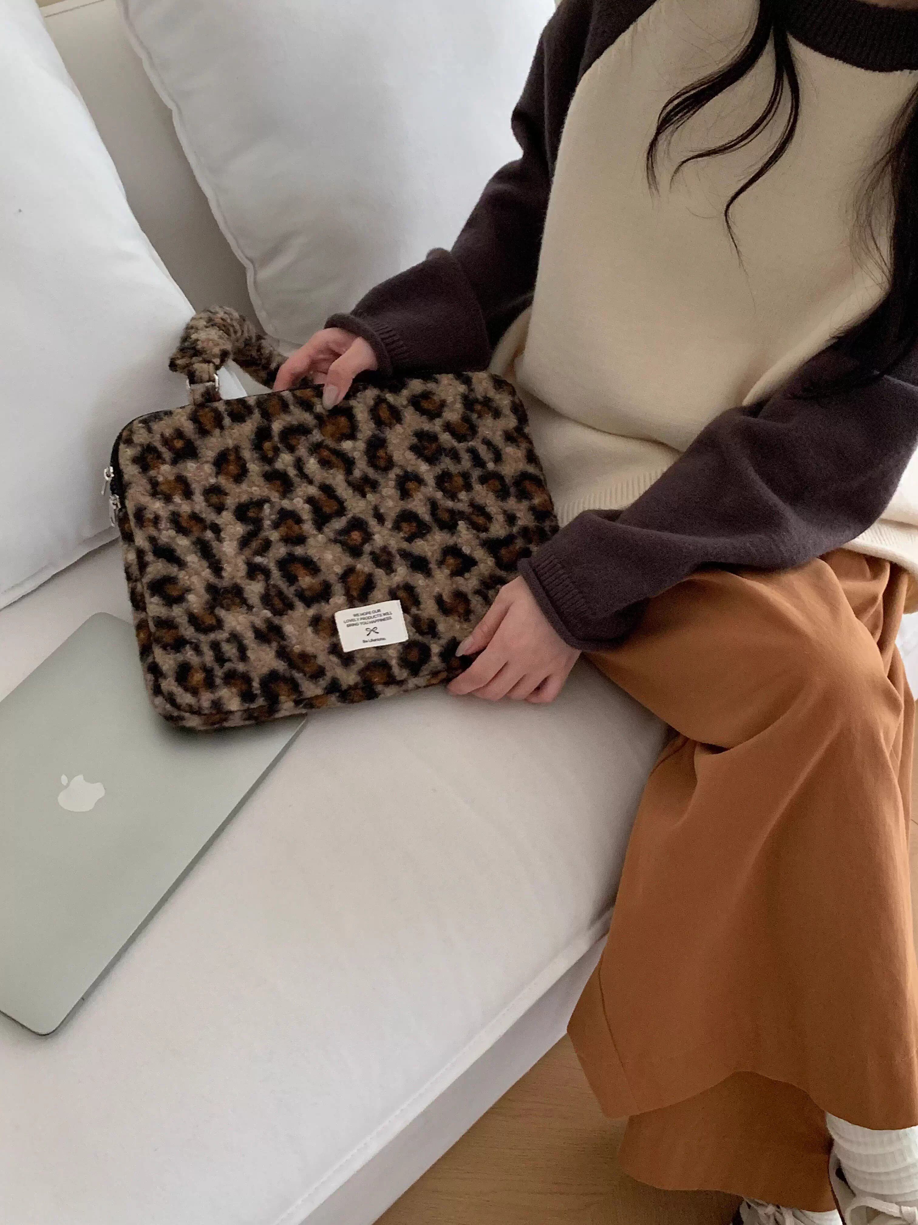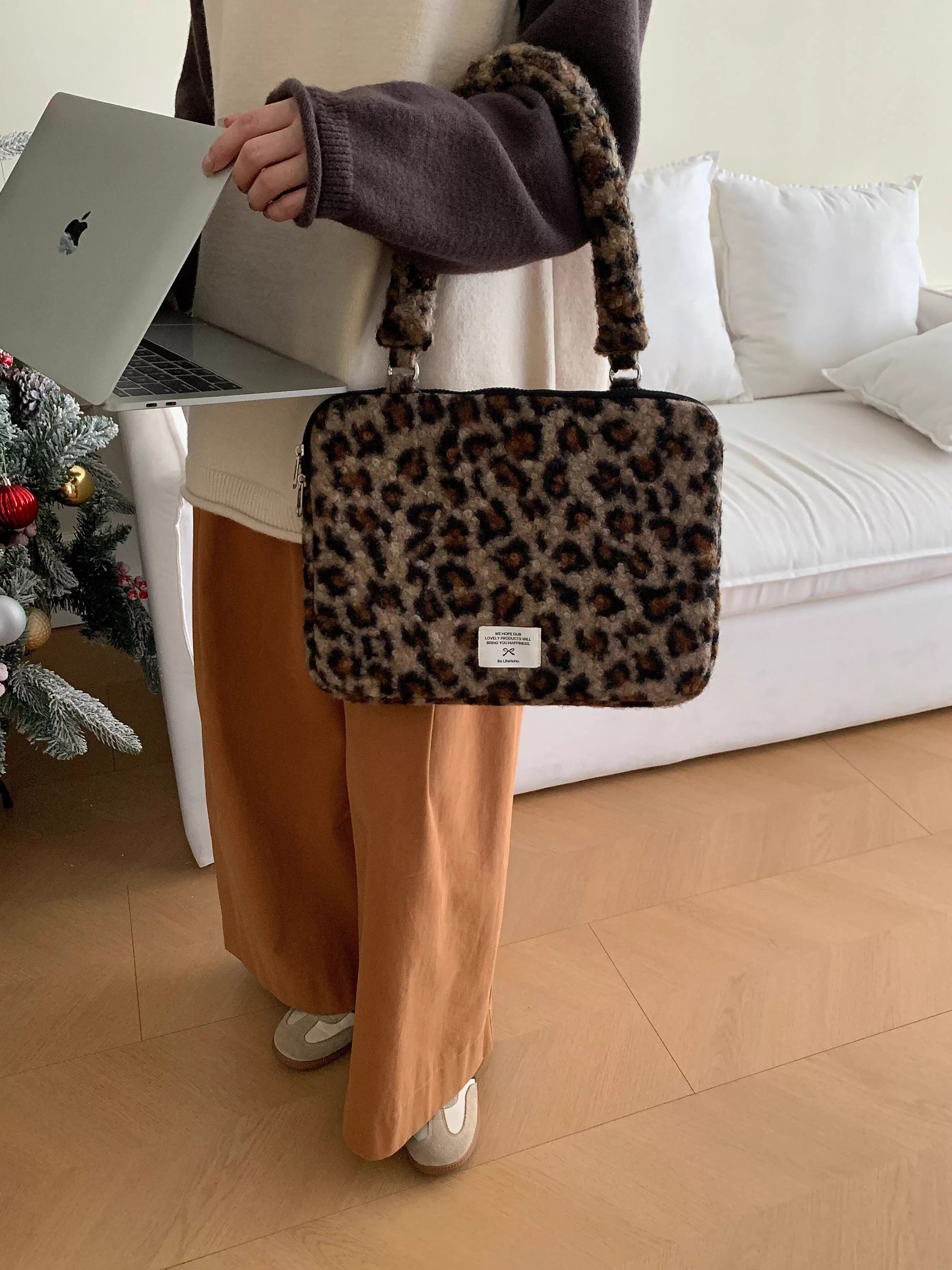 法國Maje Franch筆記型電腦包14寸2026新款女士單肩包通勤豹紋高級感適用蘋果macbookair13.3聯想華爲pro16寸