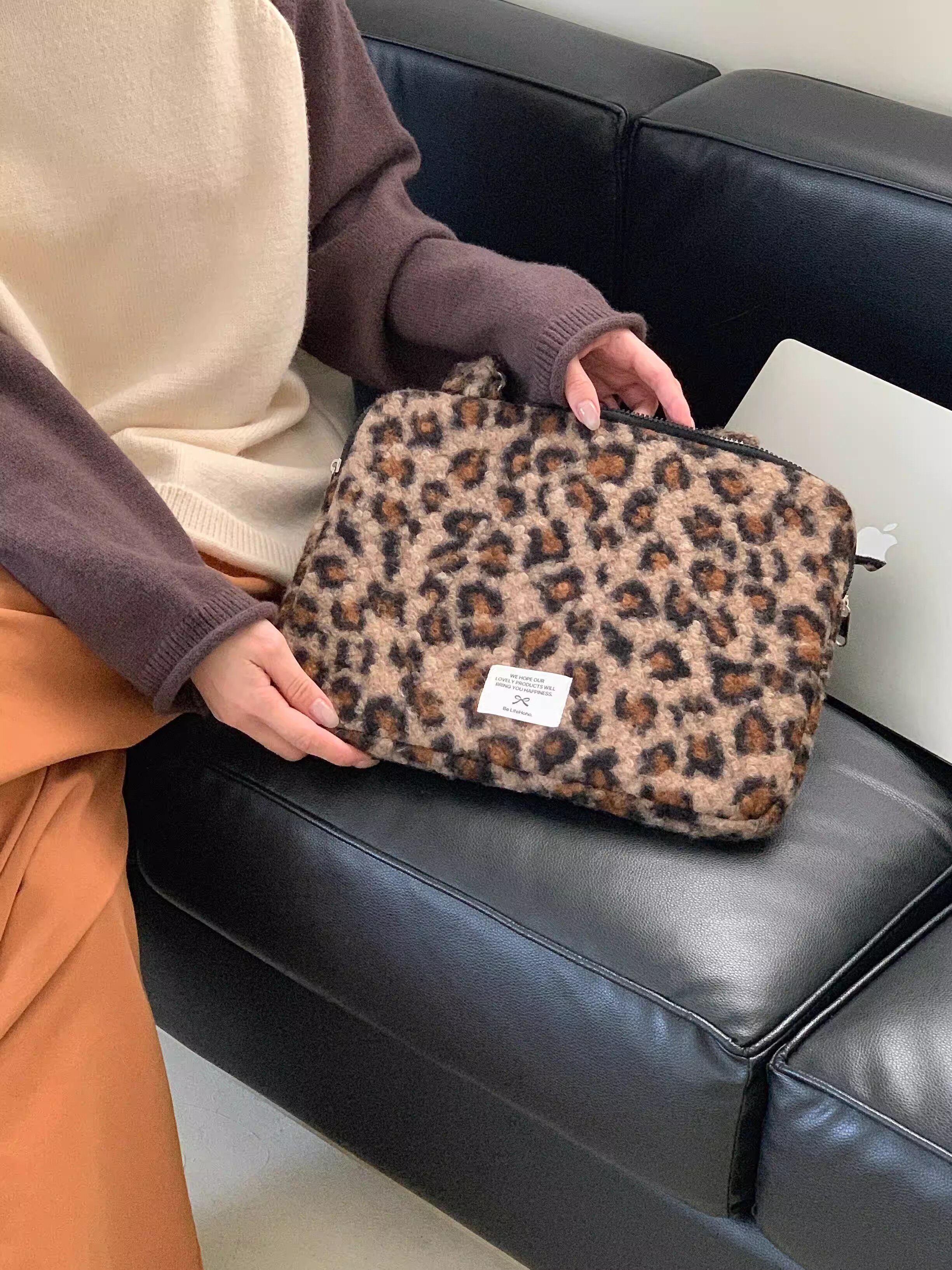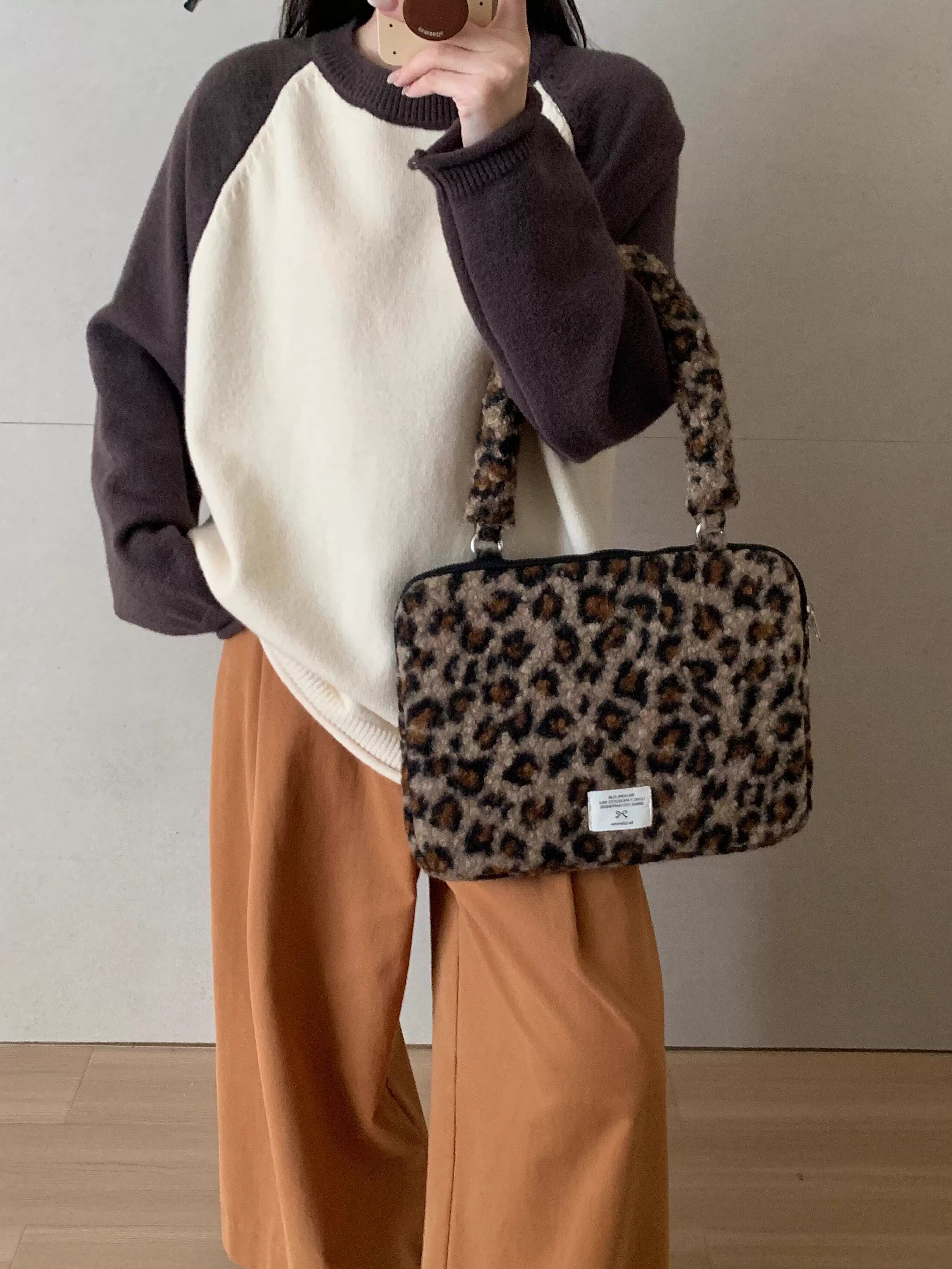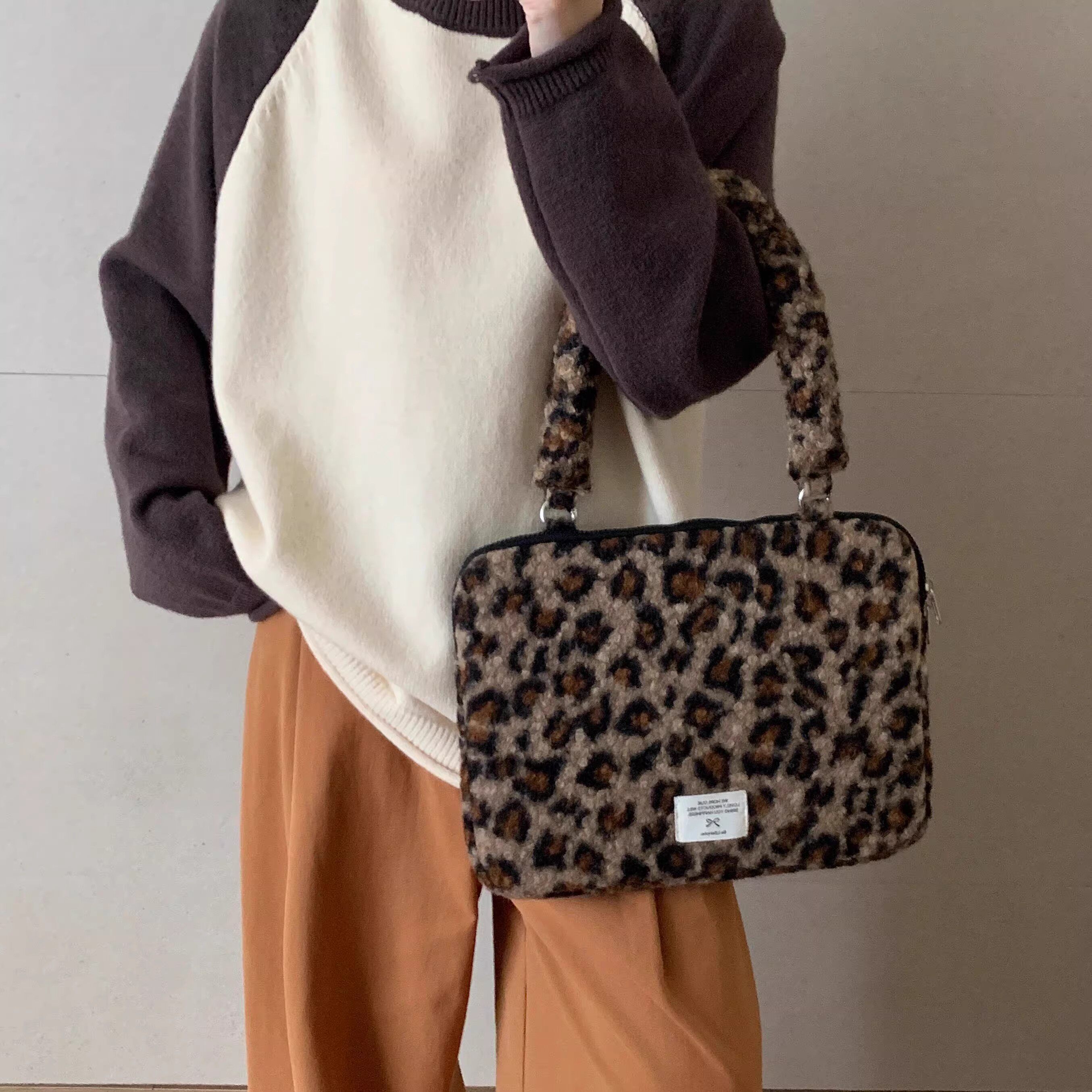 法國Maje Franch筆記型電腦包14寸2026新款女士單肩包通勤豹紋高級感適用蘋果macbookair13.3聯想華爲pro16寸