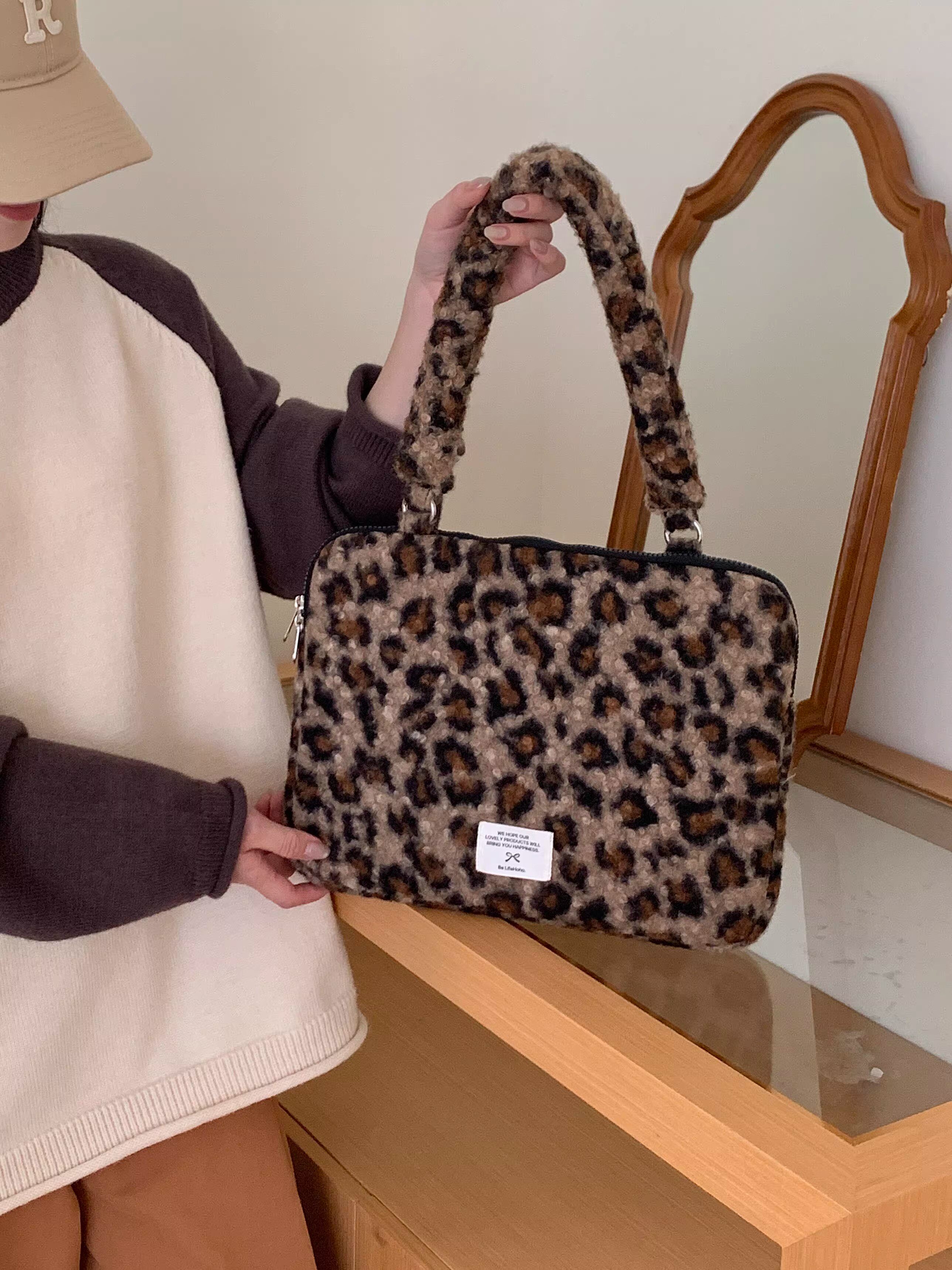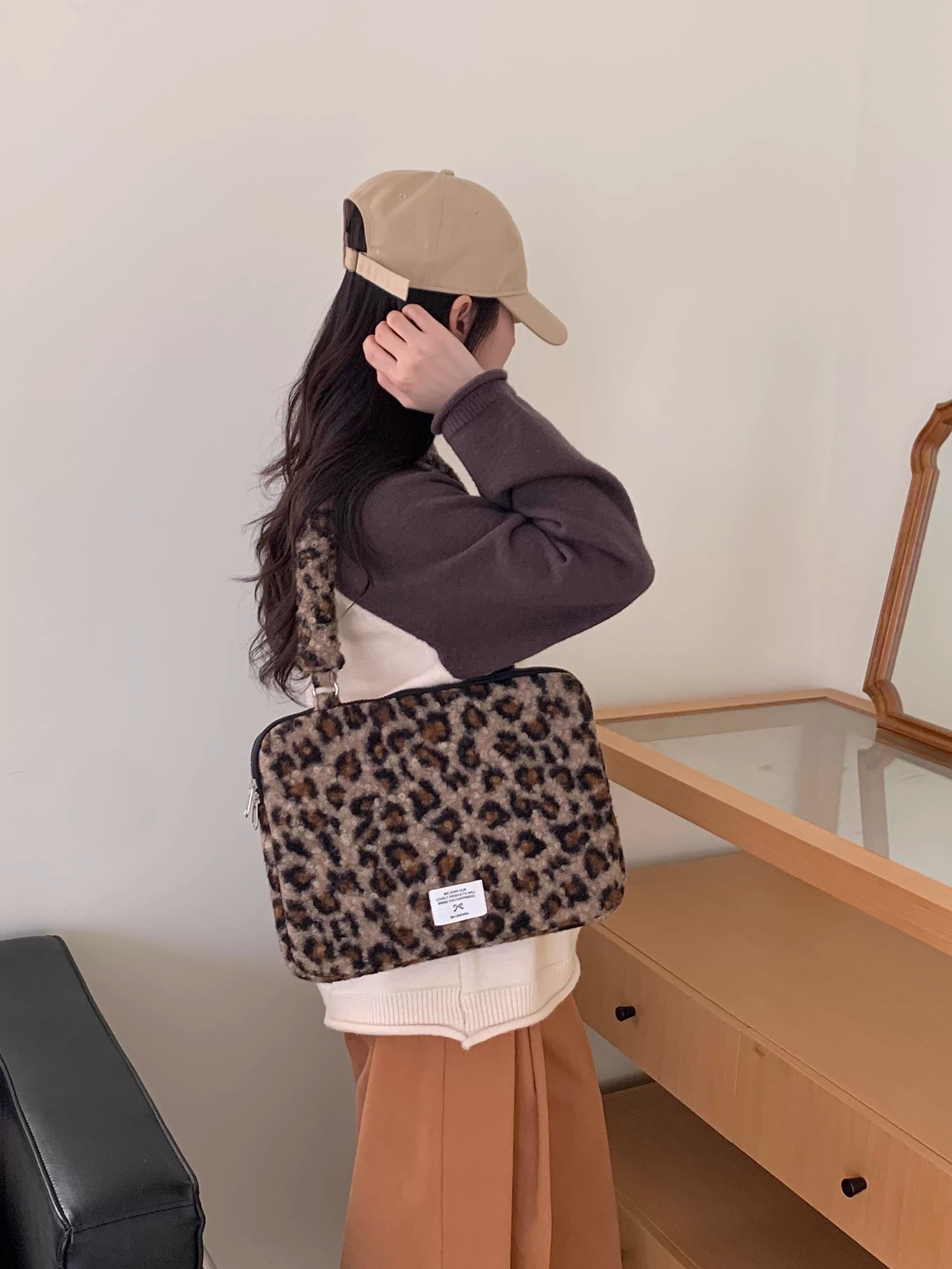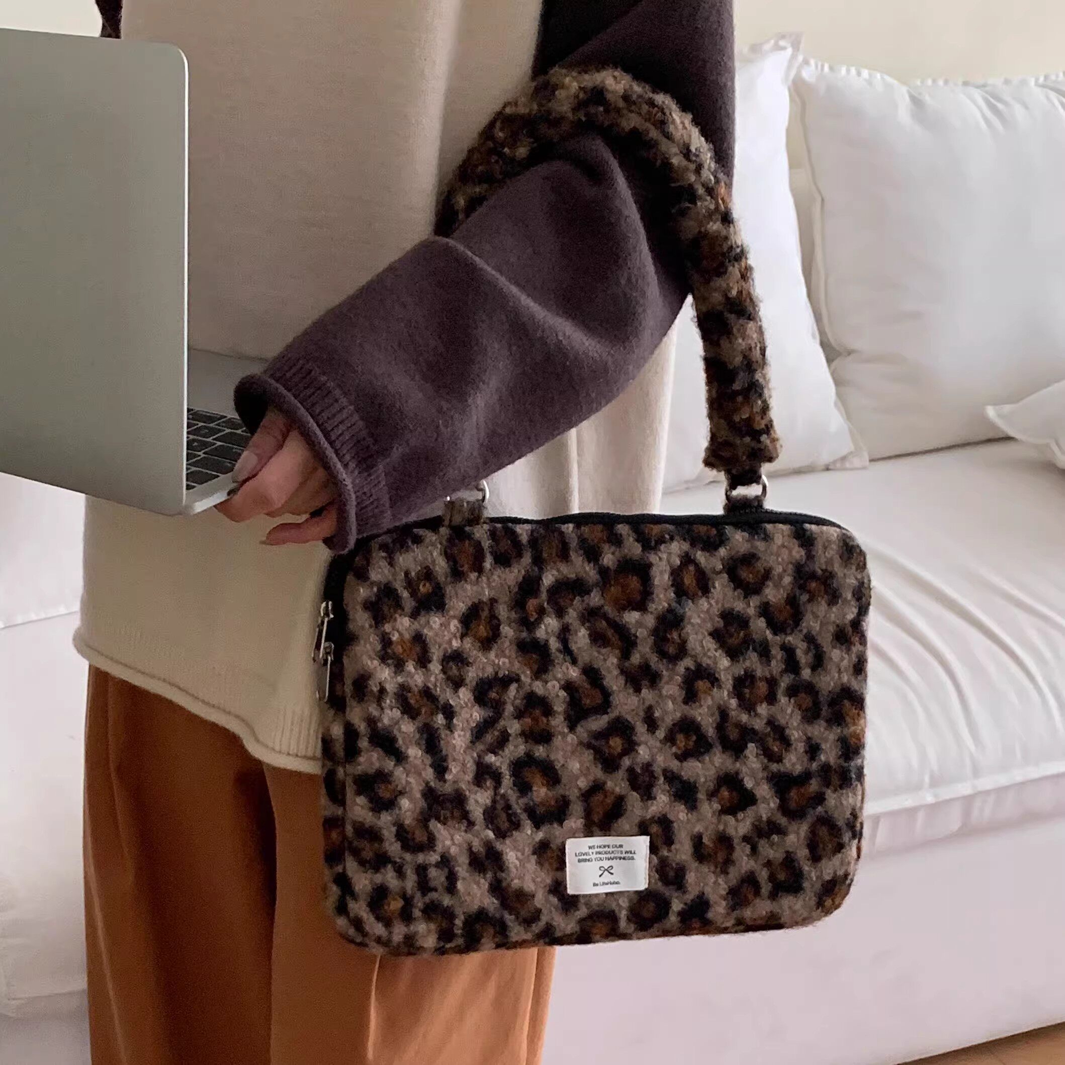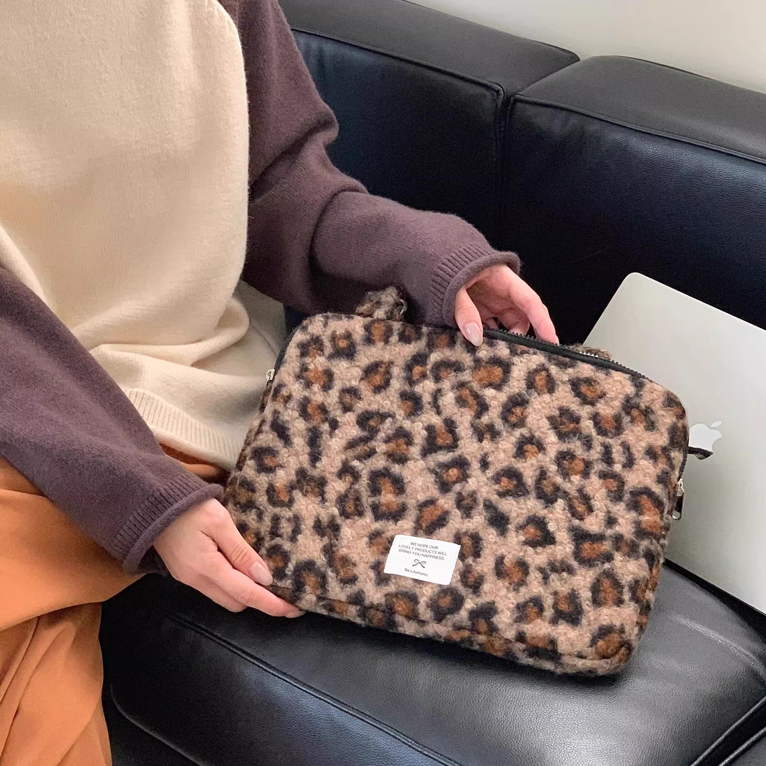 法國Maje Franch筆記型電腦包14寸2026新款女士單肩包通勤豹紋高級感適用蘋果macbookair13.3聯想華爲pro16寸