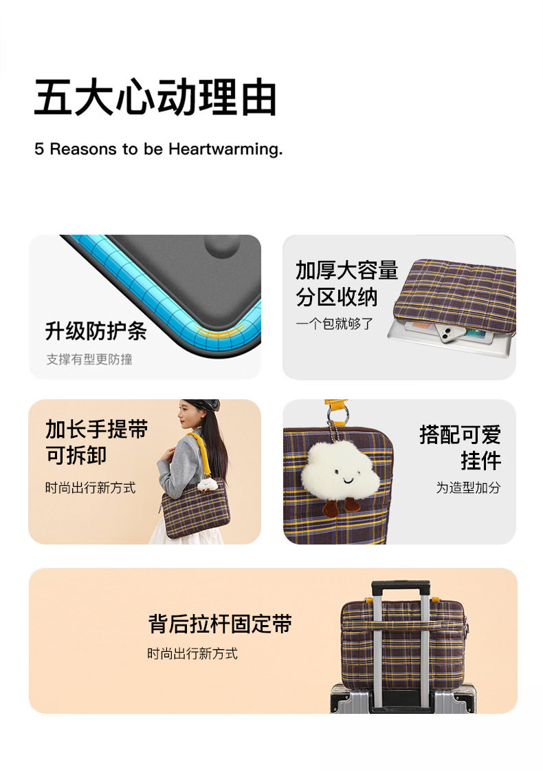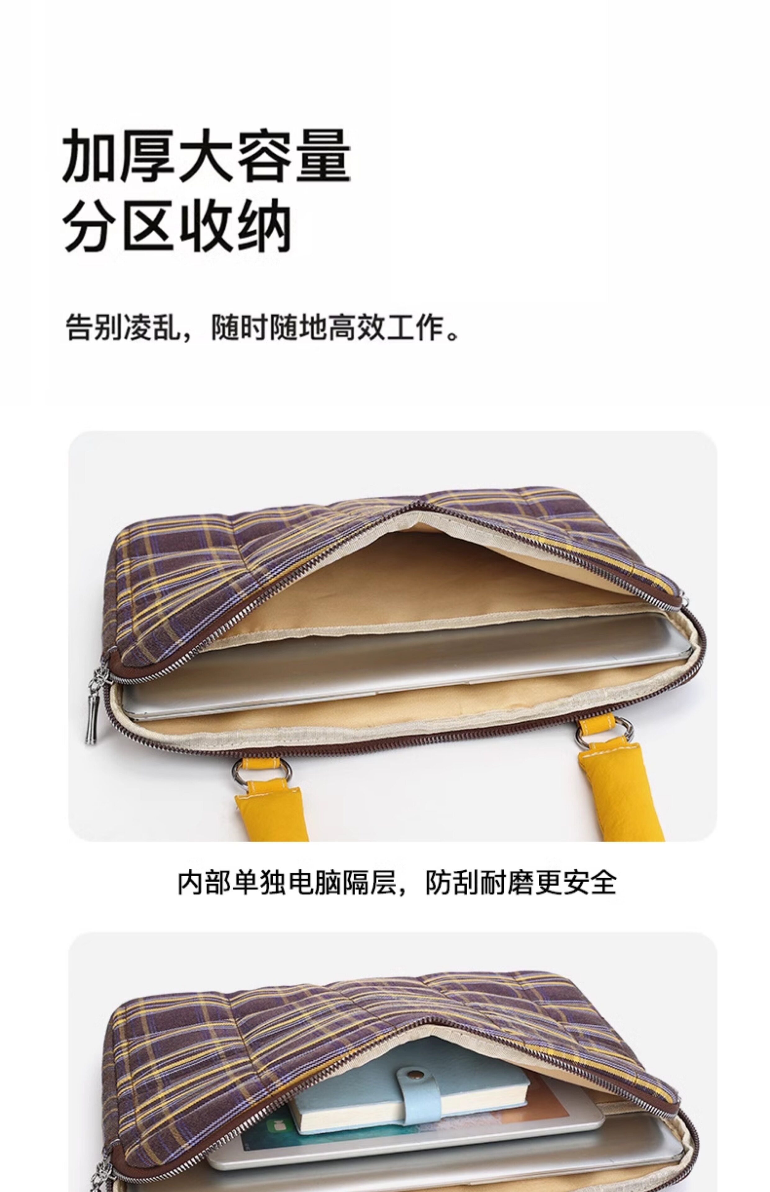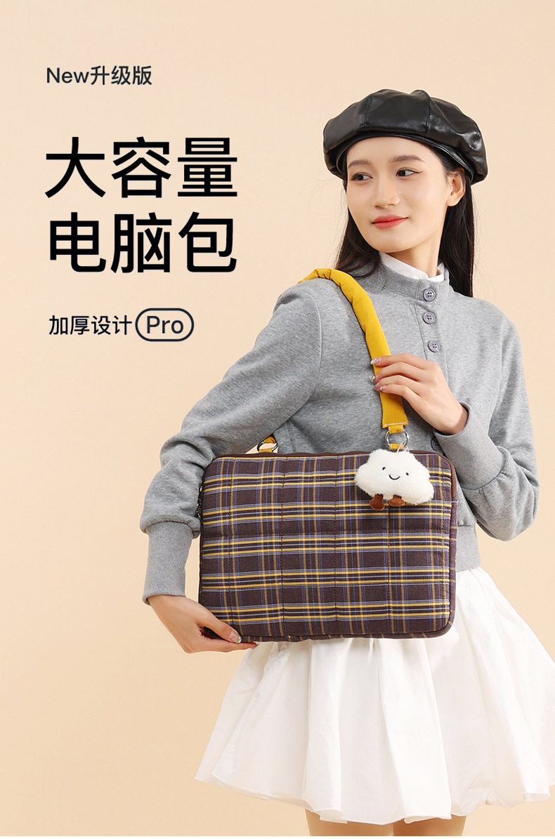 適用筆記型電腦包14寸手提單肩女高顔值大容量通勤2025新款蘋果筆電macbookair/pro13.3聯想華爲內膽包