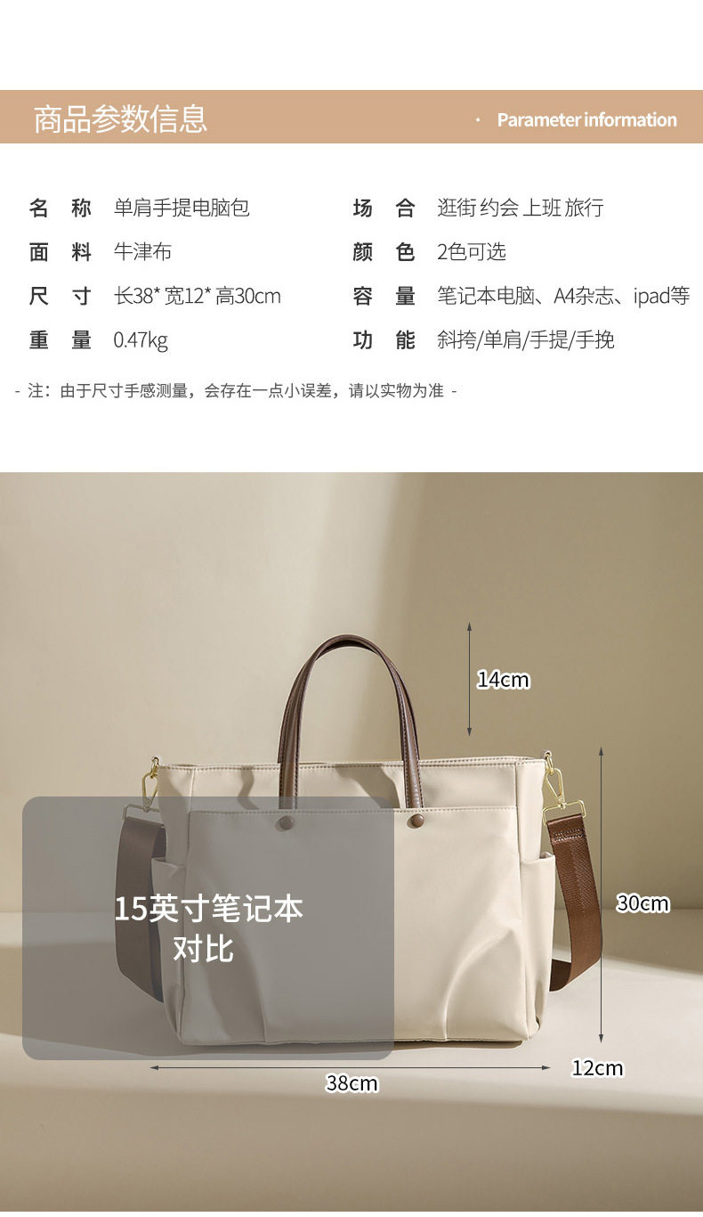 日本進口MUJIE筆記型電腦包女士單肩手提大容量公文包單肩斜背托特15.6寸內膽包