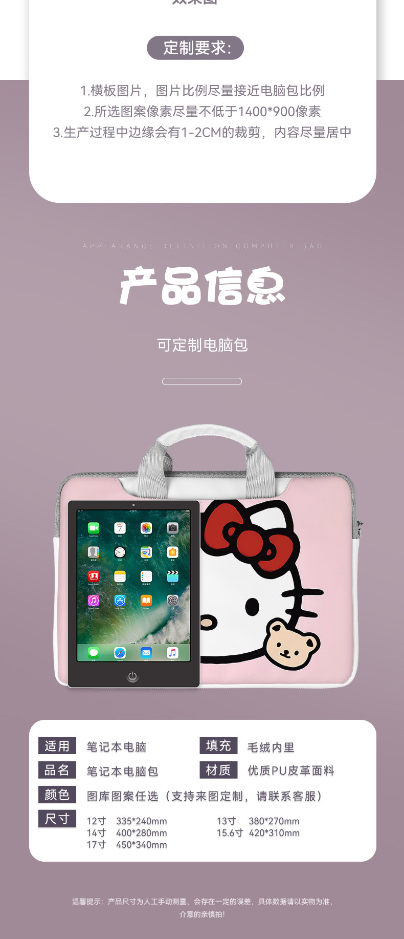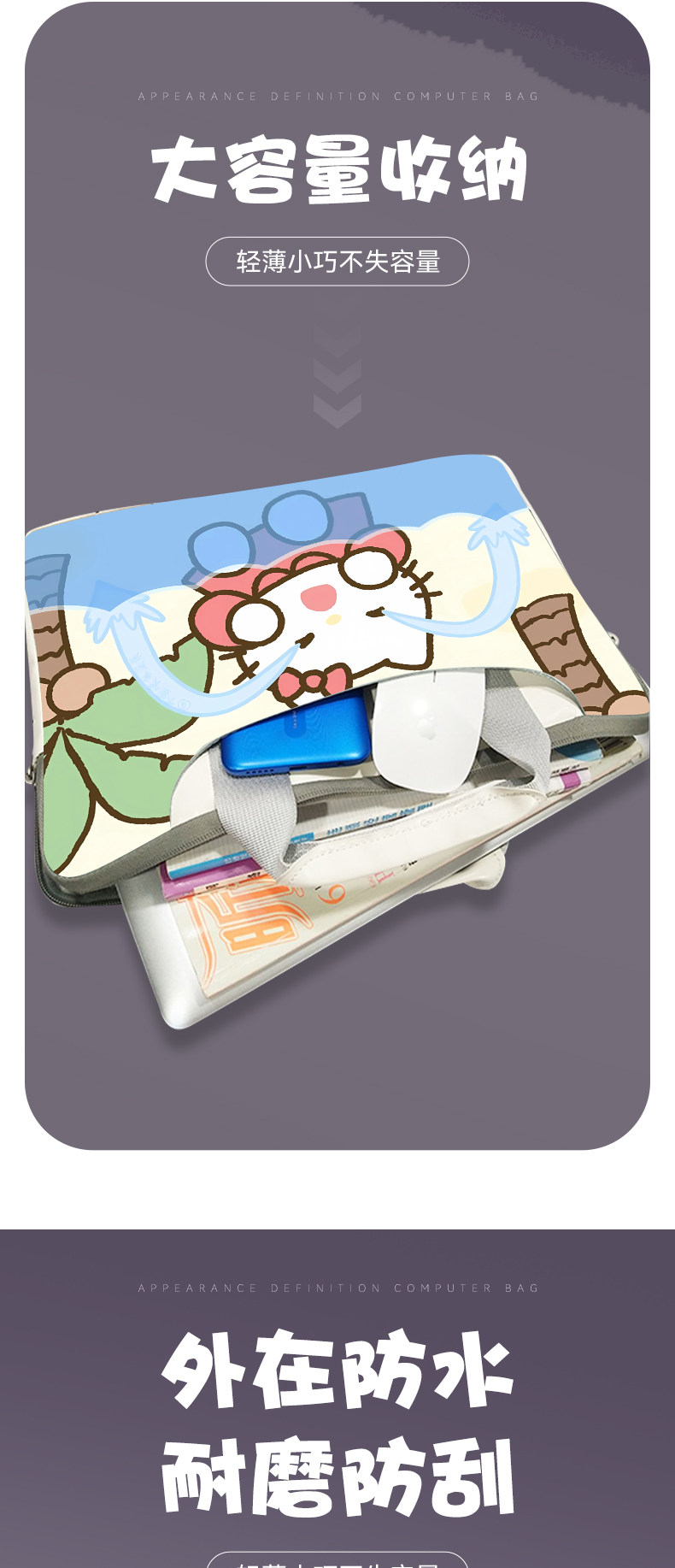 Hello Kitty凱蒂貓筆電手提電腦包適用於蘋果華爲小米1237寸時尚15.6air13小清新14華爲華碩pro卡通ins原創
