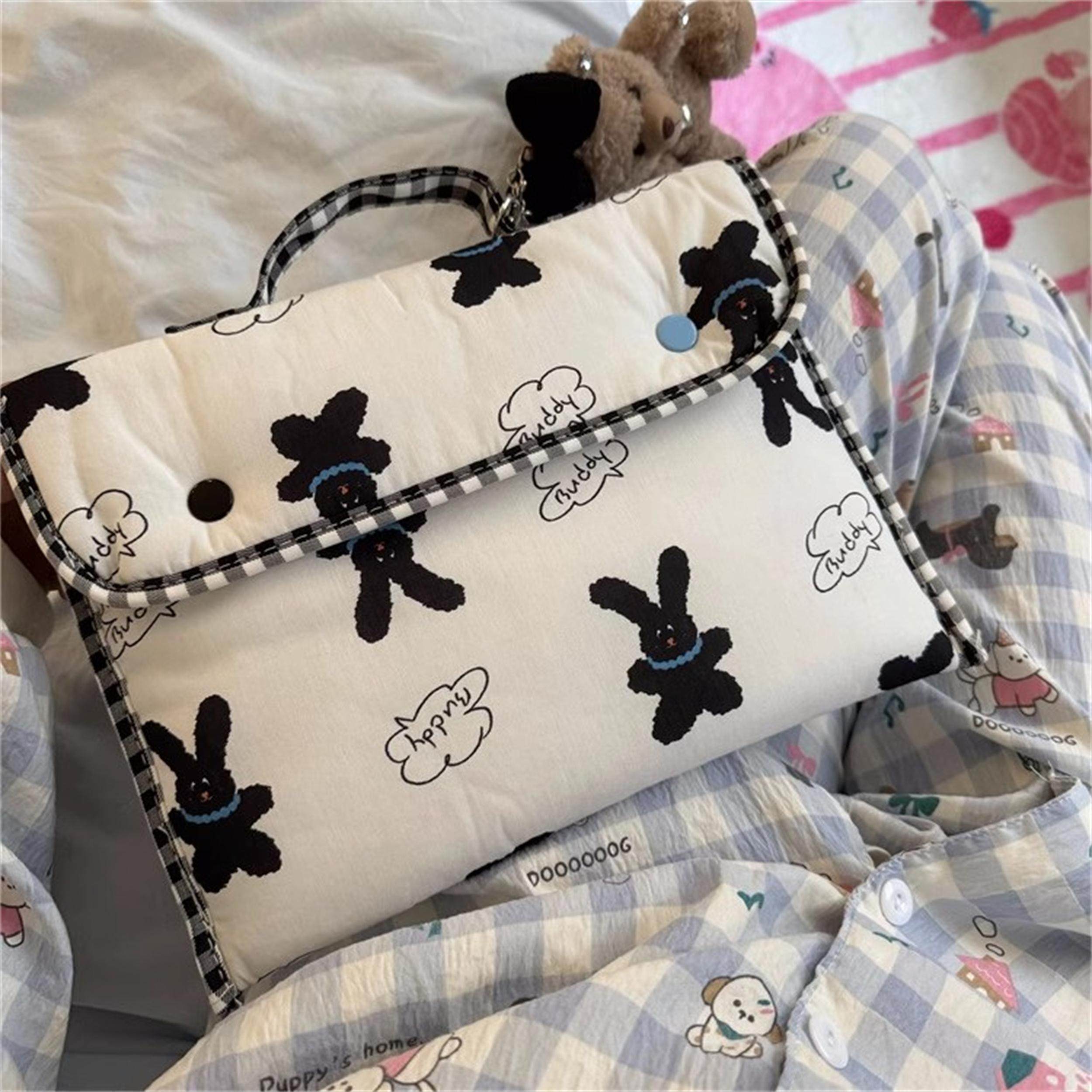 卡通黑色兔子電腦包女筆電手提包ipad內膽包保護袋收納包通勤包