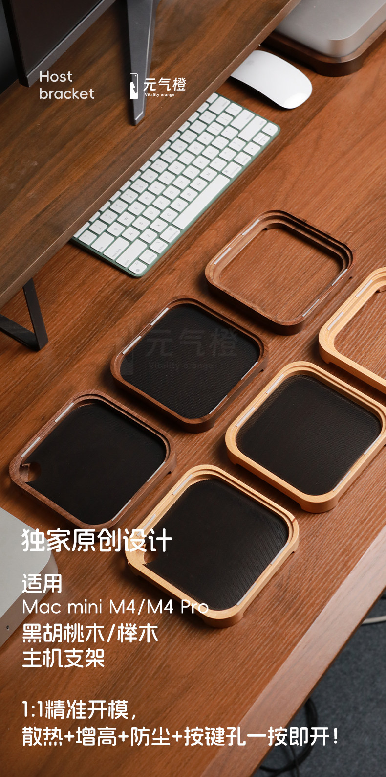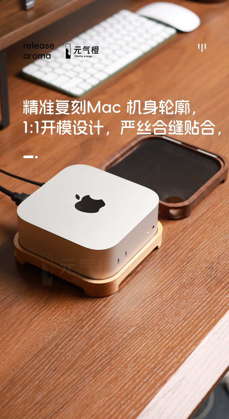 2024 Apple macmini M4防塵底座蘋果小主機托架北美黑胡桃木支架