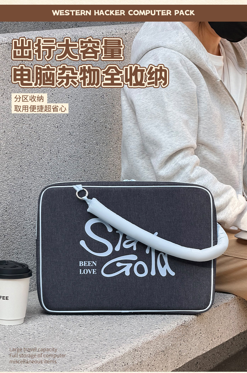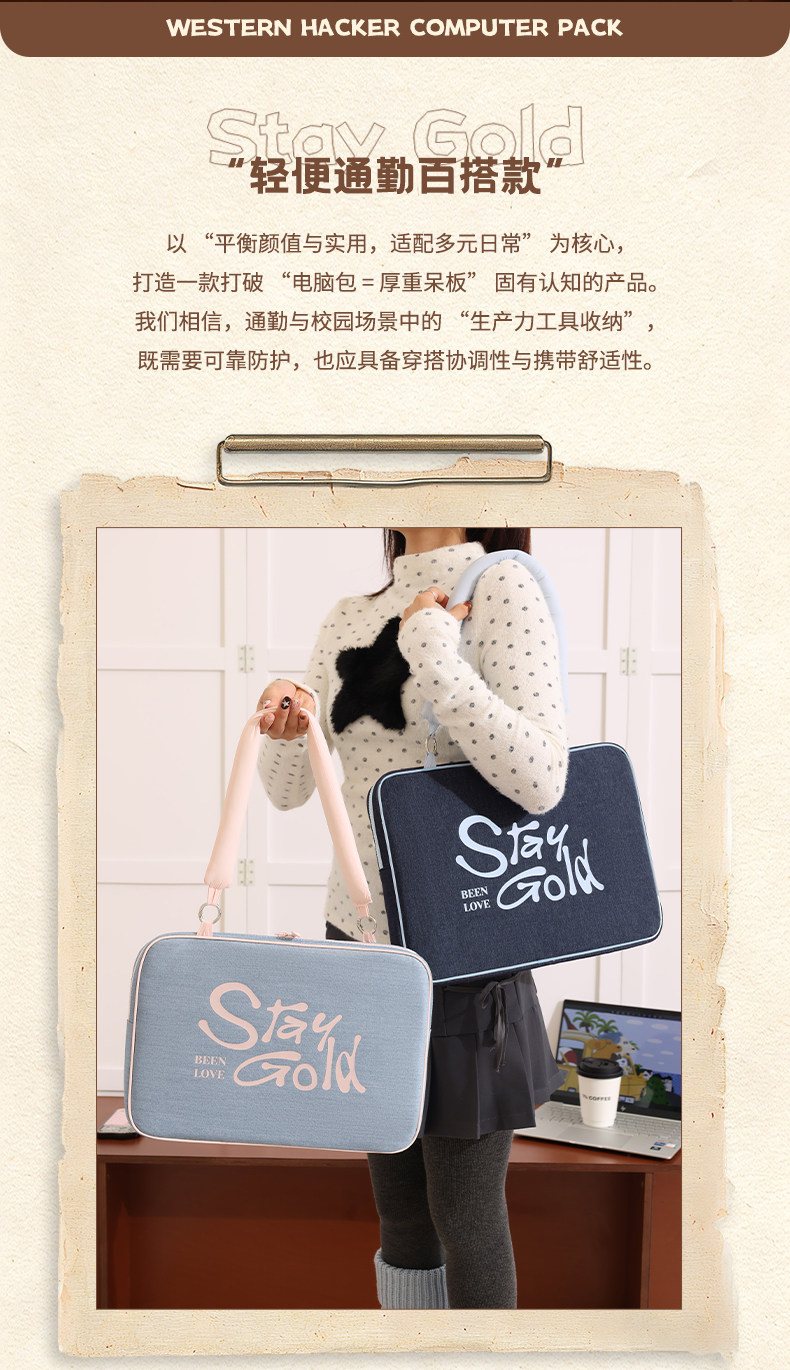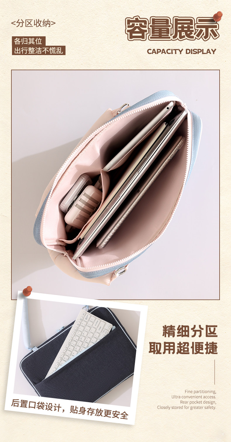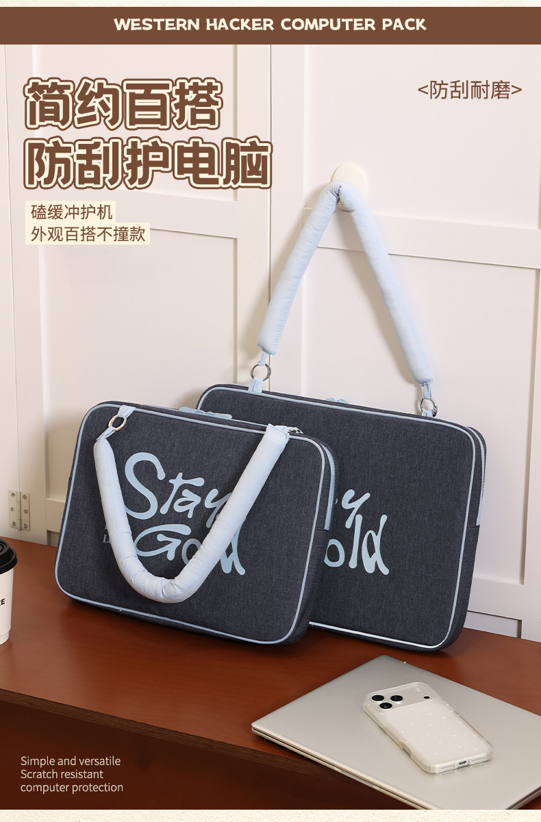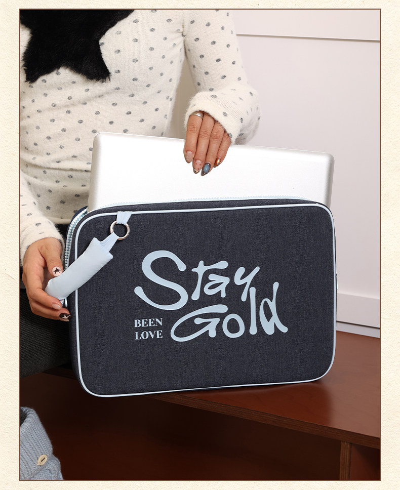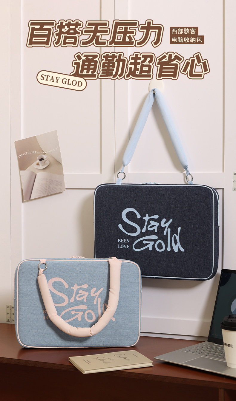 斜背筆記型電腦包手提高級感復古保護套牛仔滑鼠鍵盤蘋果macbook13寸聯想air華爲matebook14戴爾15小米15.6寸