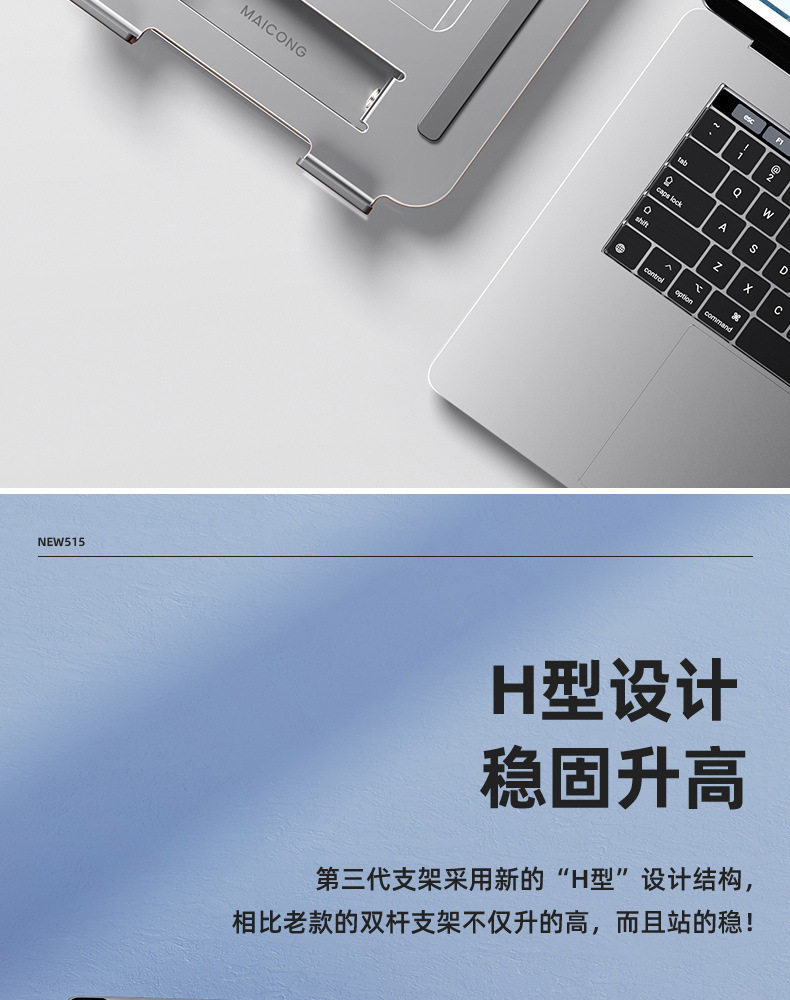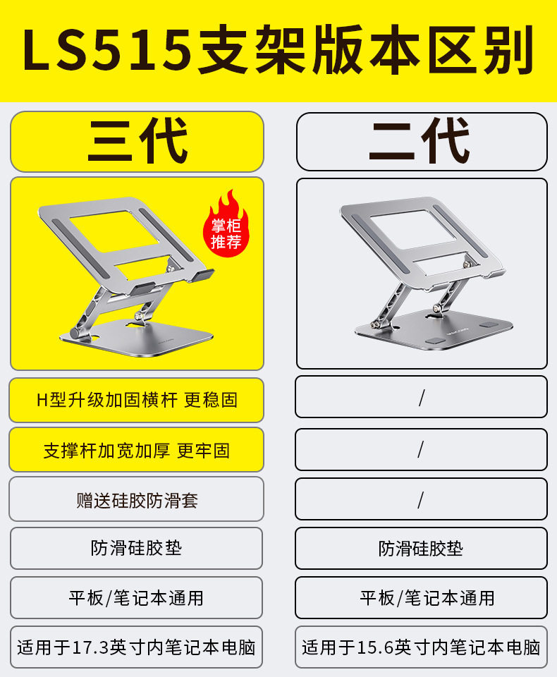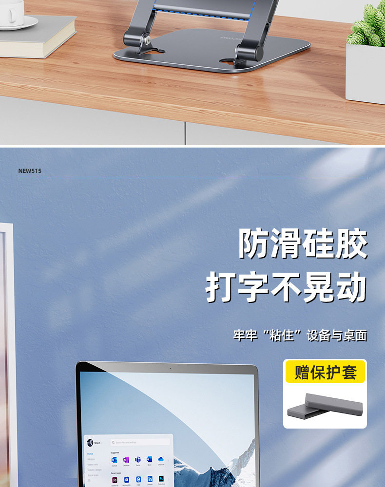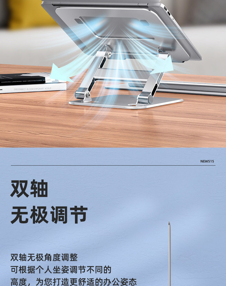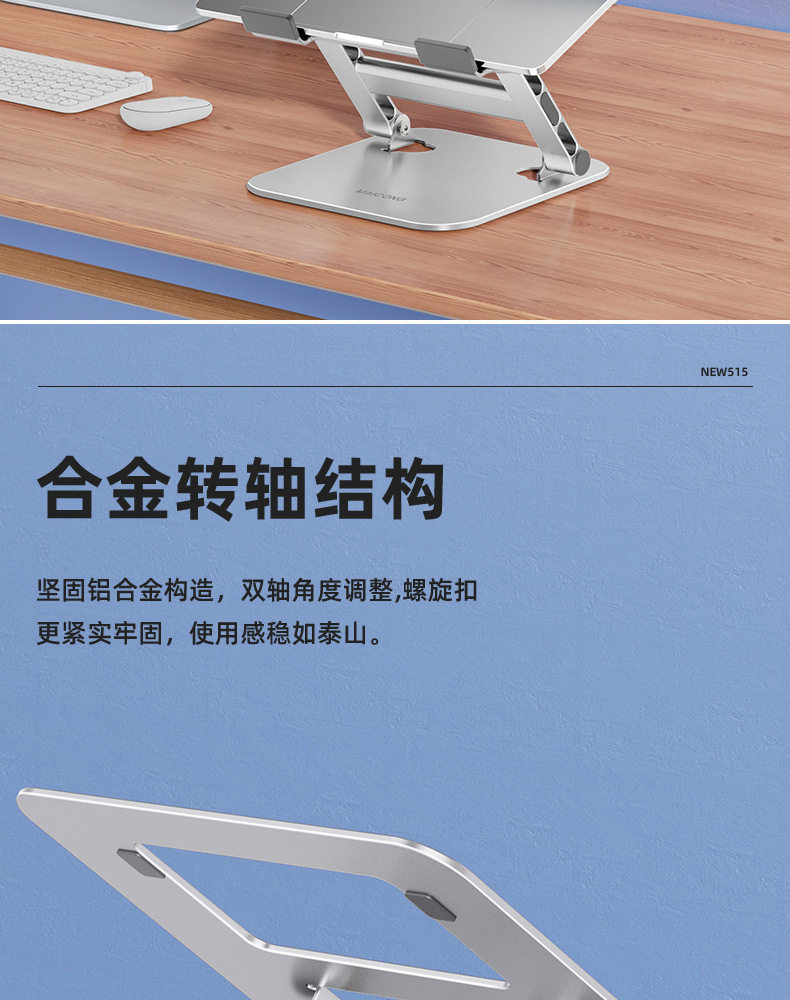新款鋁合金LS515筆電支架三代支架桌面折曡增高升降電腦支架
