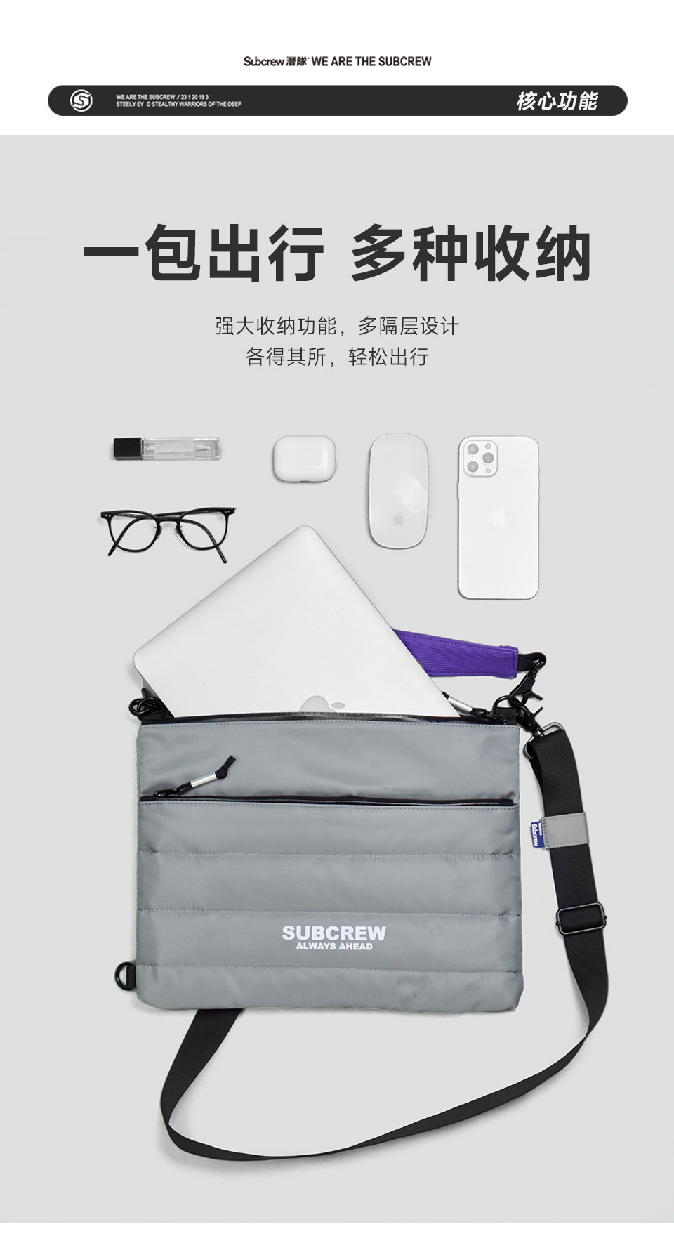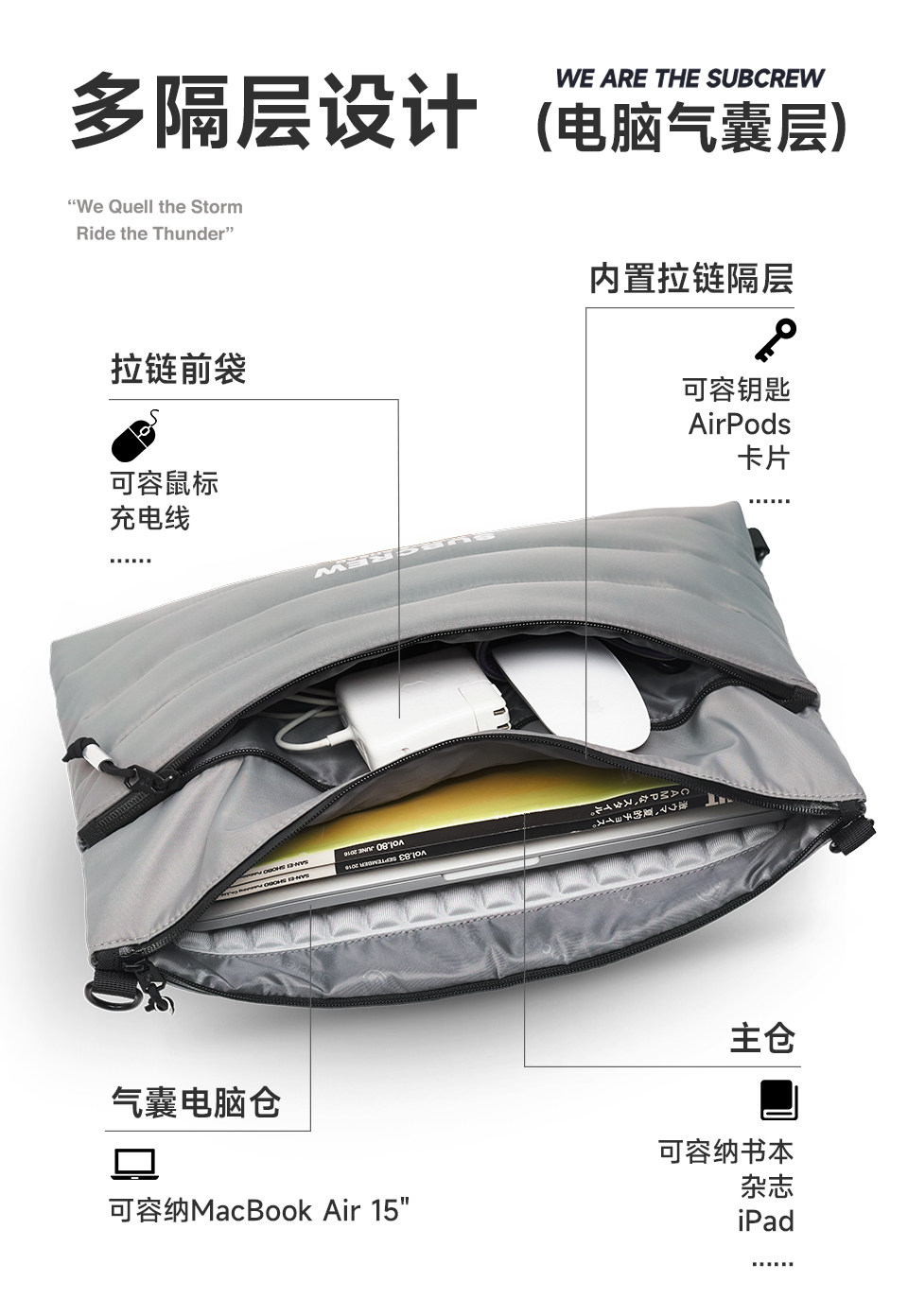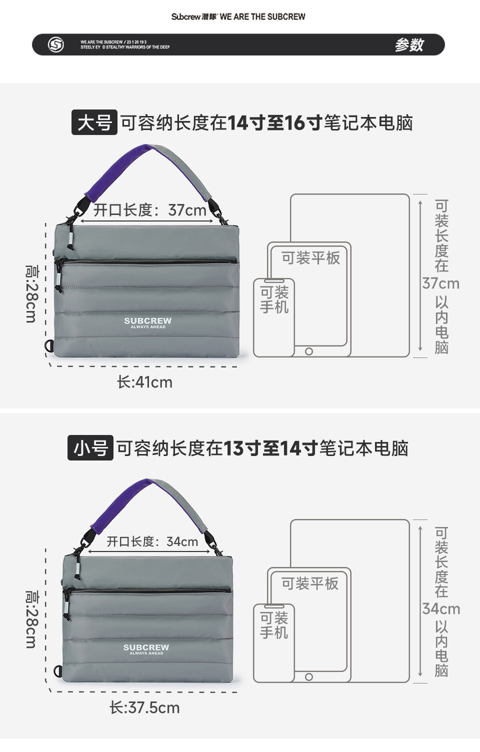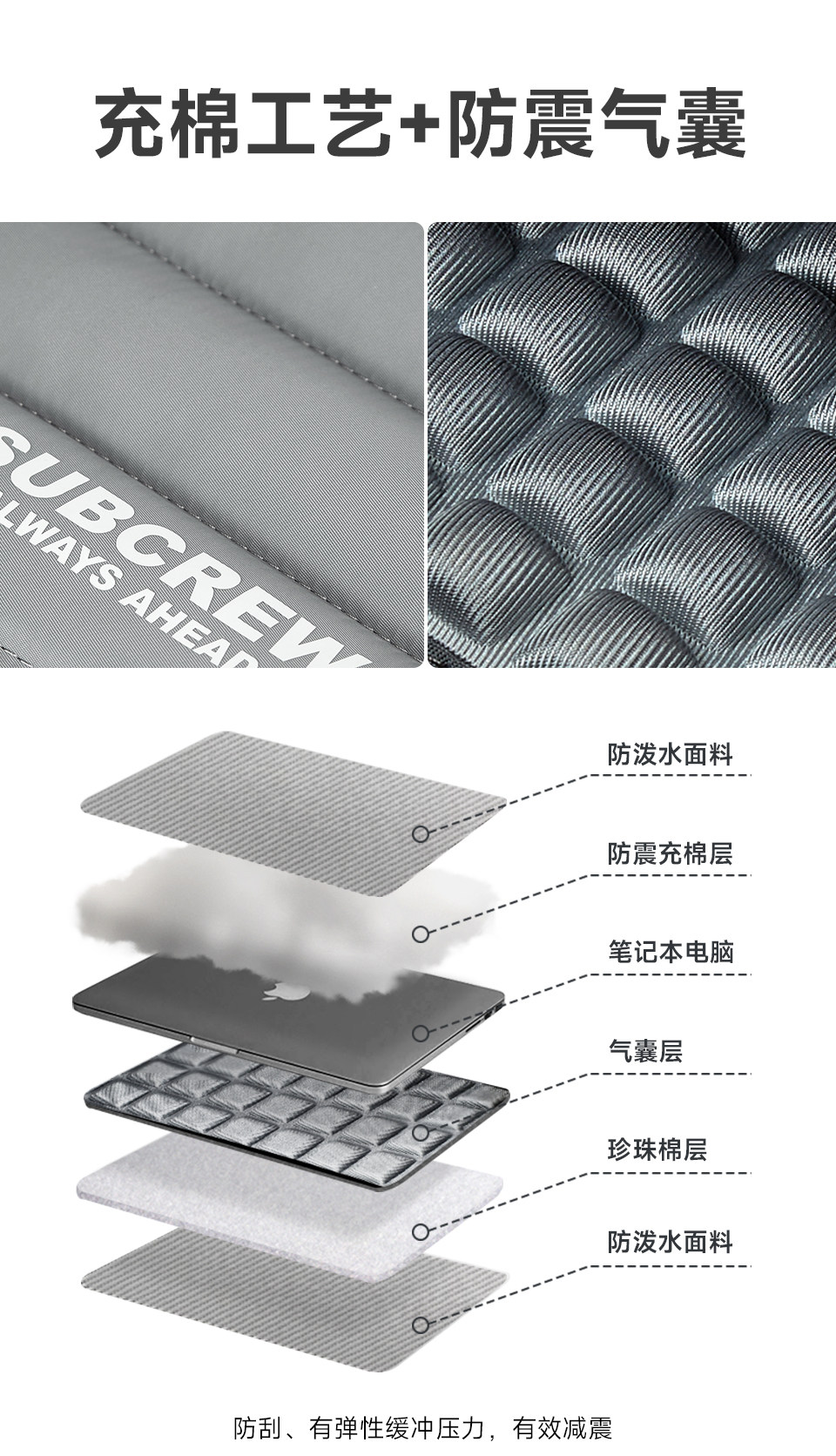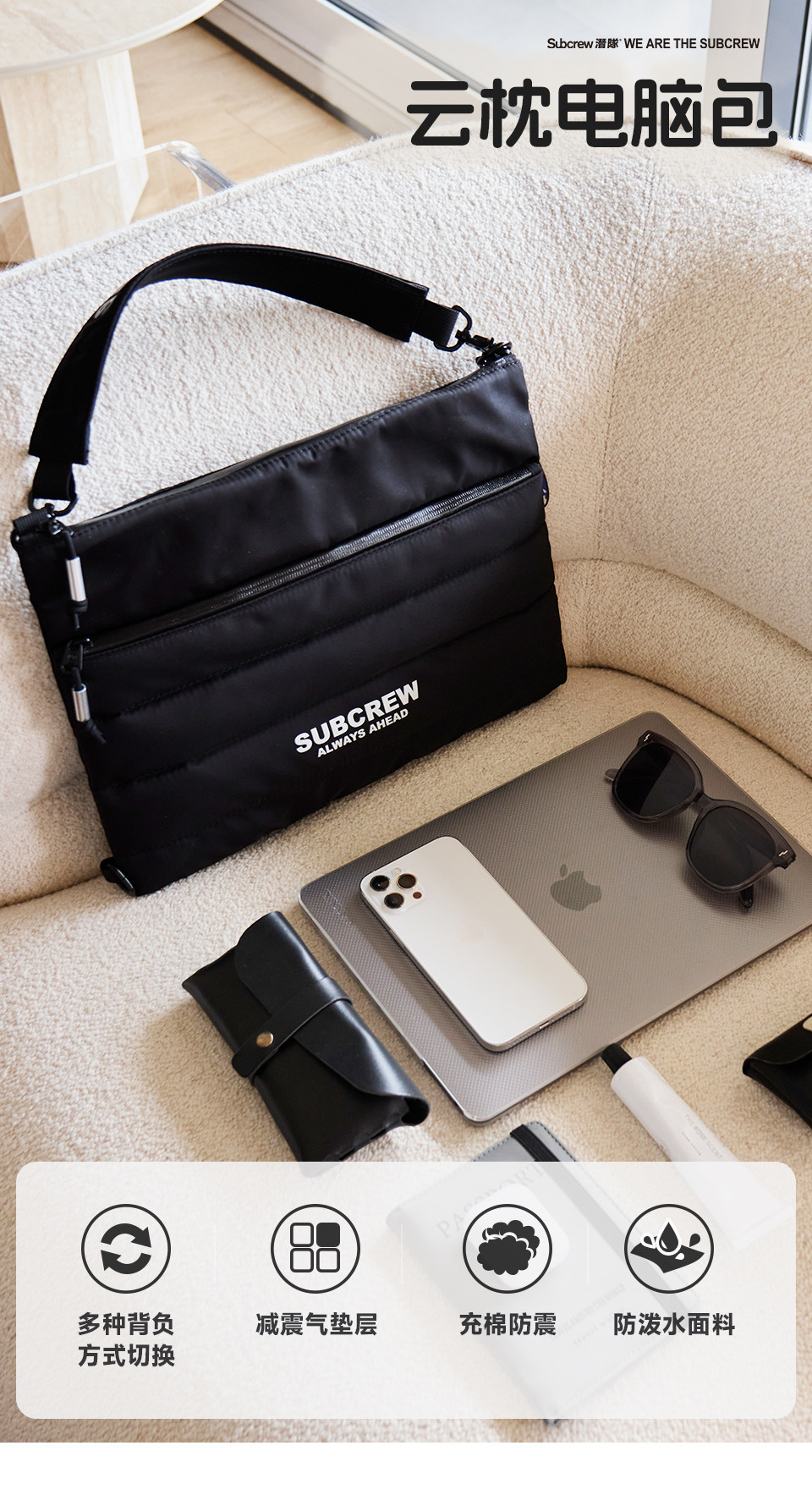 Subcrew軟fufu感充棉蘋果筆記型電腦包14寸男女通用可單肩手提斜後後背包