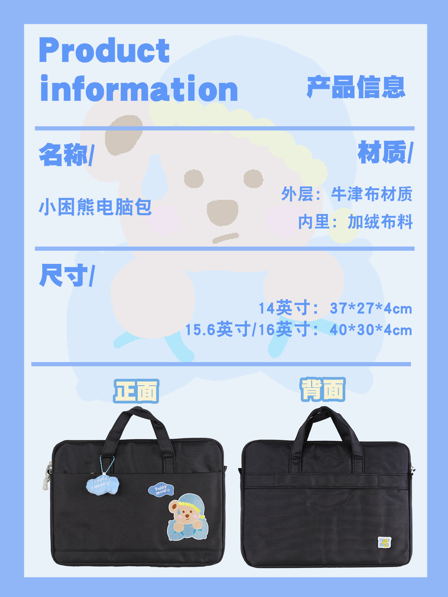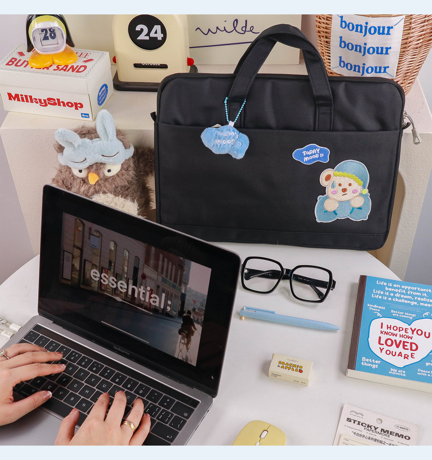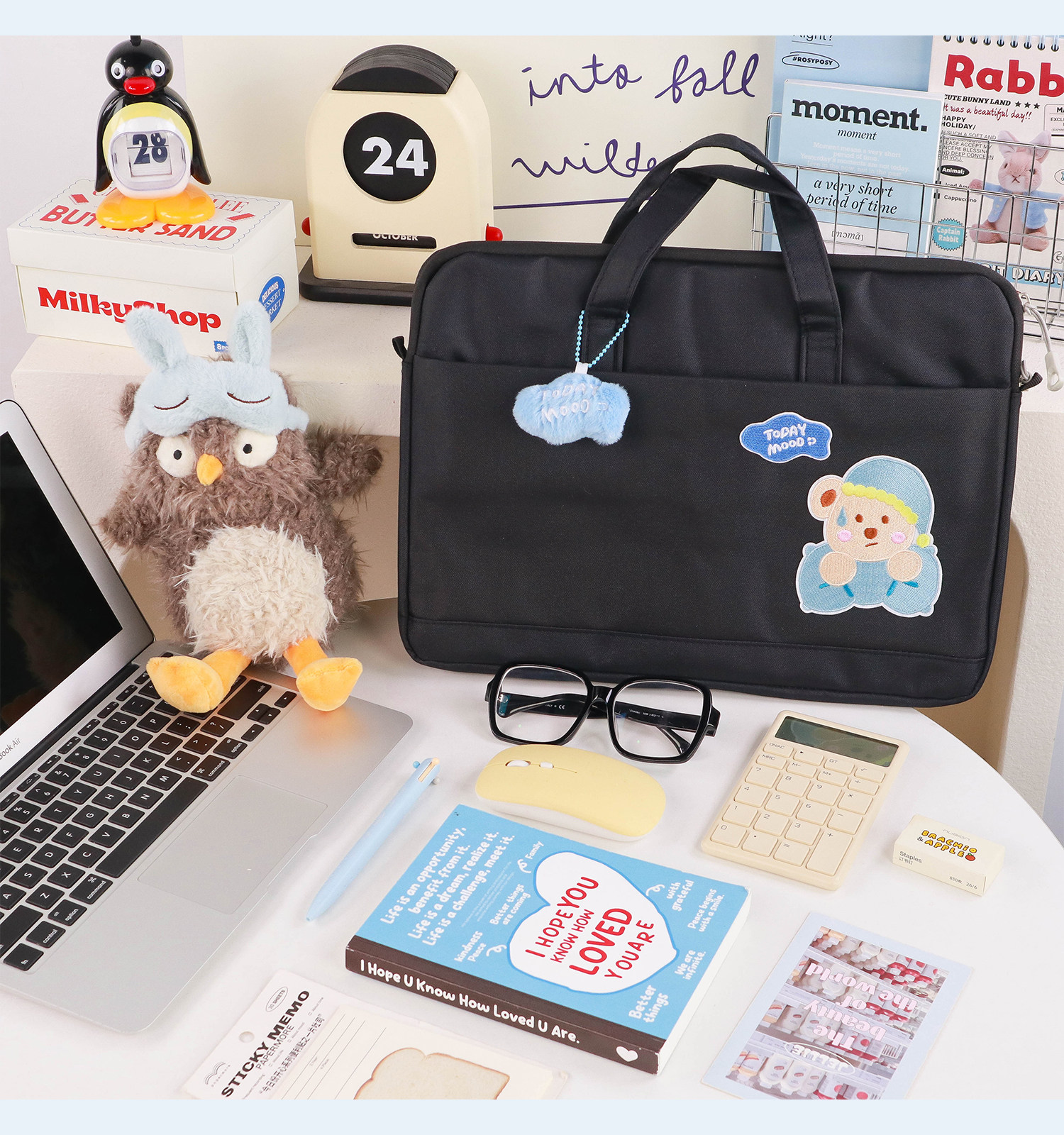 今日心情小睏熊手提筆記型電腦包女高顔值14寸16英寸高級感輕薄輕便單肩斜背通勤新款防摔防震可攜式掛式行李箱