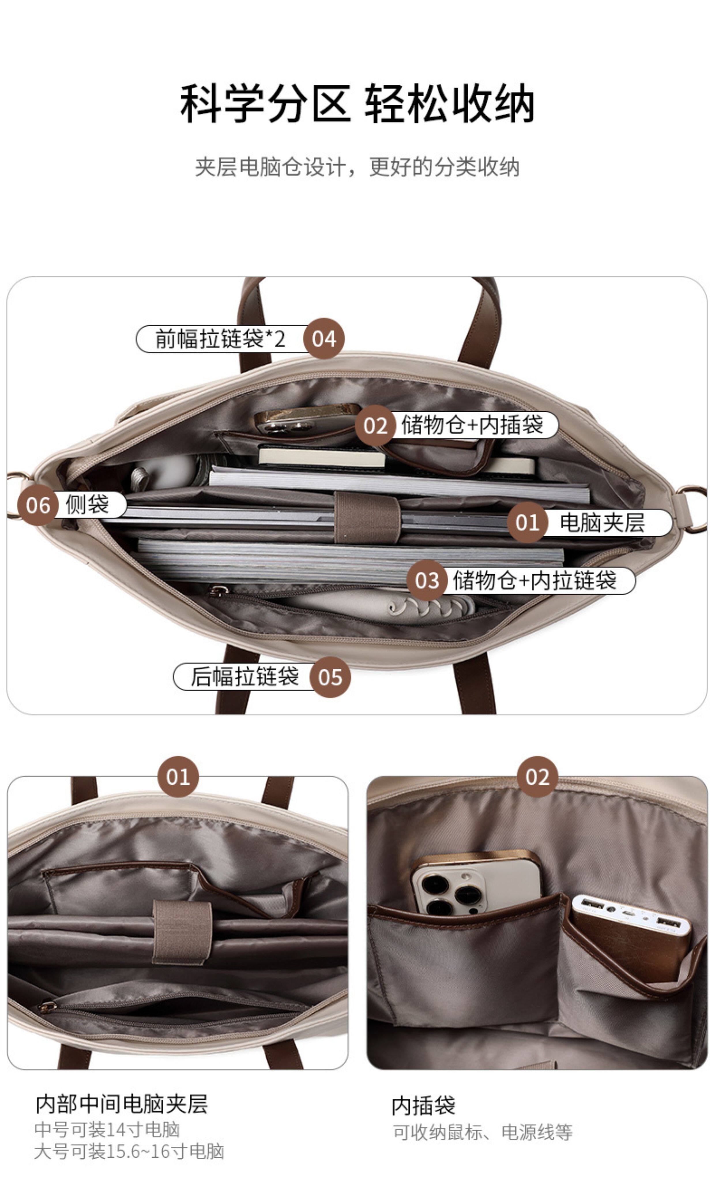 高級感女士手提公文包多分隔層商務工作通勤14-16寸筆記型電腦包a4文件袋大容量設計師托特一包三用