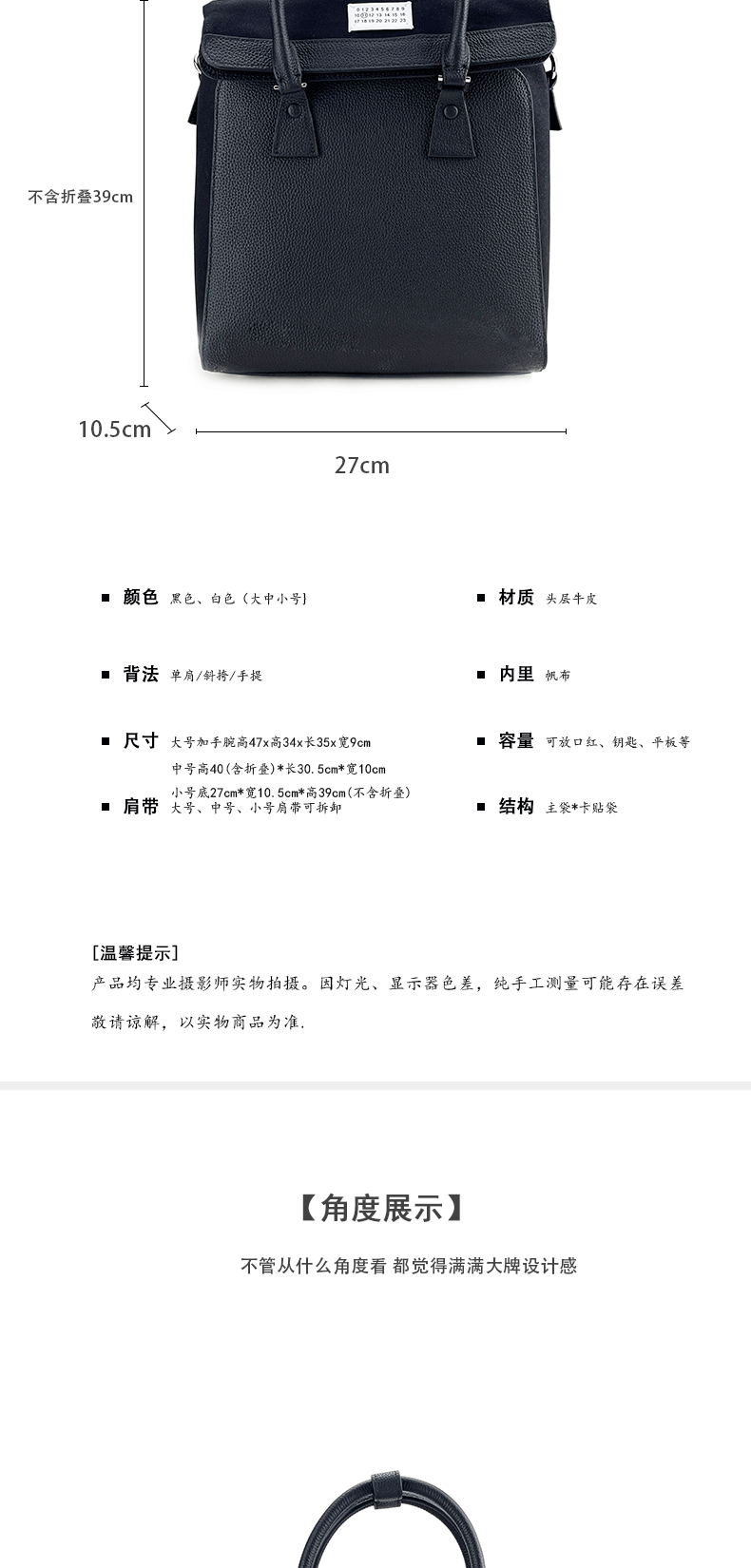 | 尺寸 | 大號:加手腕高47x高34x長35x寬9cm 中號:高40(含折曡) 長:30.5 寬:10 小 |