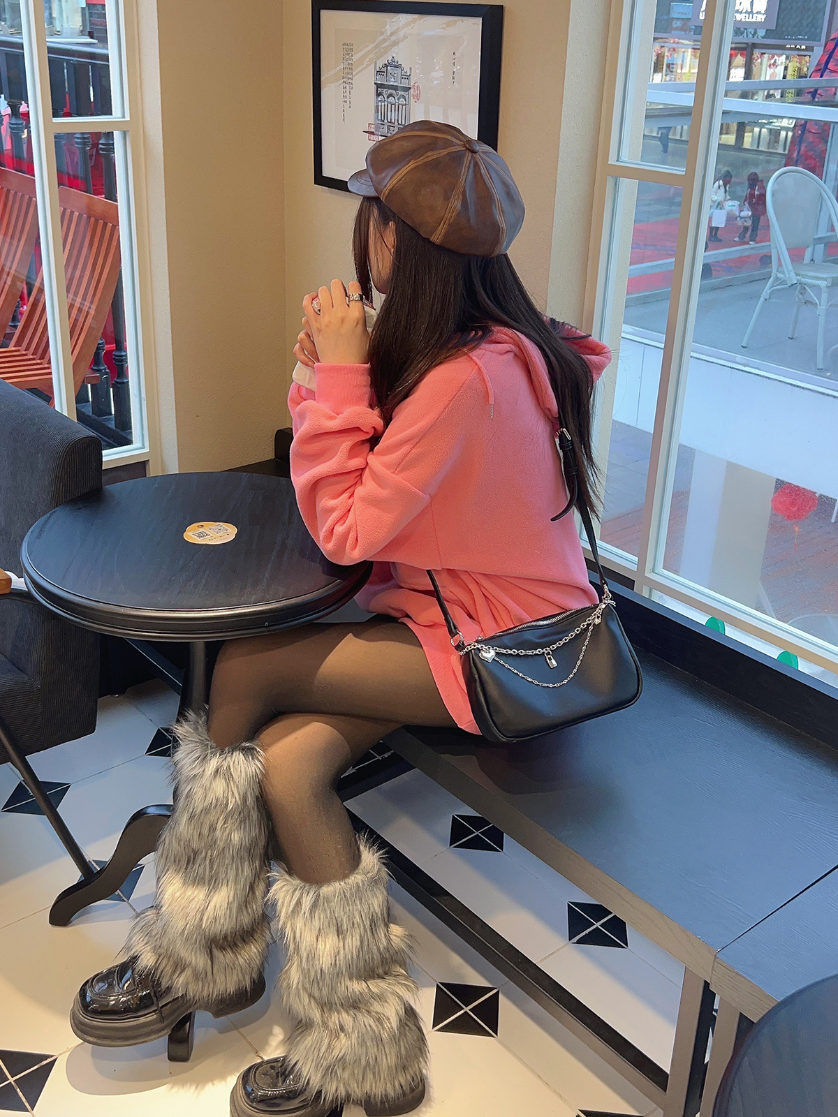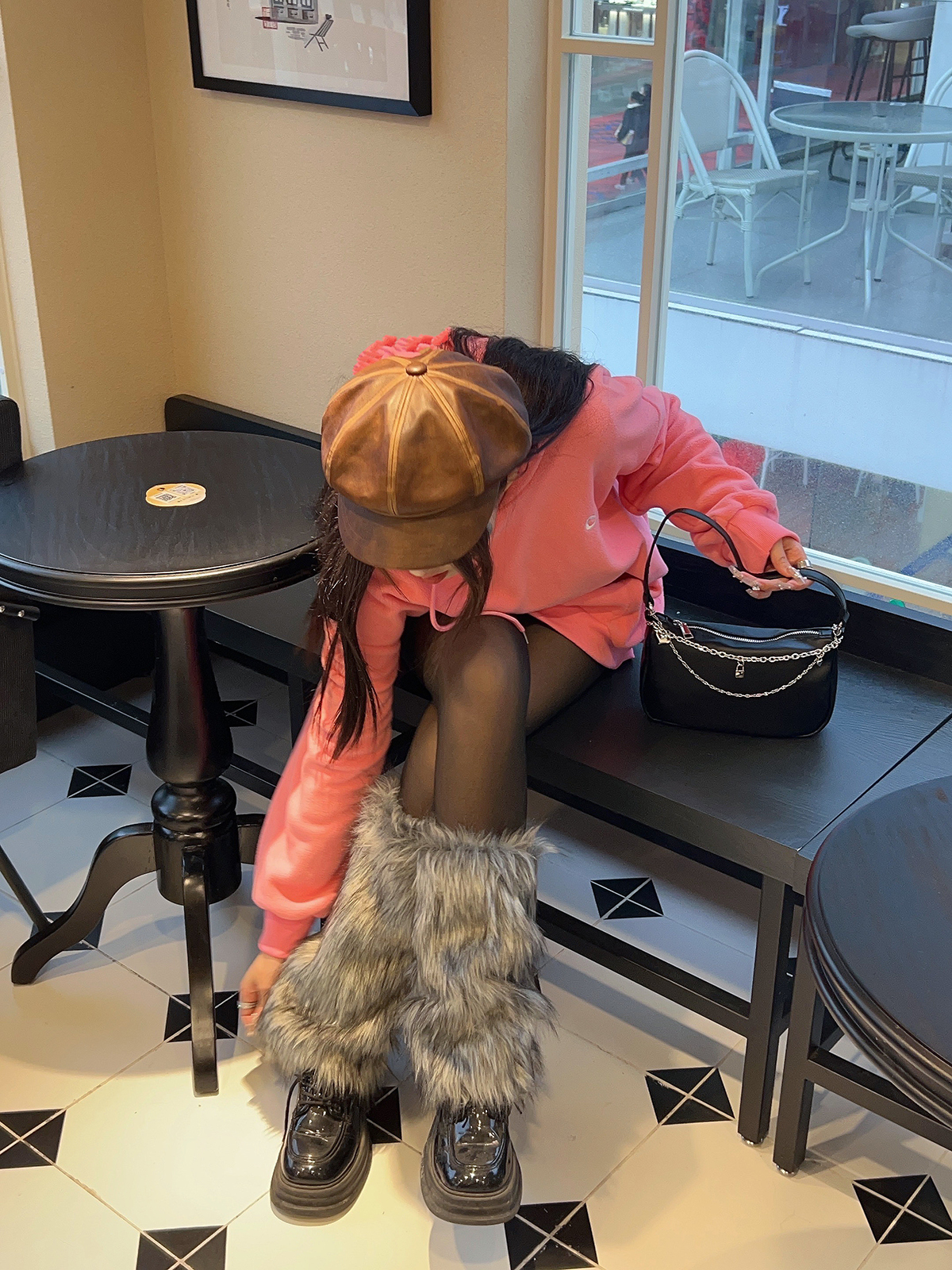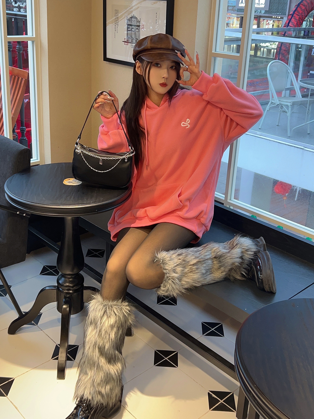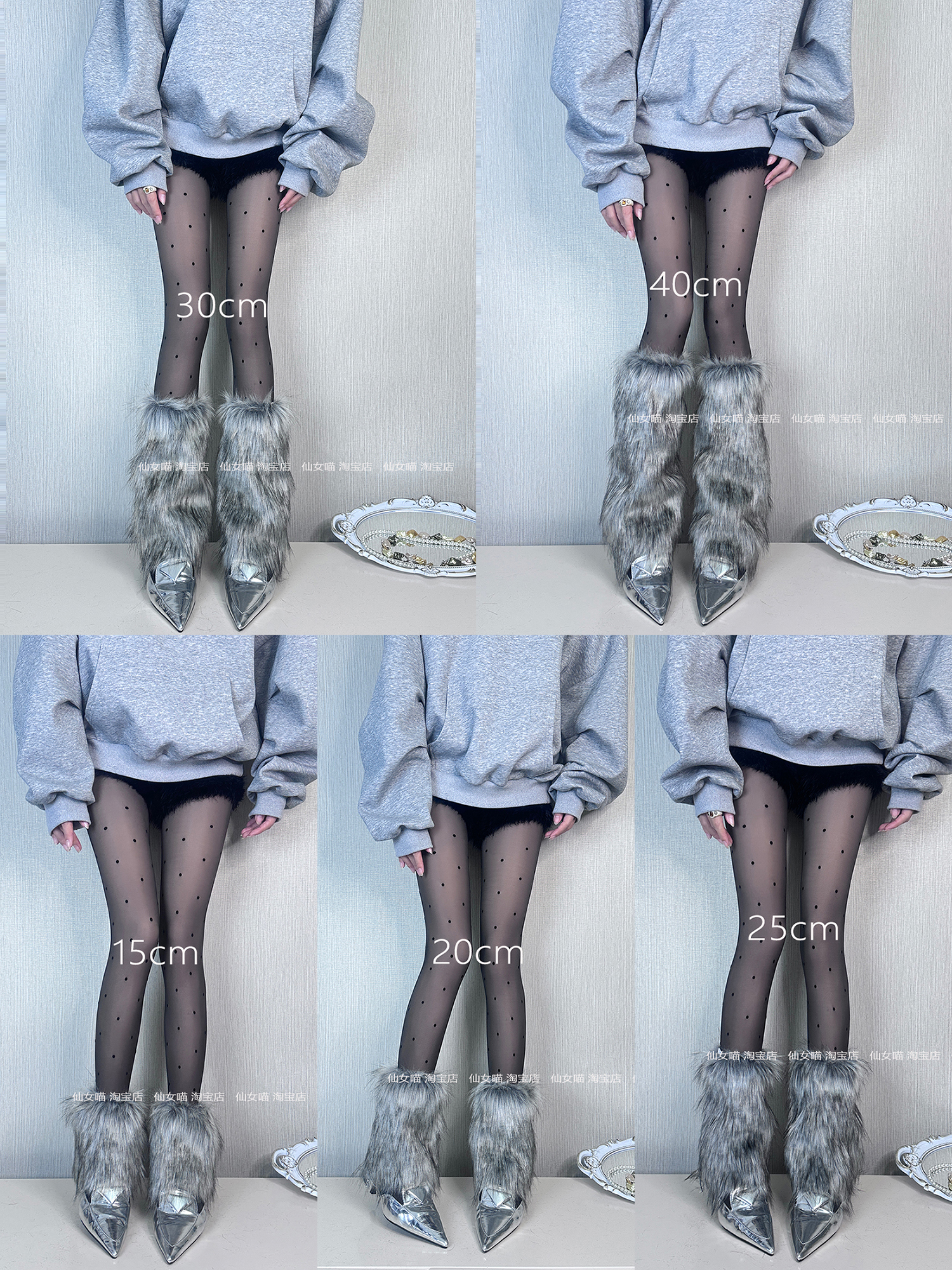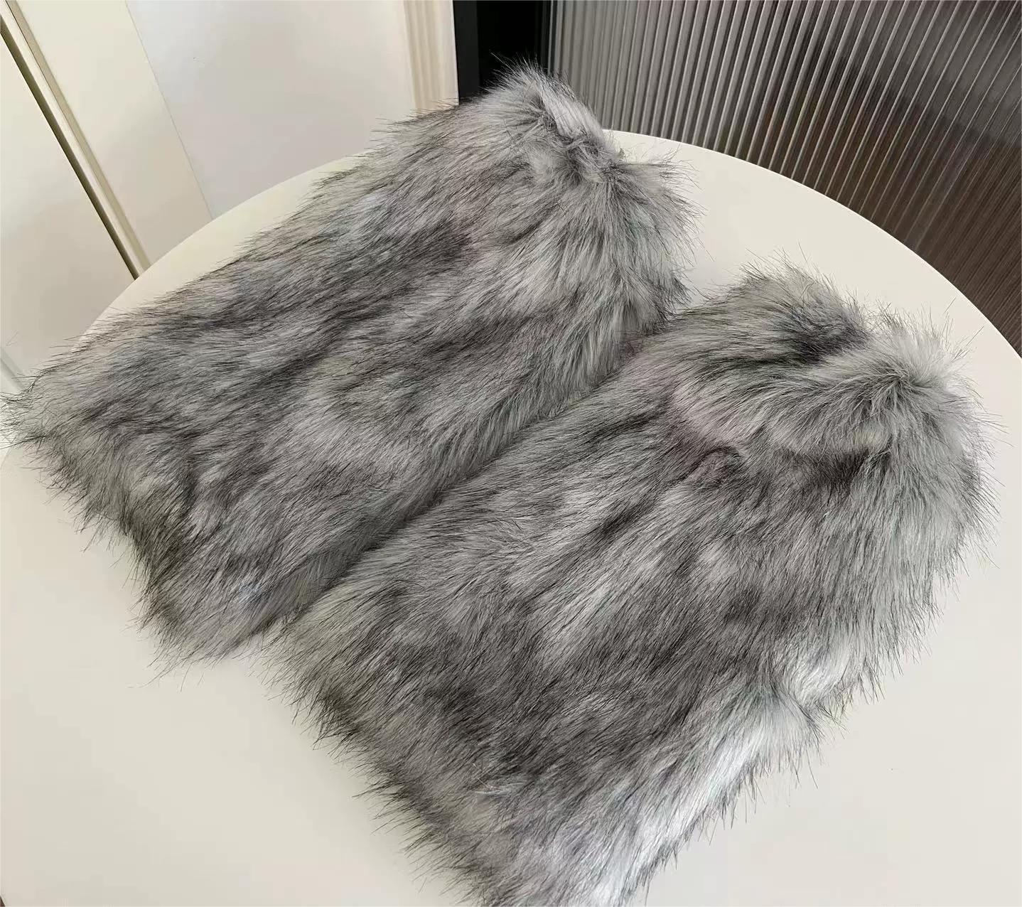 Y2K澁穀辣妹灰黑色漸變毛絨襪套甜酷少女仿狐狸毛秋冬加厚護腿套
