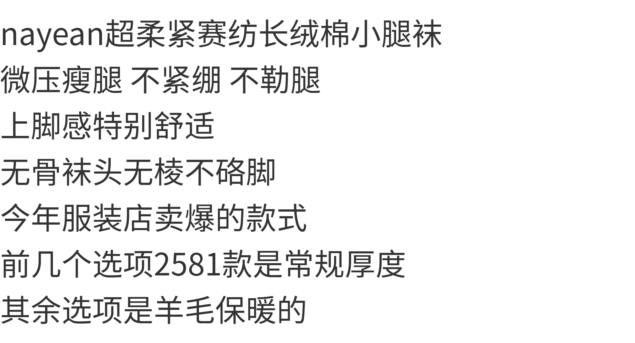 nayean升級版壓力瘦腿小腿襪2581 實體爆款抗起球無骨及膝長筒襪
