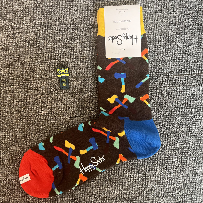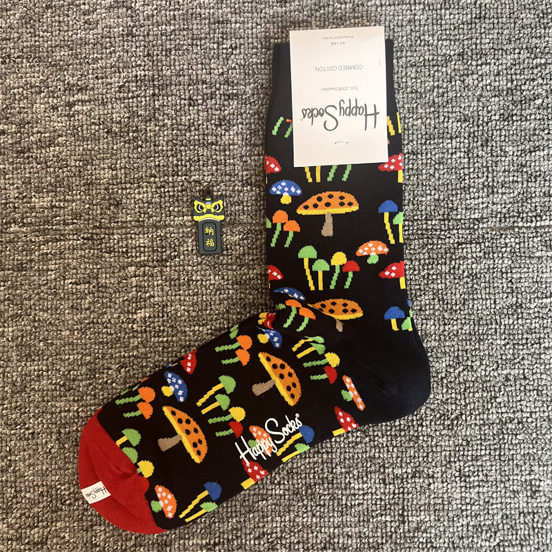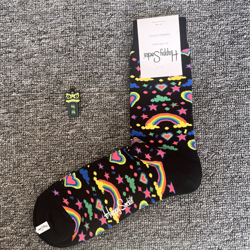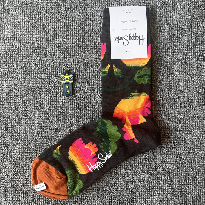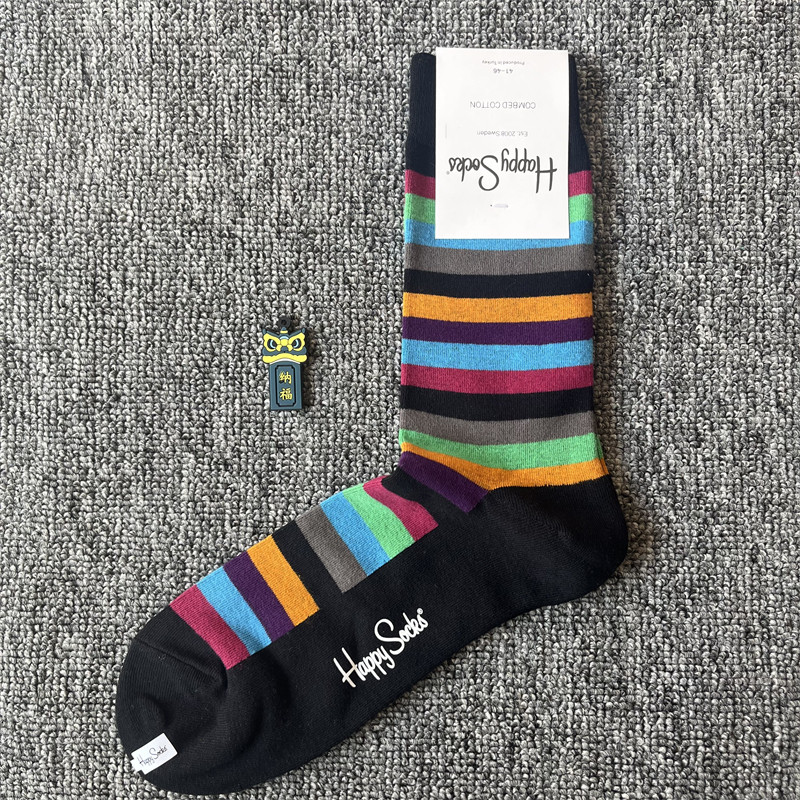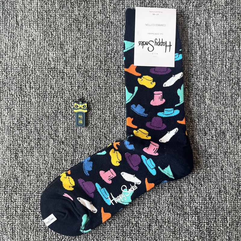 happy爆款男士潮牌襪四季純棉經典中筒襪瑞典百搭個性歐美襪子ins