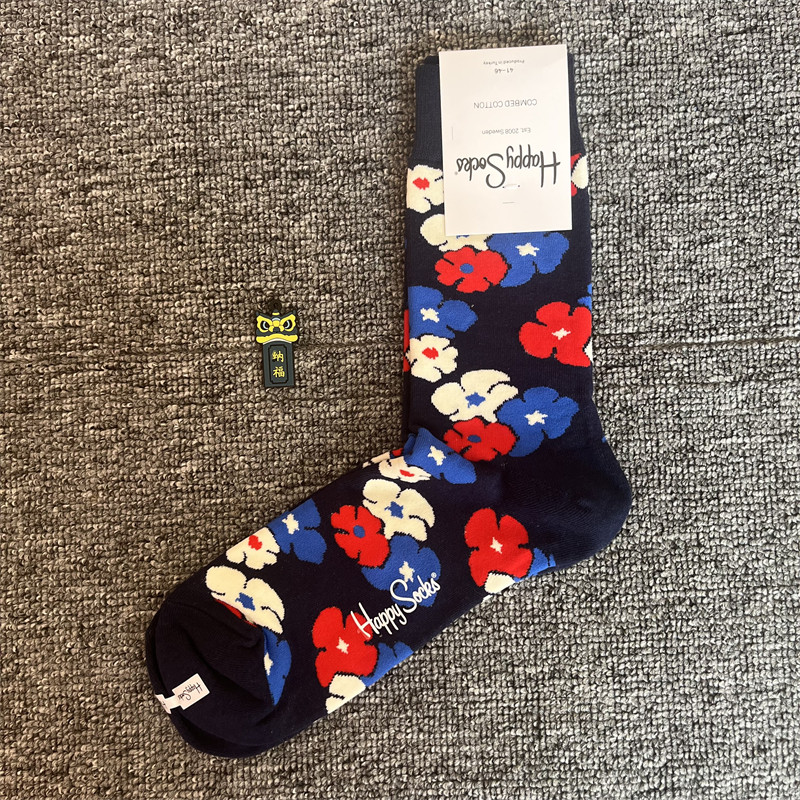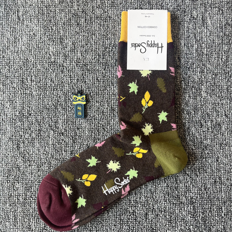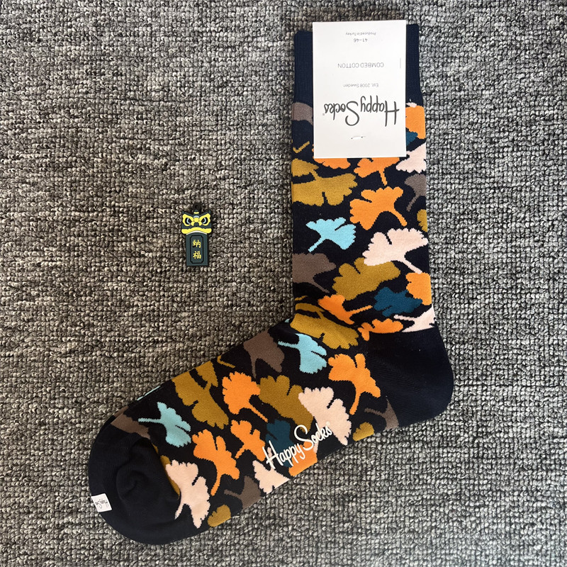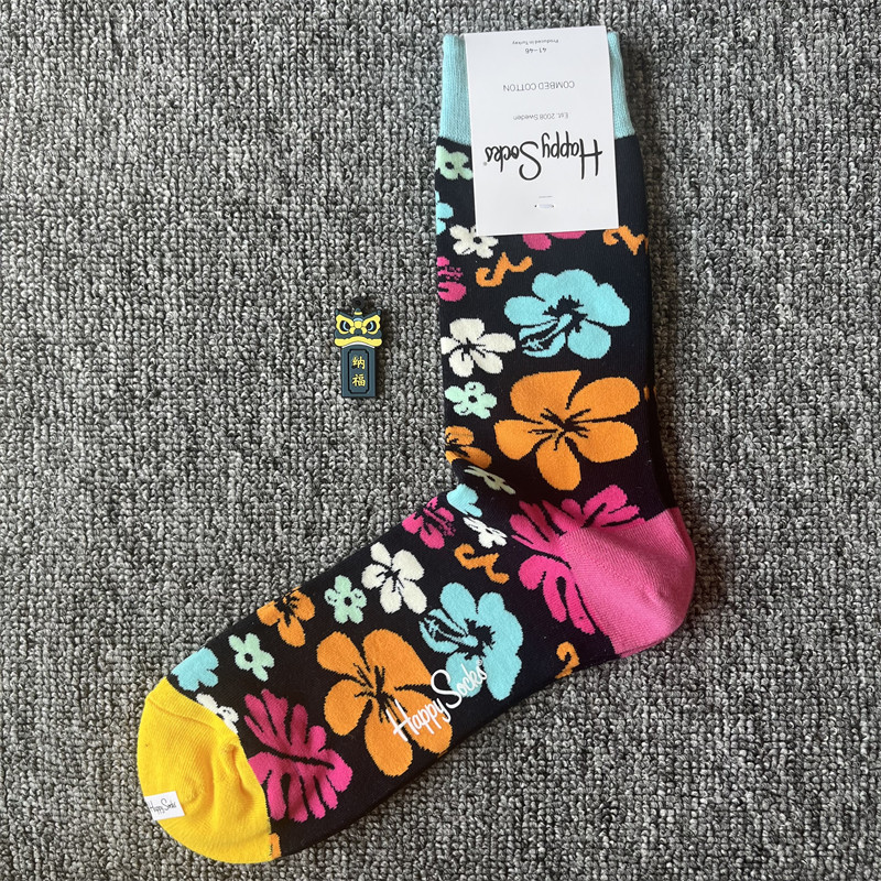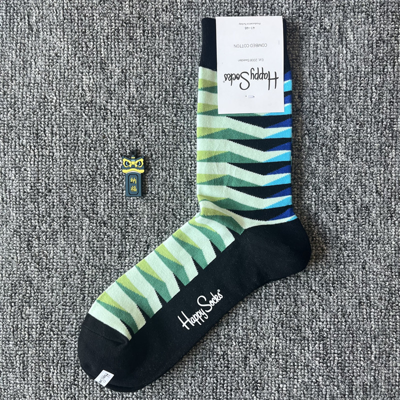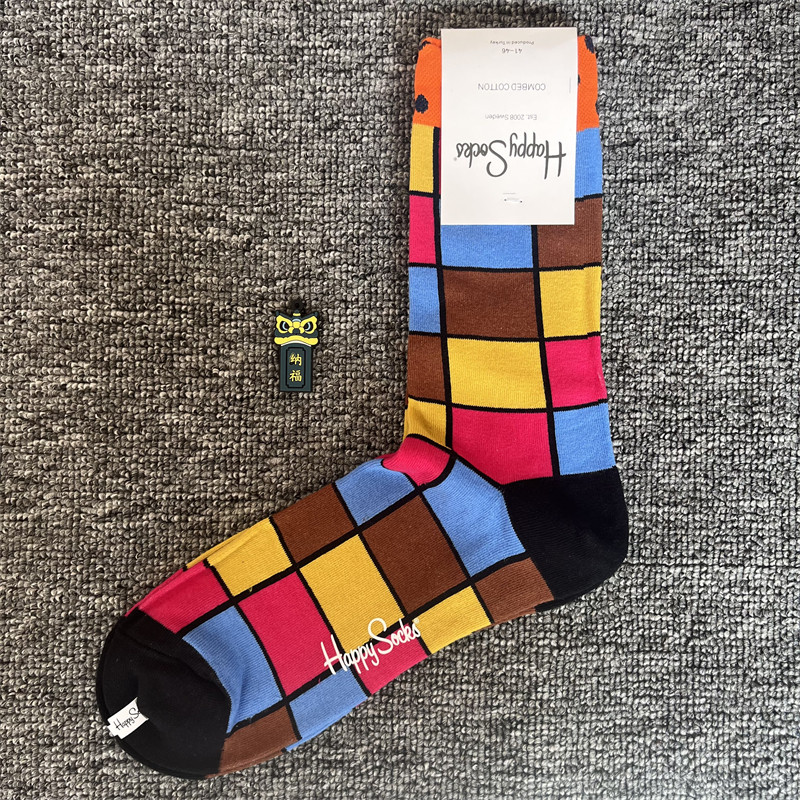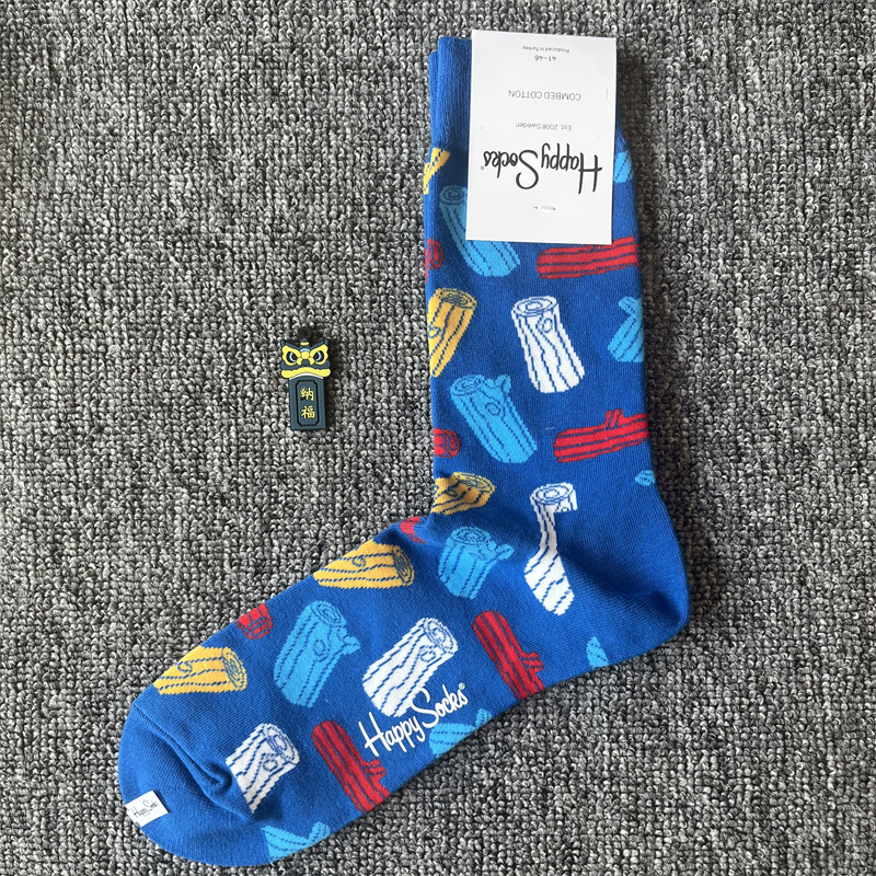 happy爆款男士潮牌襪四季純棉經典中筒襪瑞典百搭個性歐美襪子ins