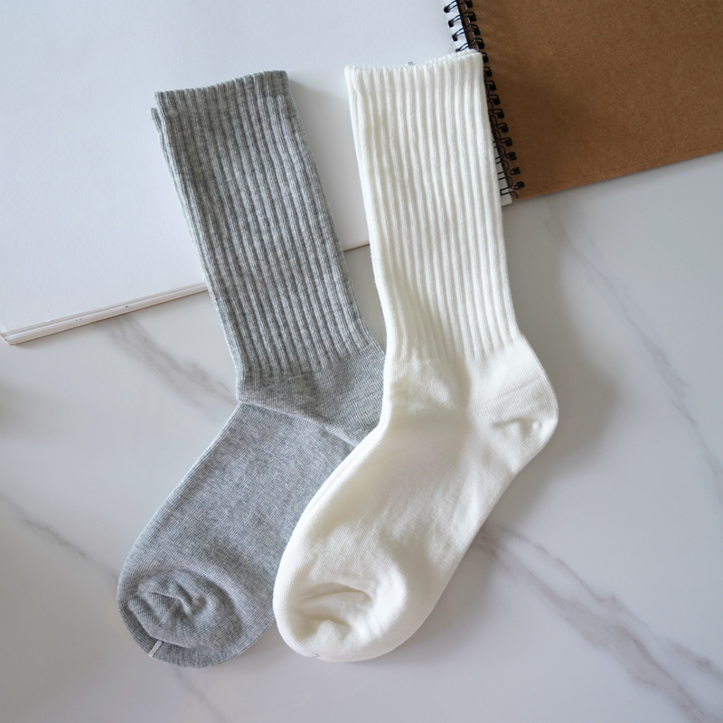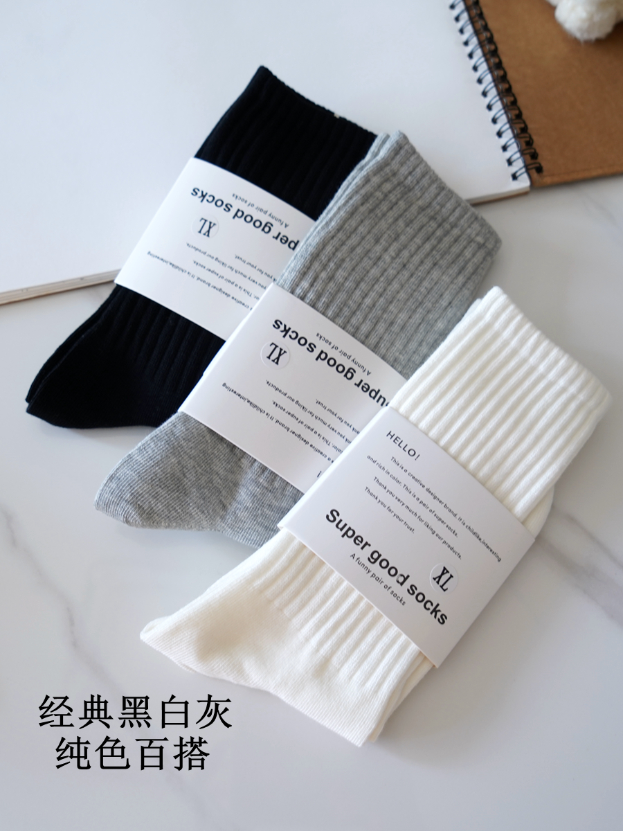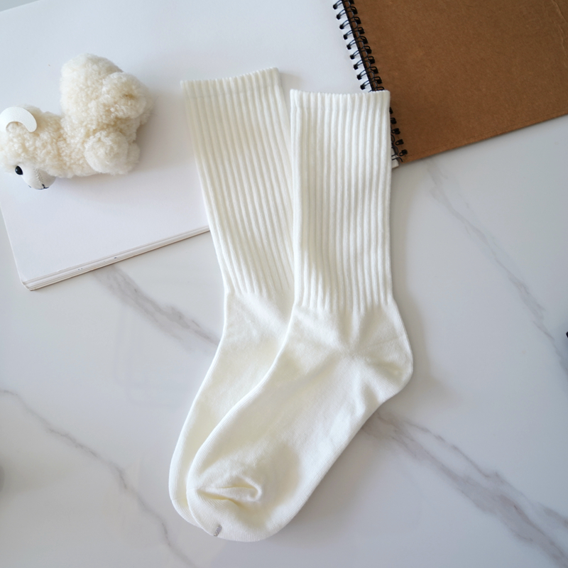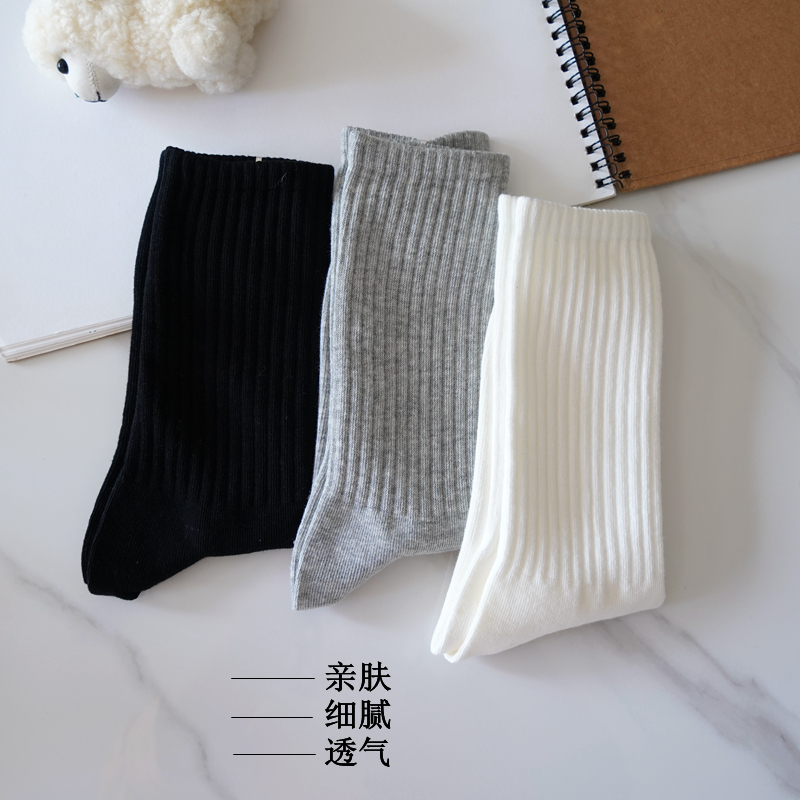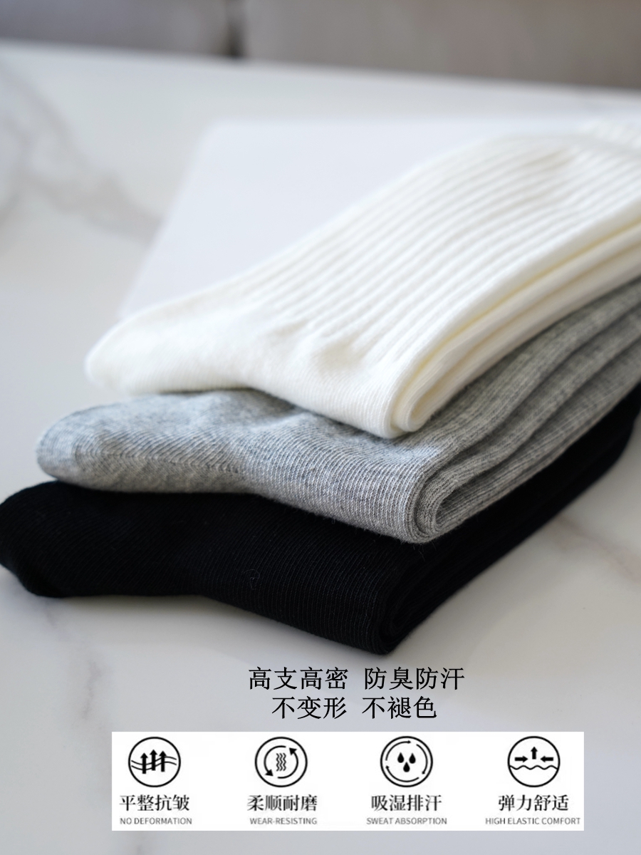 女士高筒襪純棉配鯊魚褲的襪子純色防臭運動襪春秋男士白色長筒襪