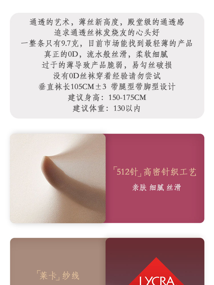 逢晴「蟬翼」9克至薄0D高透黑絲512針高密絲滑性感透明加長黑絲襪