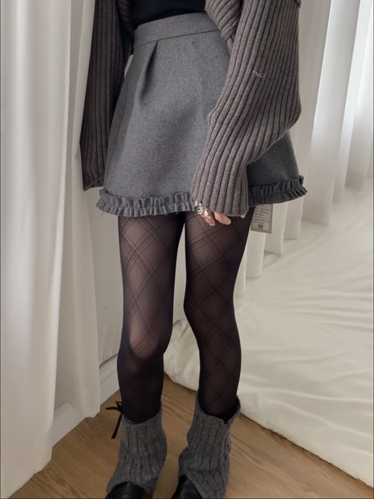 尊嘟很愛!菱格黑絲+襪套真的好美好耐看!秋冬高級感輕松拿捏~
