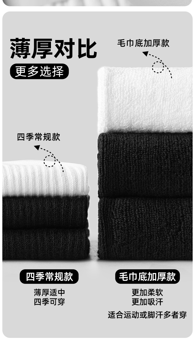子墨襪子男士純棉紗線冬長筒7A抗菌白色長襪運動防臭毛巾底黑厚款