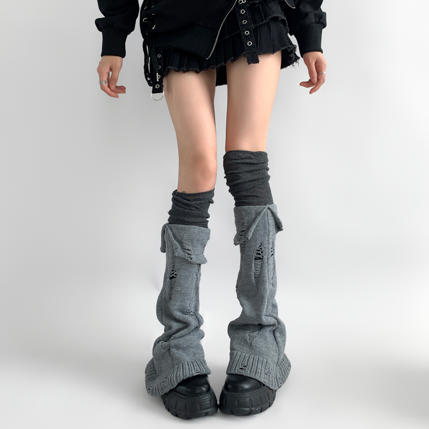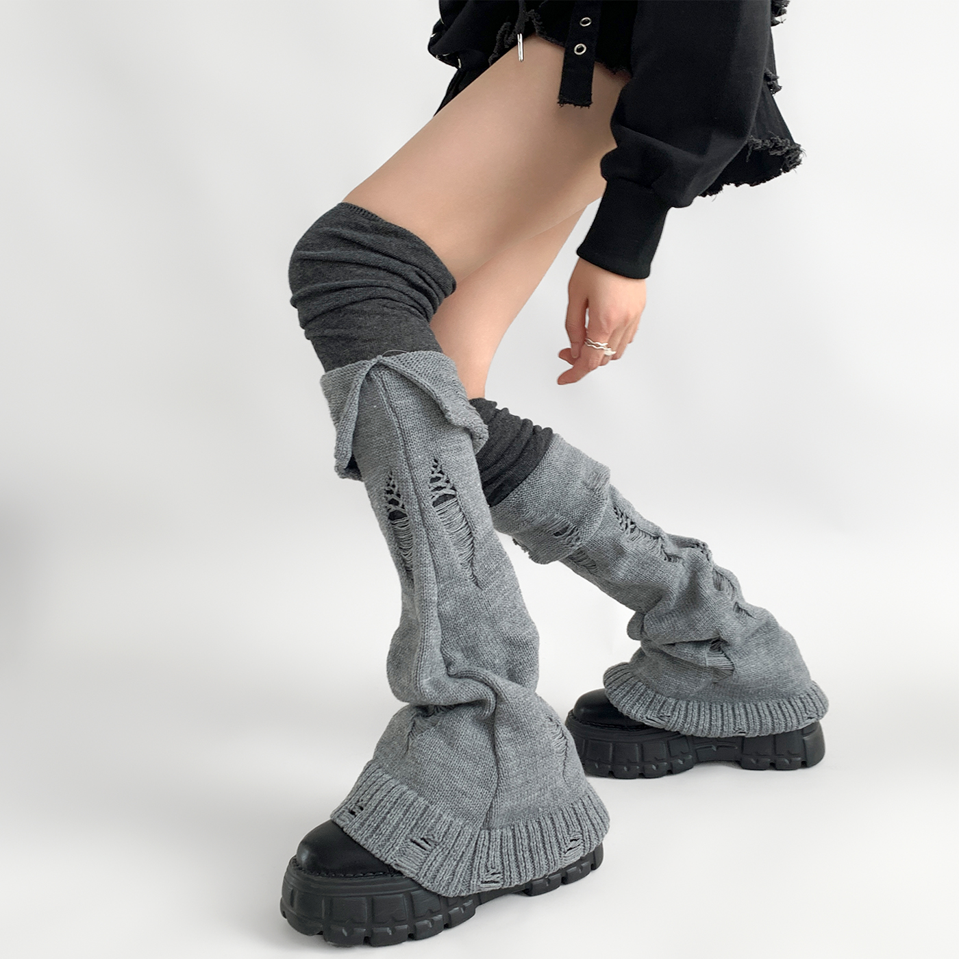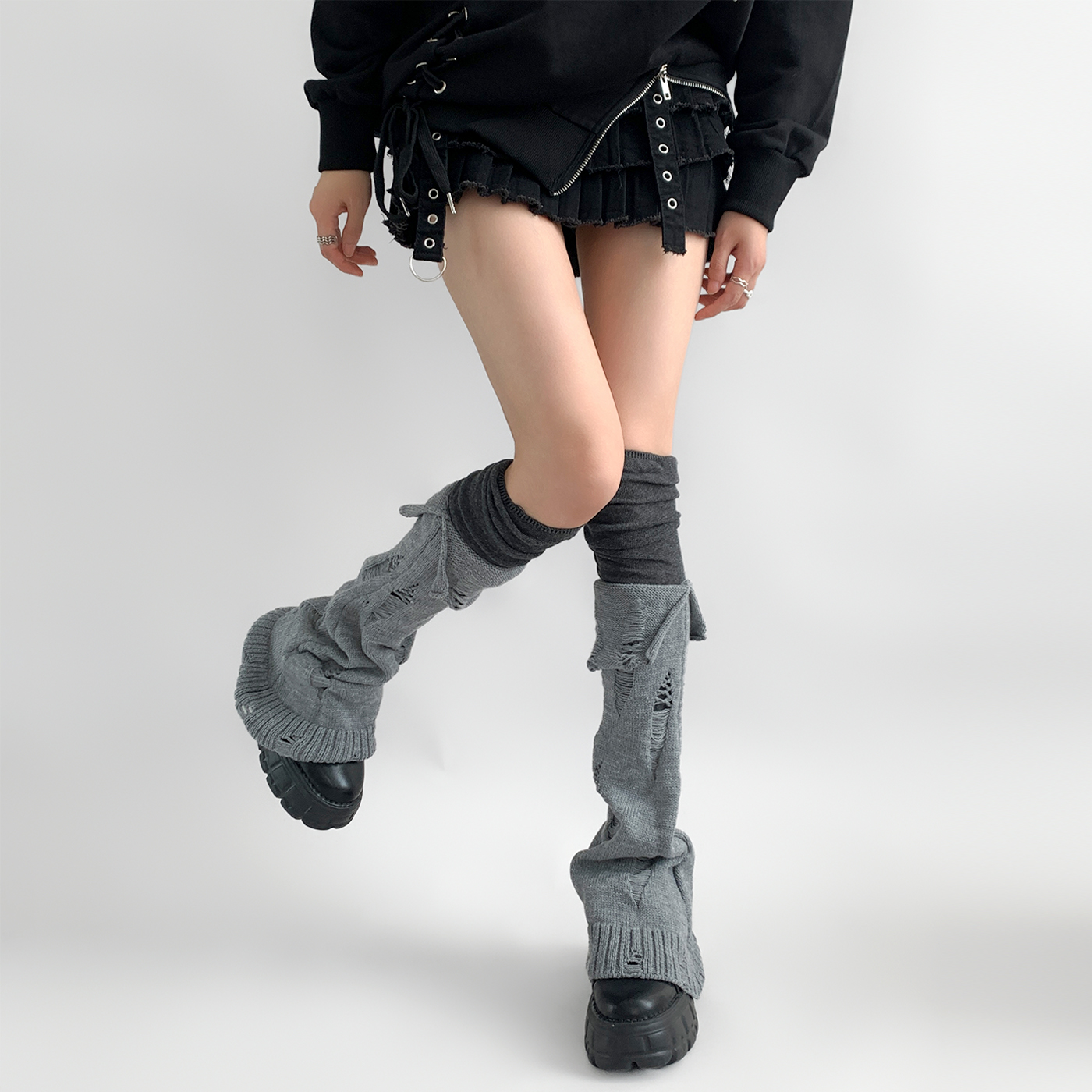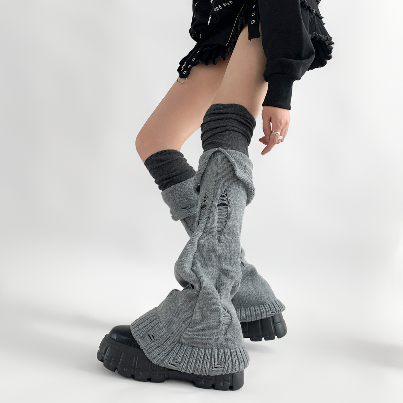 | 服裝款式細節 | 個性曡穿長筒破洞堆堆襪套 |