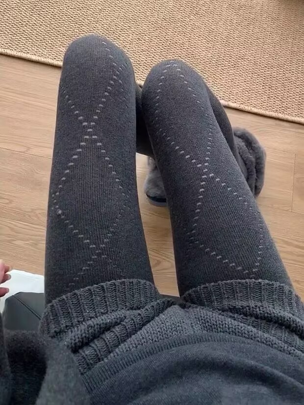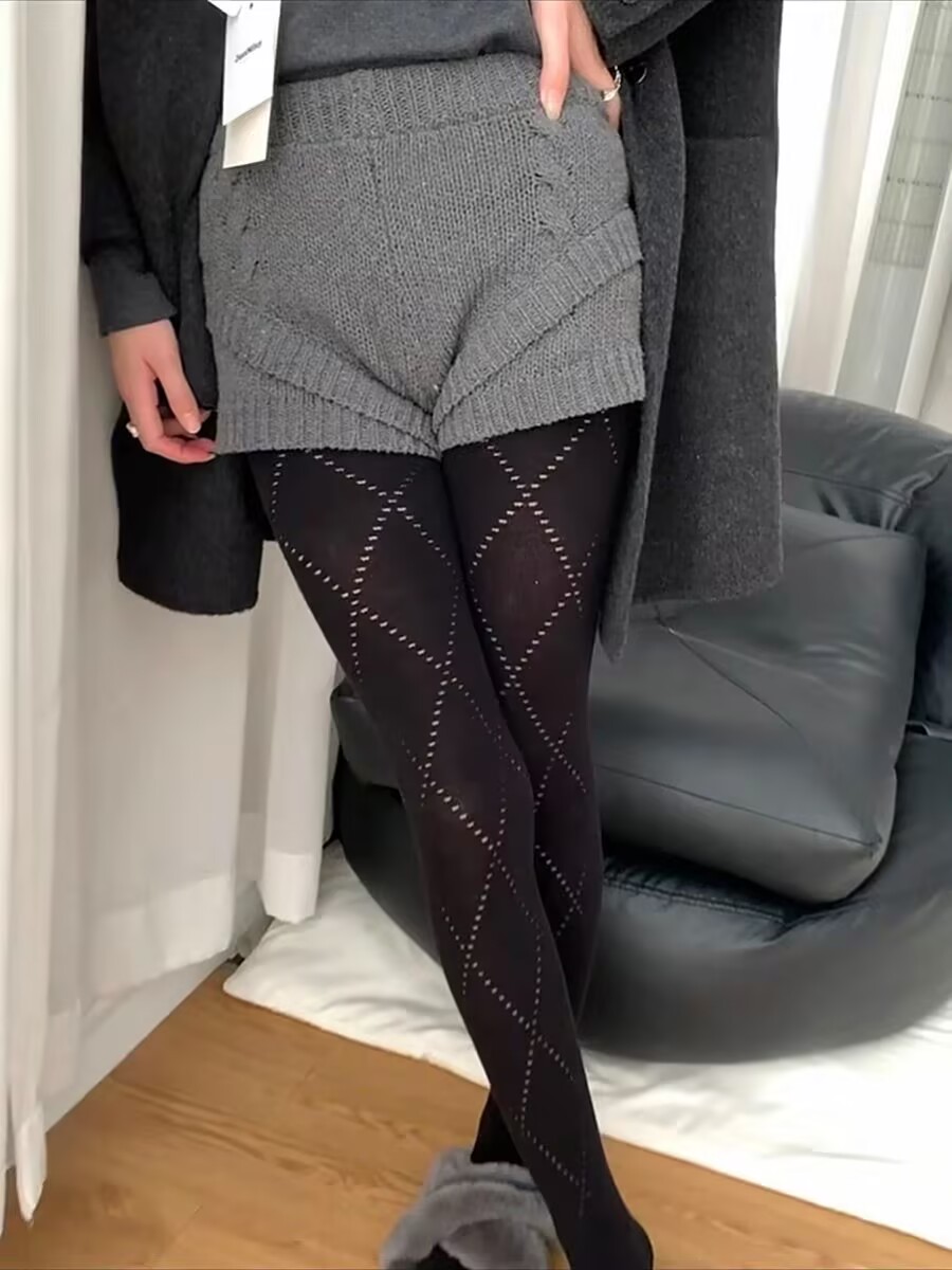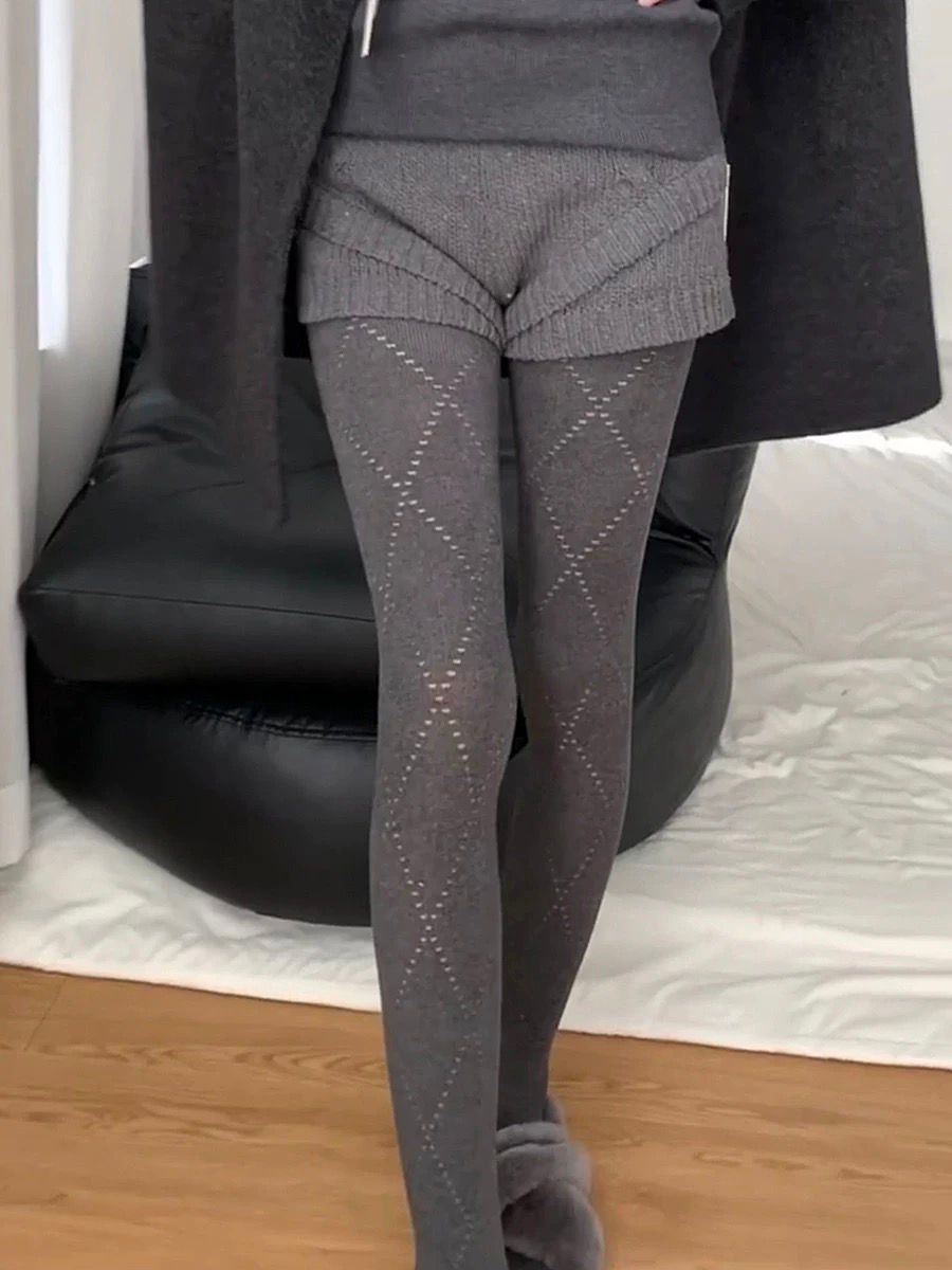 灰色連褲襪miu系秋冬季加厚保暖針織外穿菱格絲襪打底褲襪冬季