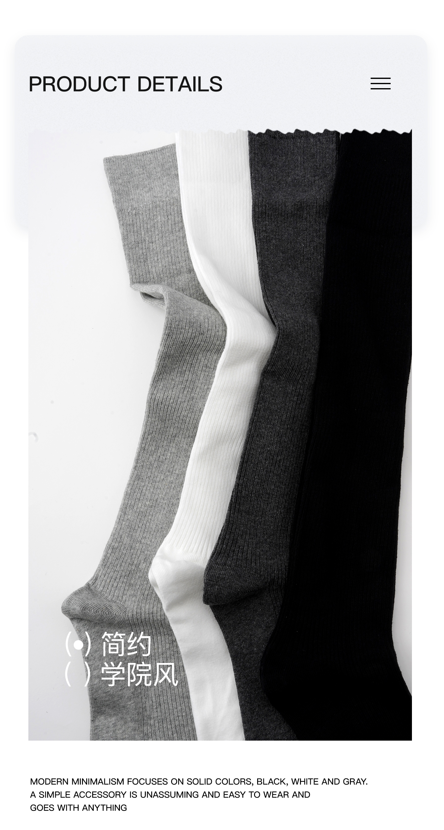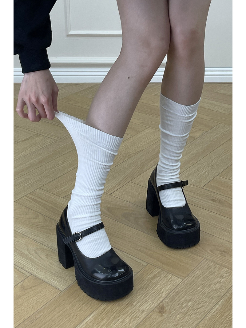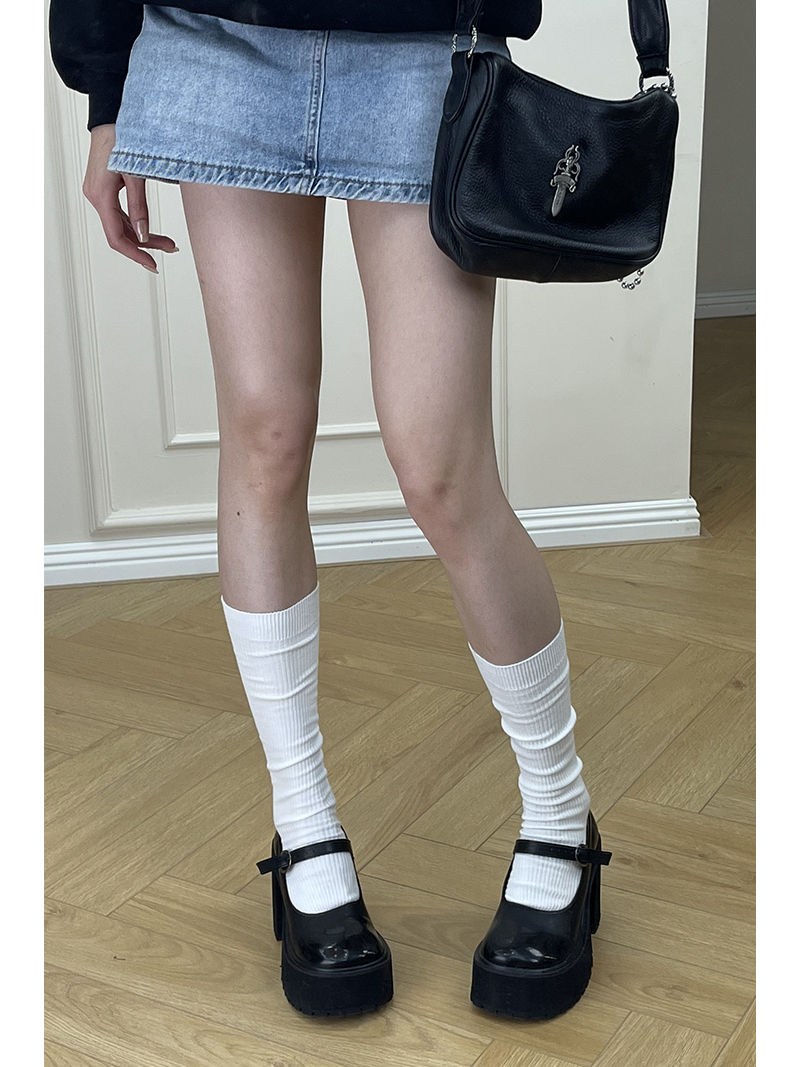 TRISECTION白色長筒襪子女秋冬季純棉小腿襪jk堆堆襪過膝高筒靴襪