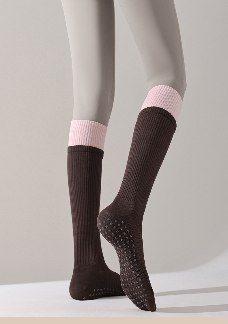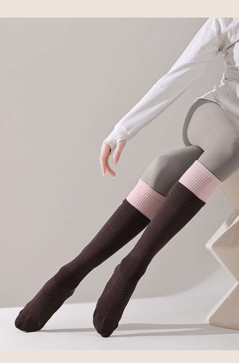 瑜珈襪子女無骨壓力騎行長筒小腿襪跳操健身普拉提專業防滑運動襪