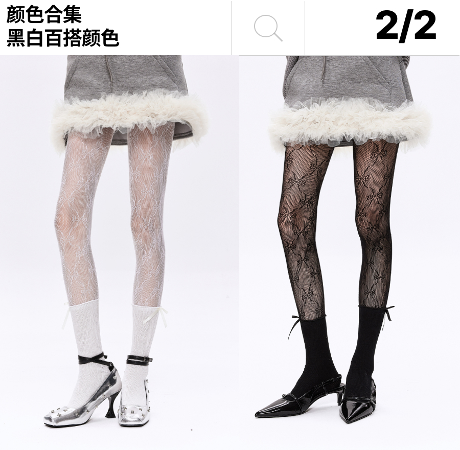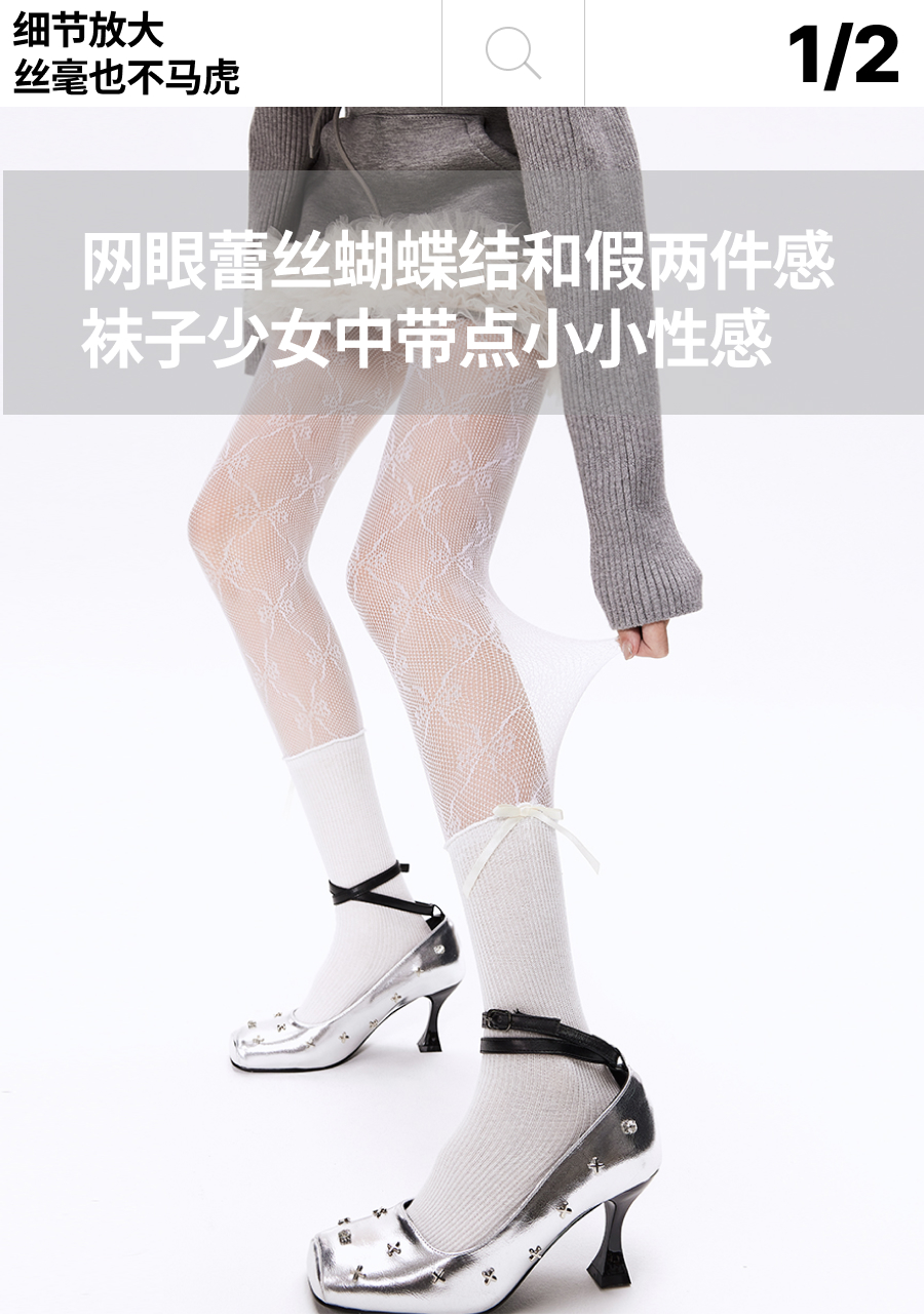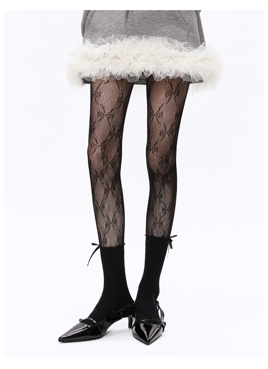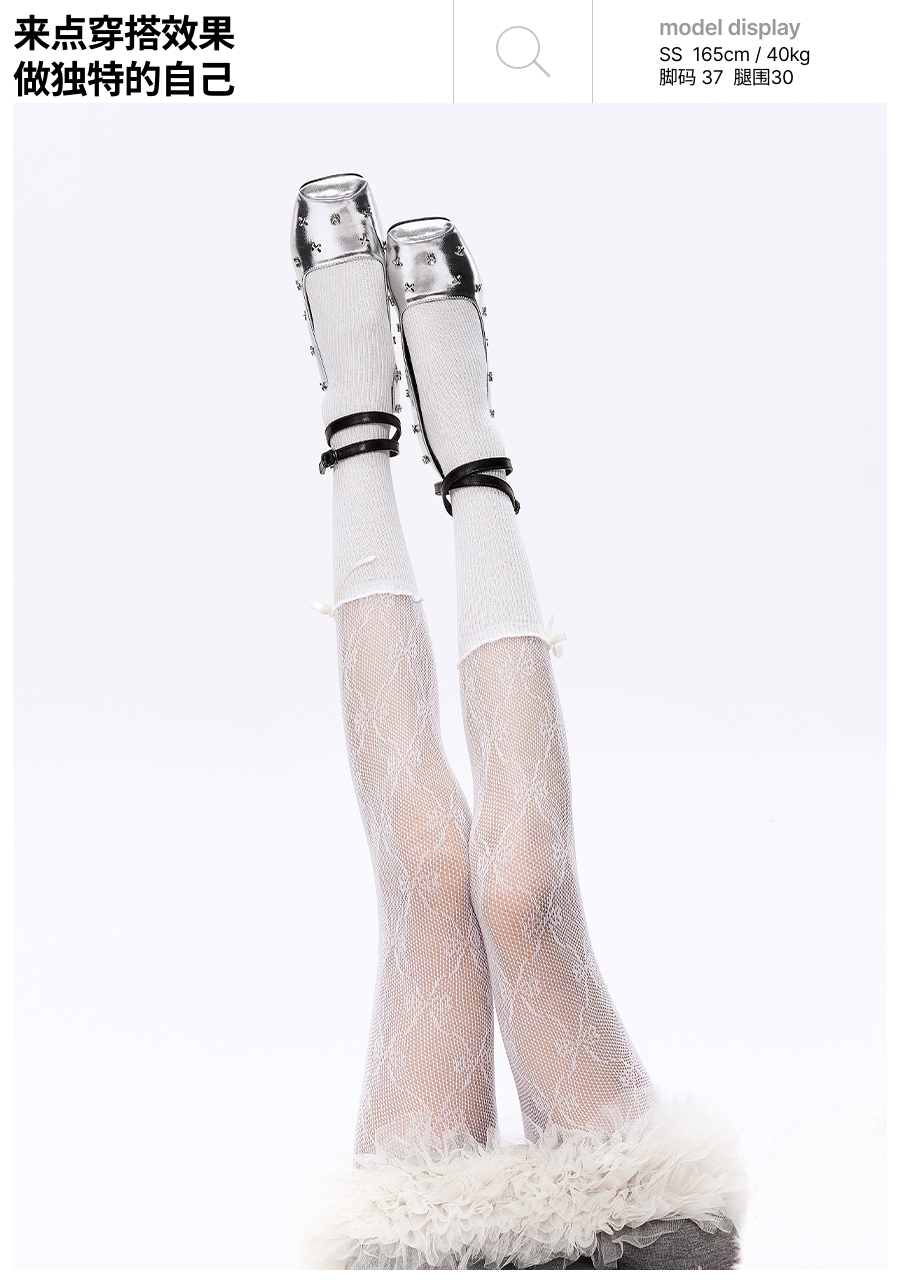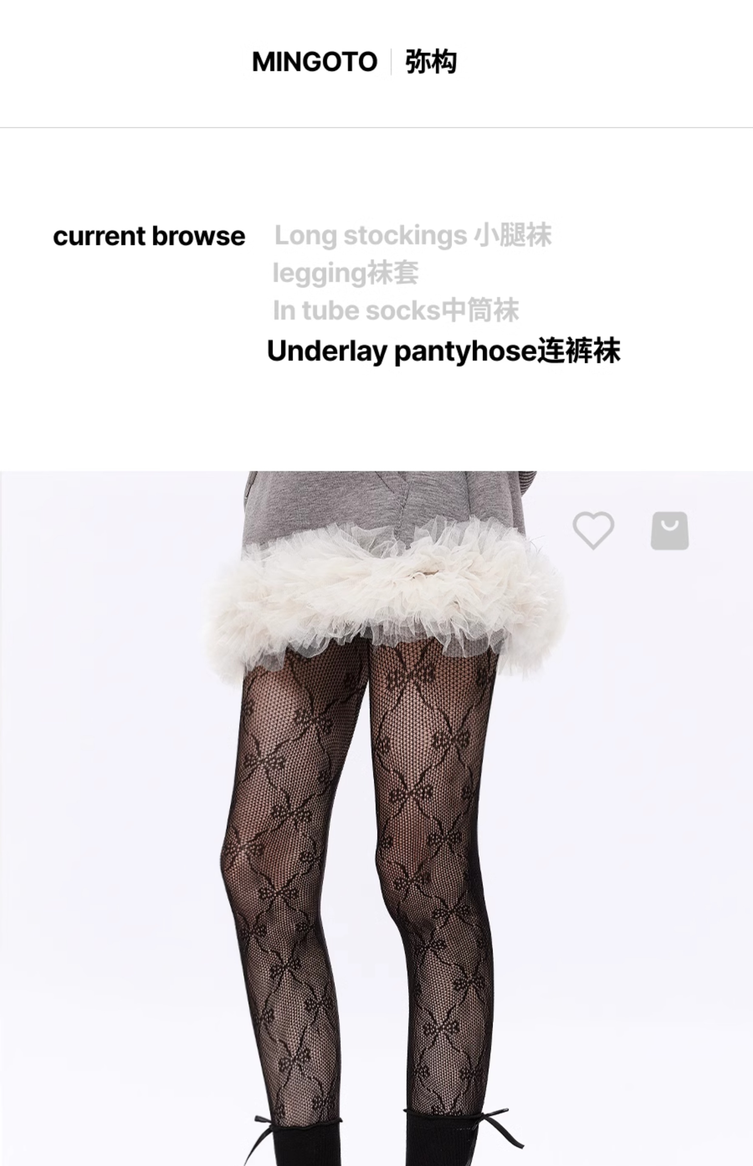 mingoto彌搆春秋蝴蝶結曡穿連褲襪鏤空薄款蕾絲網襪jk白色絲襪