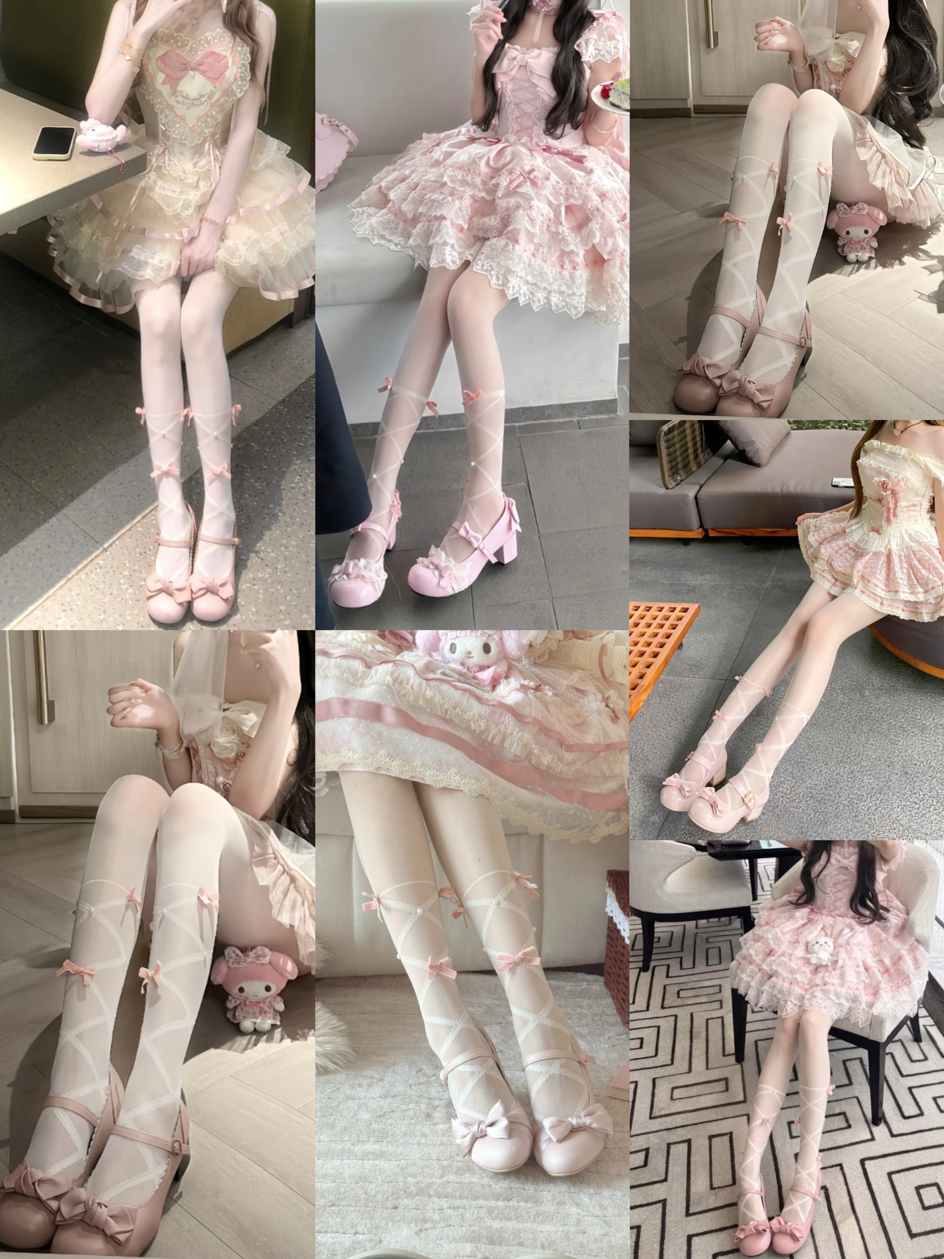 甜美少女芭蕾風絲襪奶白色蝴蝶結連褲襪純欲少蘿薄款洛麗塔襪子薄