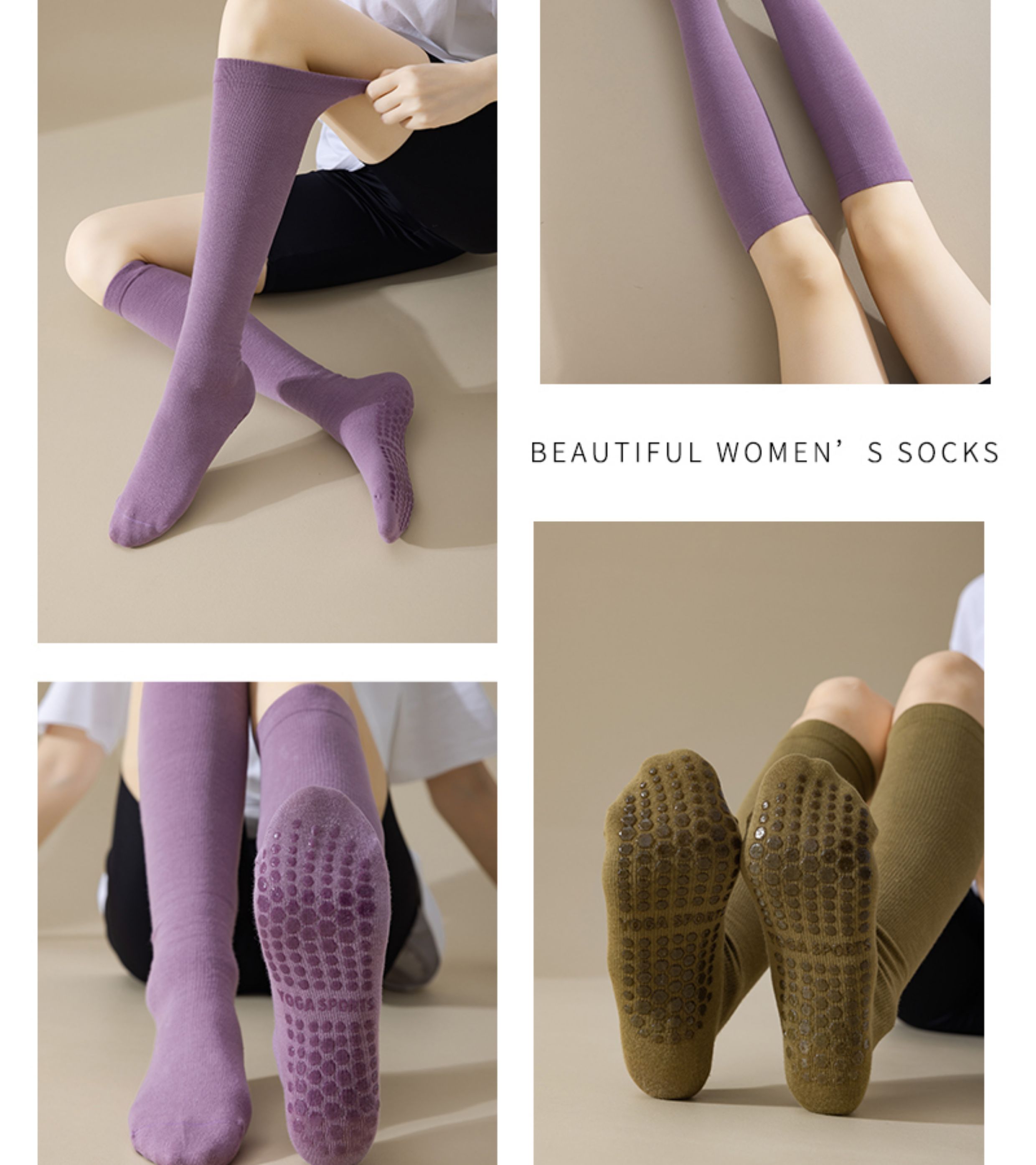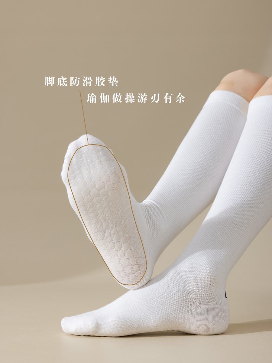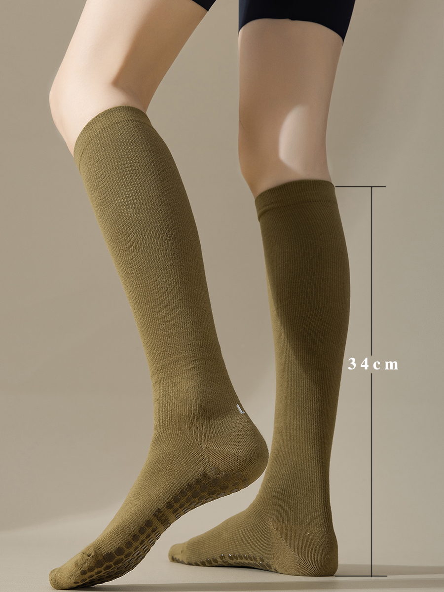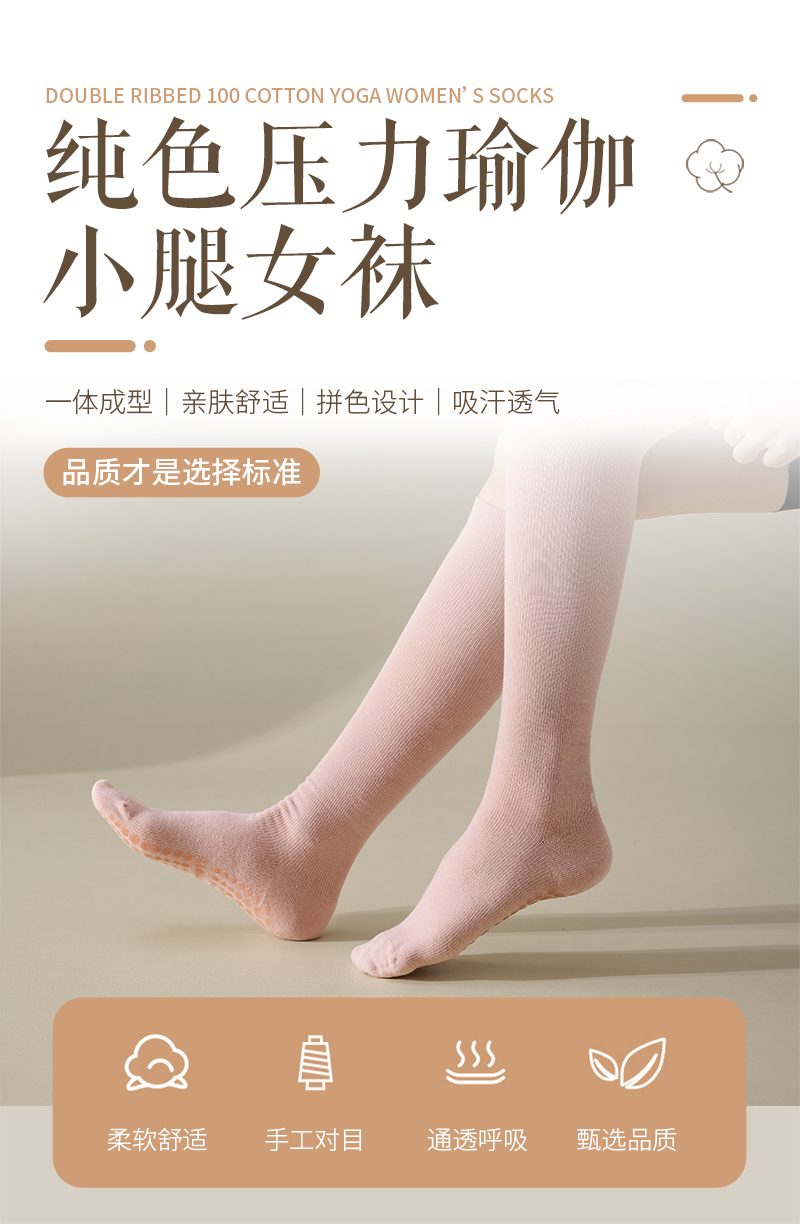 高品質純色壓力防滑瑜珈普拉提跳操運動無骨小腿高長筒及膝女襪子