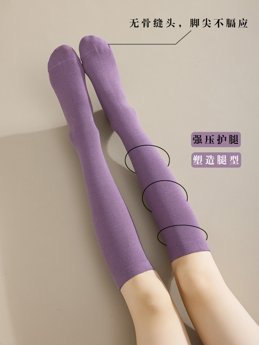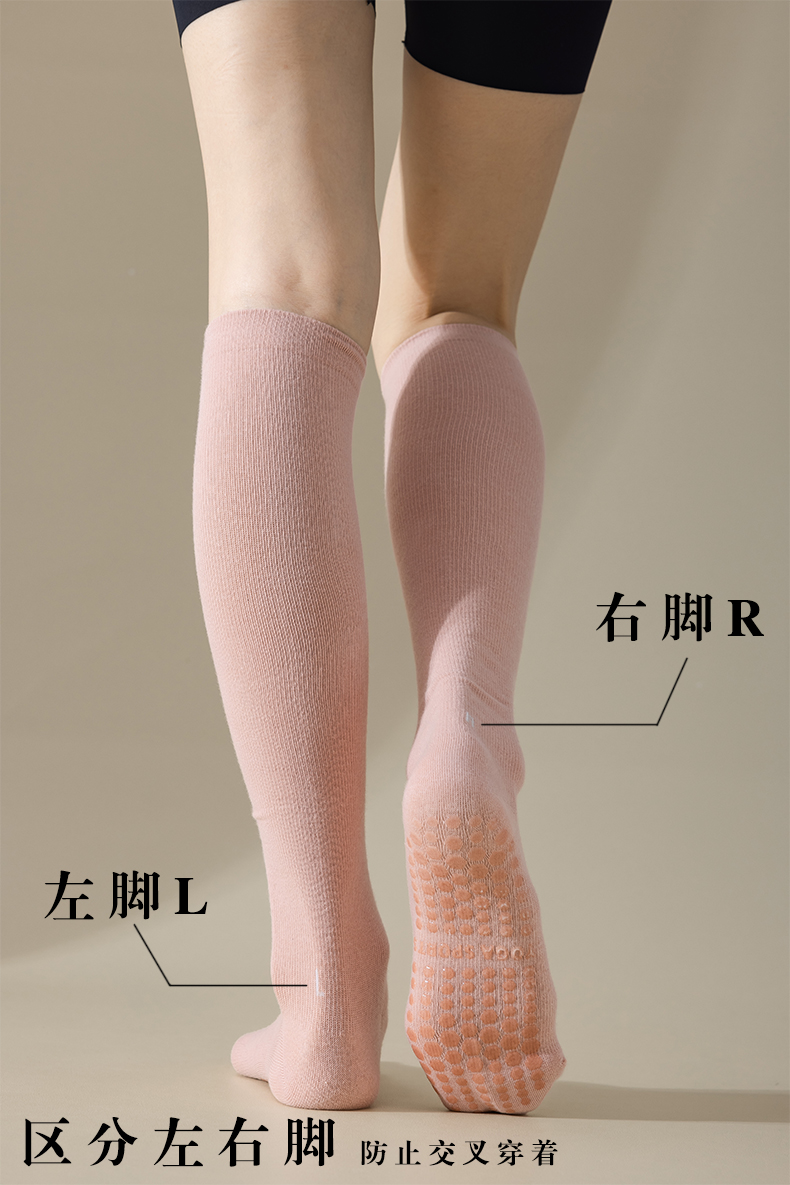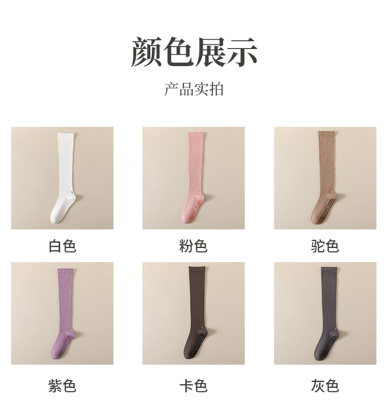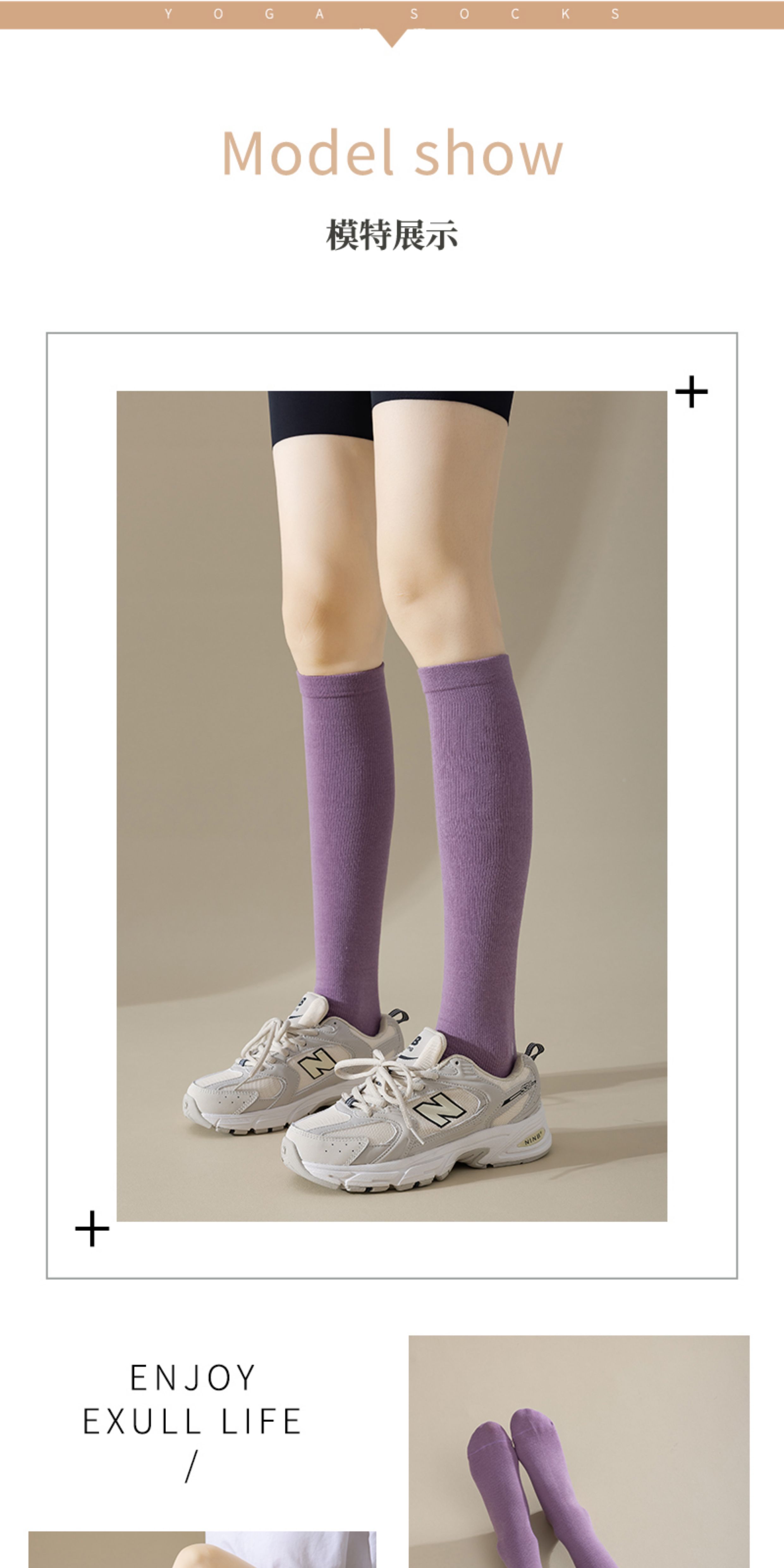 高品質純色壓力防滑瑜珈普拉提跳操運動無骨小腿高長筒及膝女襪子