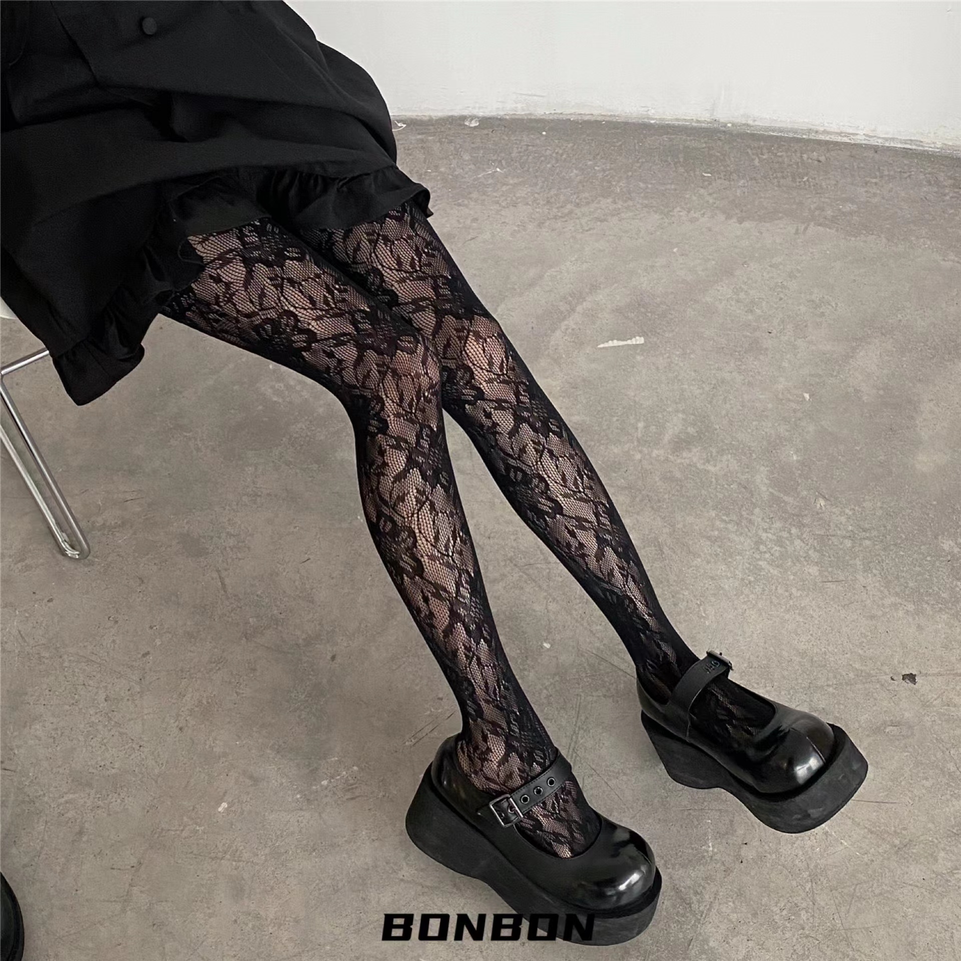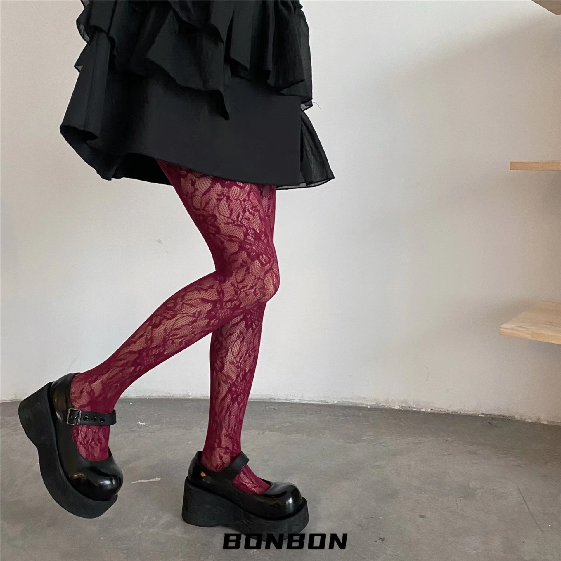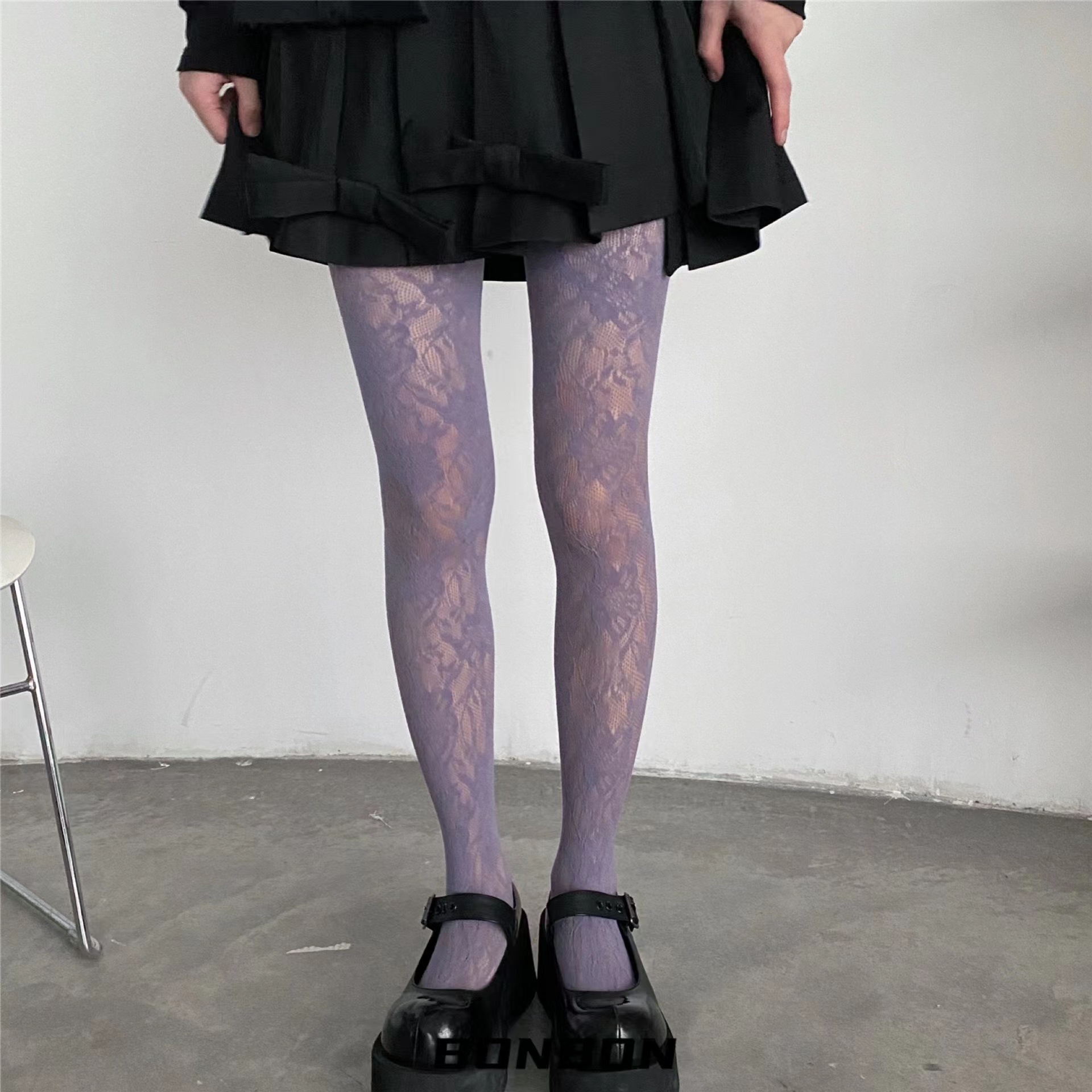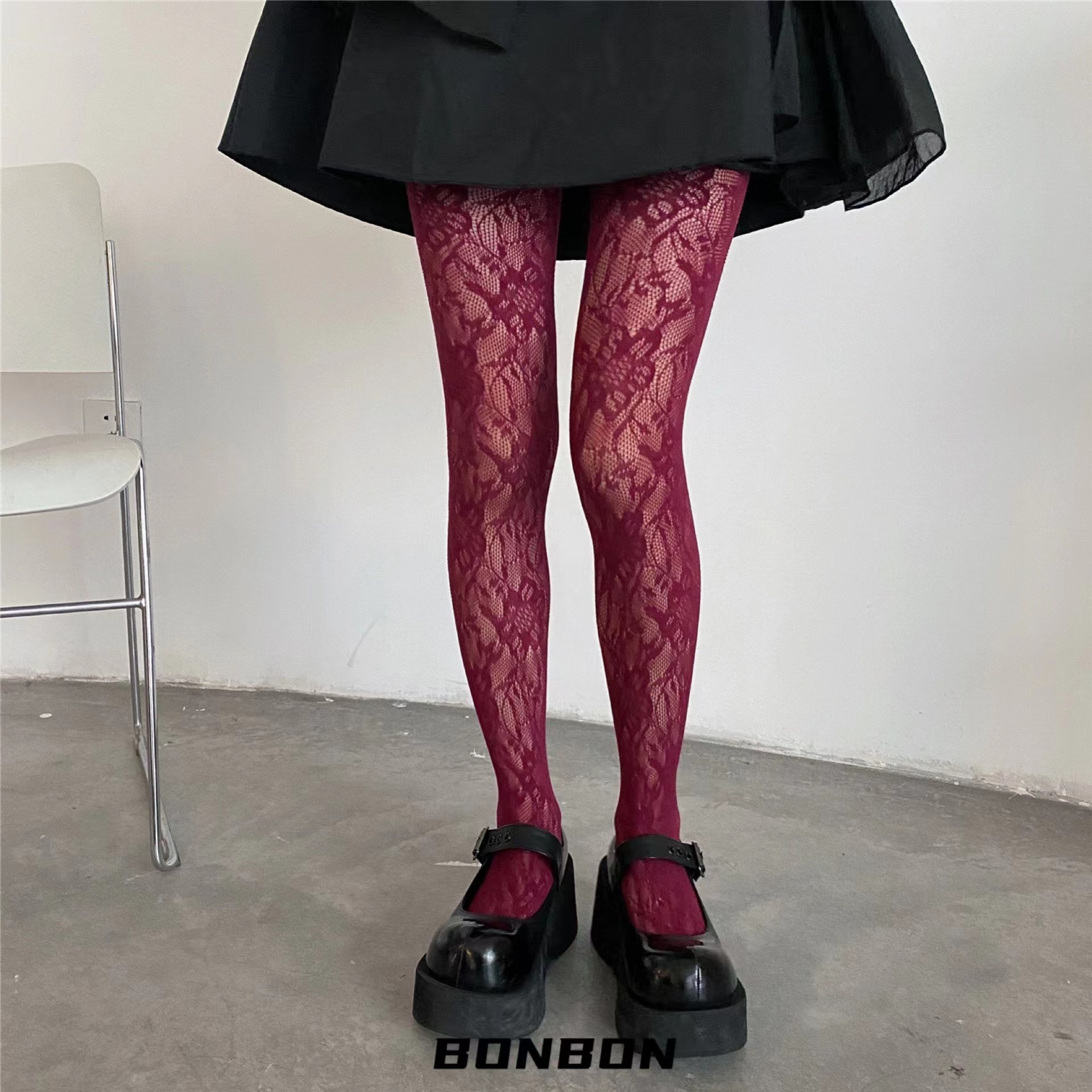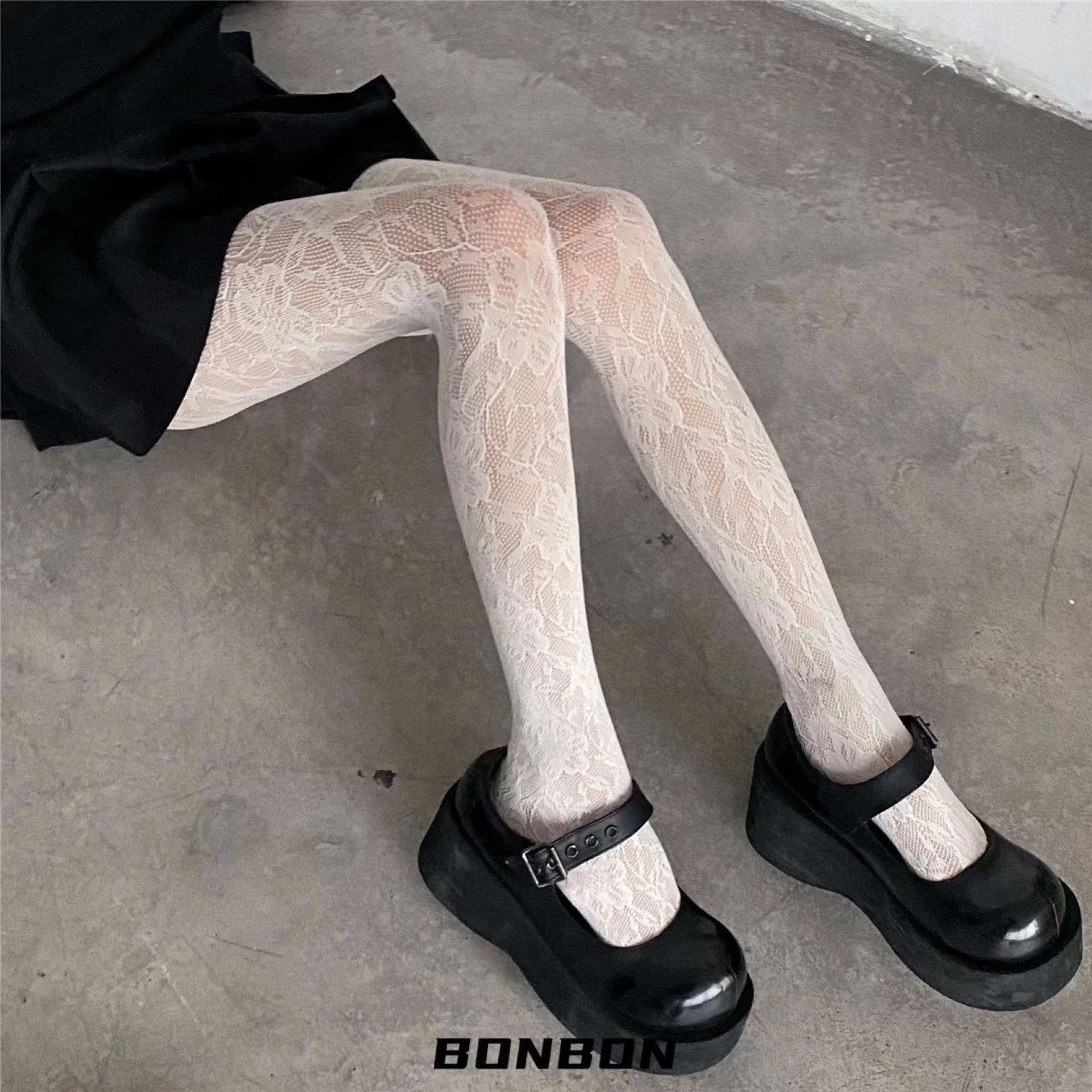 BON 春夏小衆彩色連褲襪盛開的鮮花純色蕾絲網襪甜酷辣妹絲襪