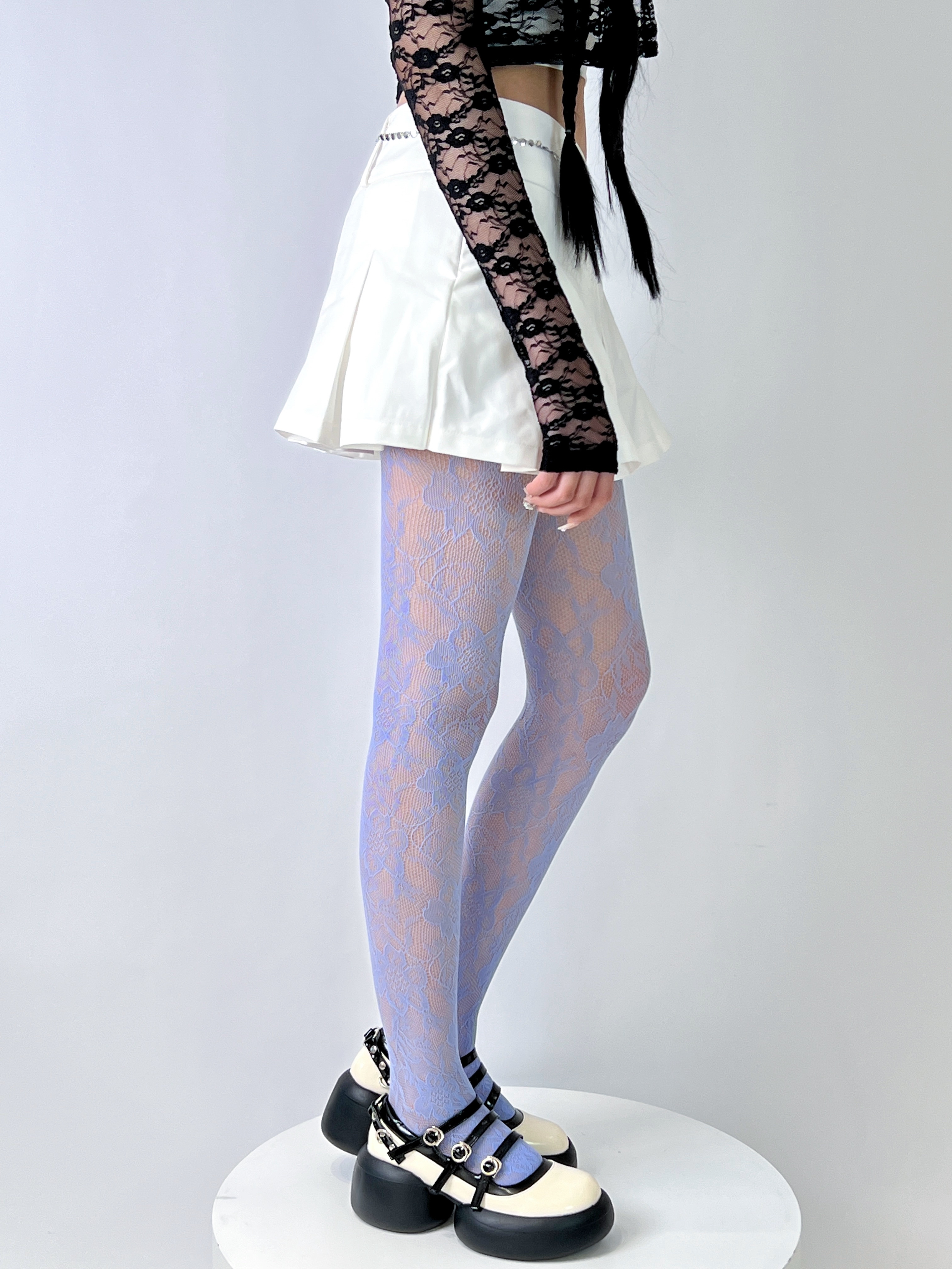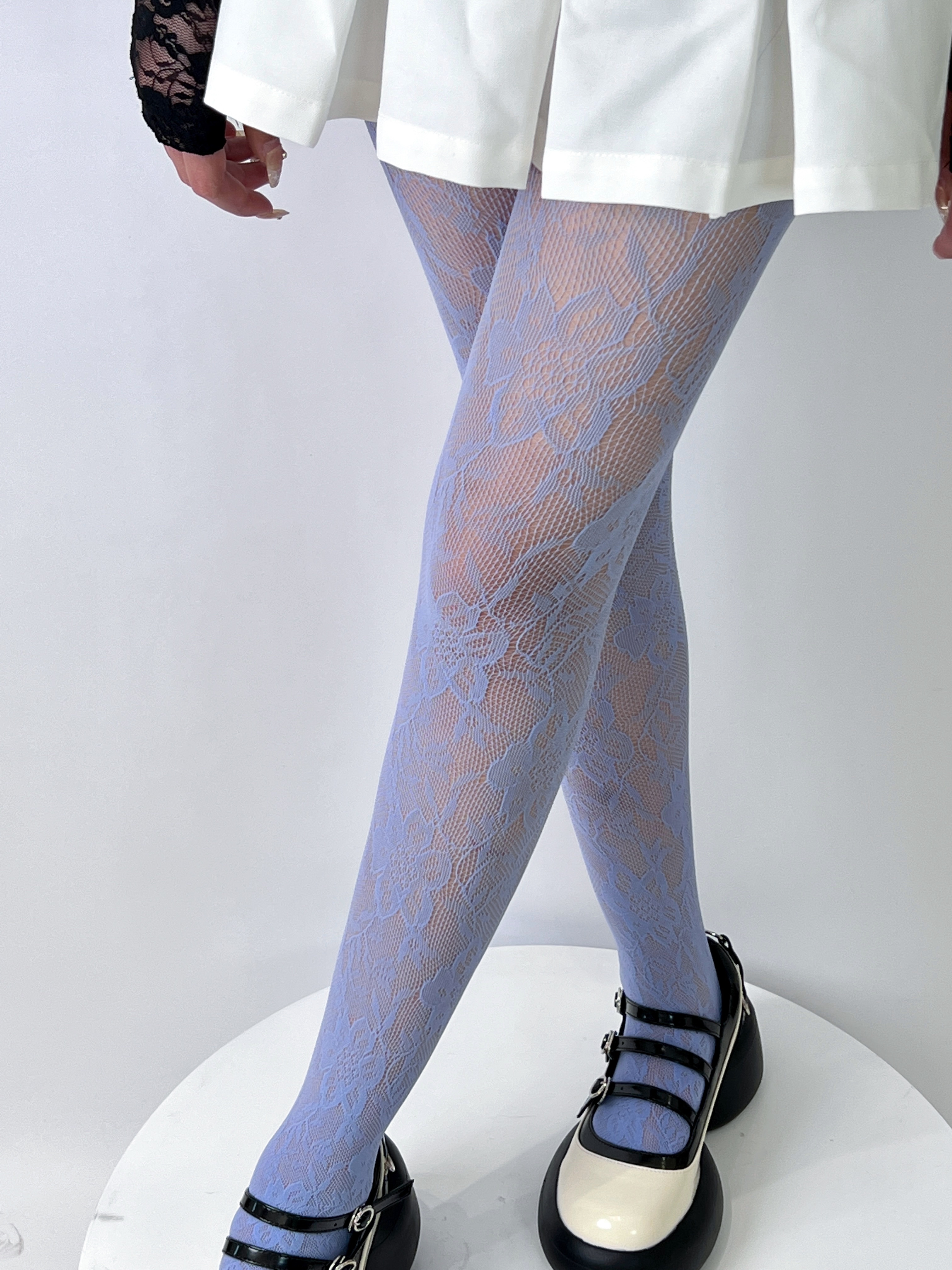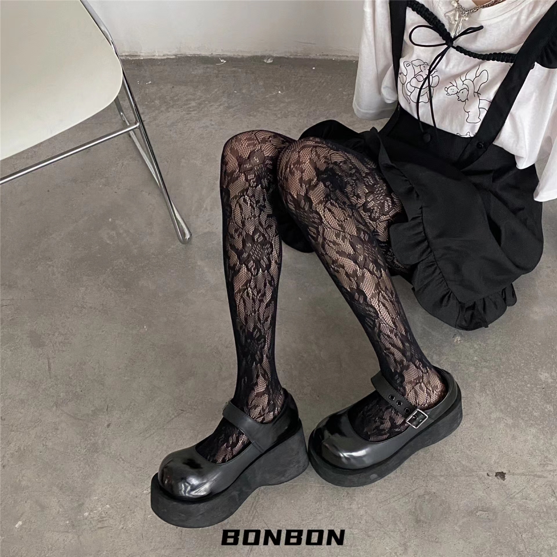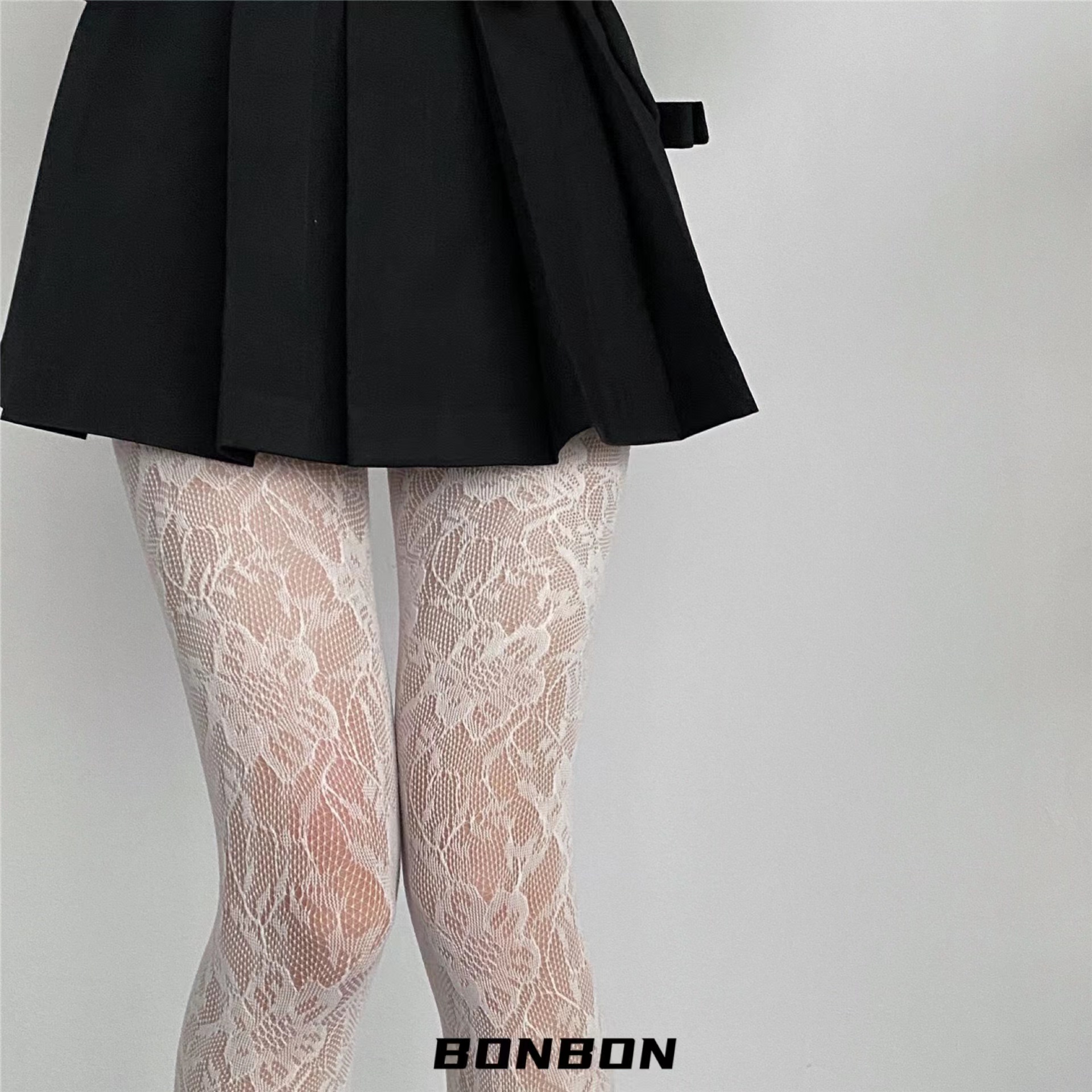 BON 春夏小衆彩色連褲襪盛開的鮮花純色蕾絲網襪甜酷辣妹絲襪