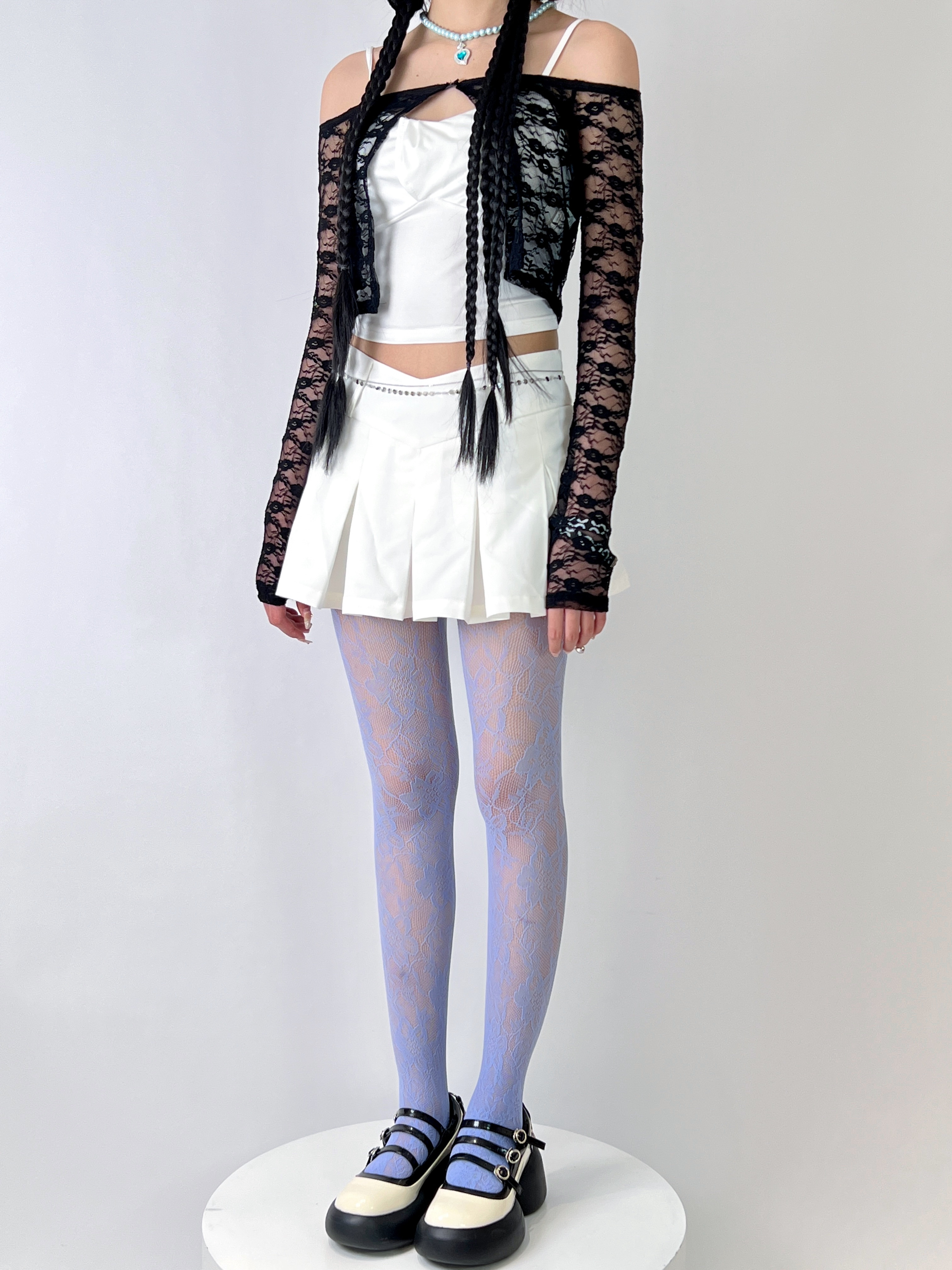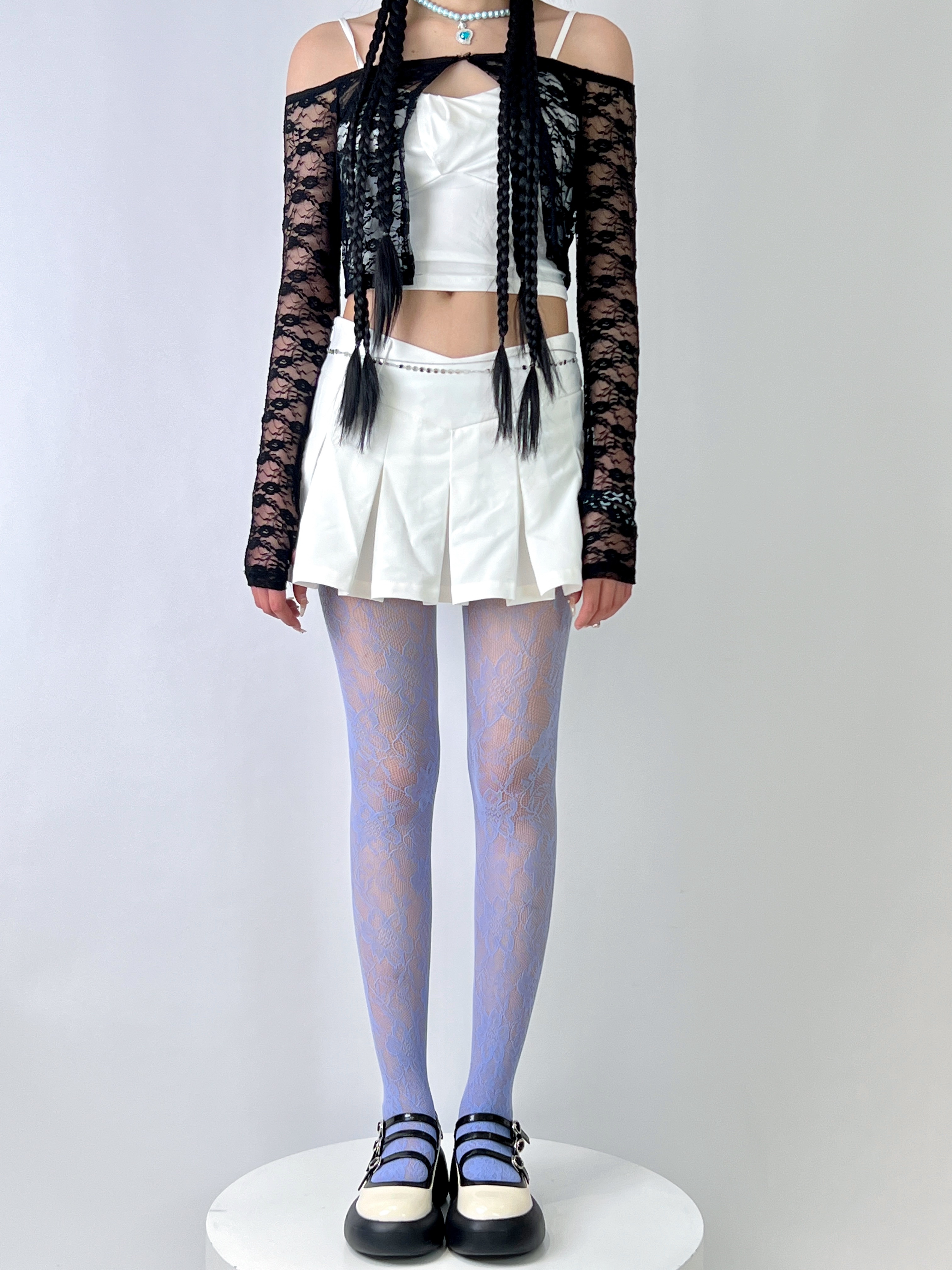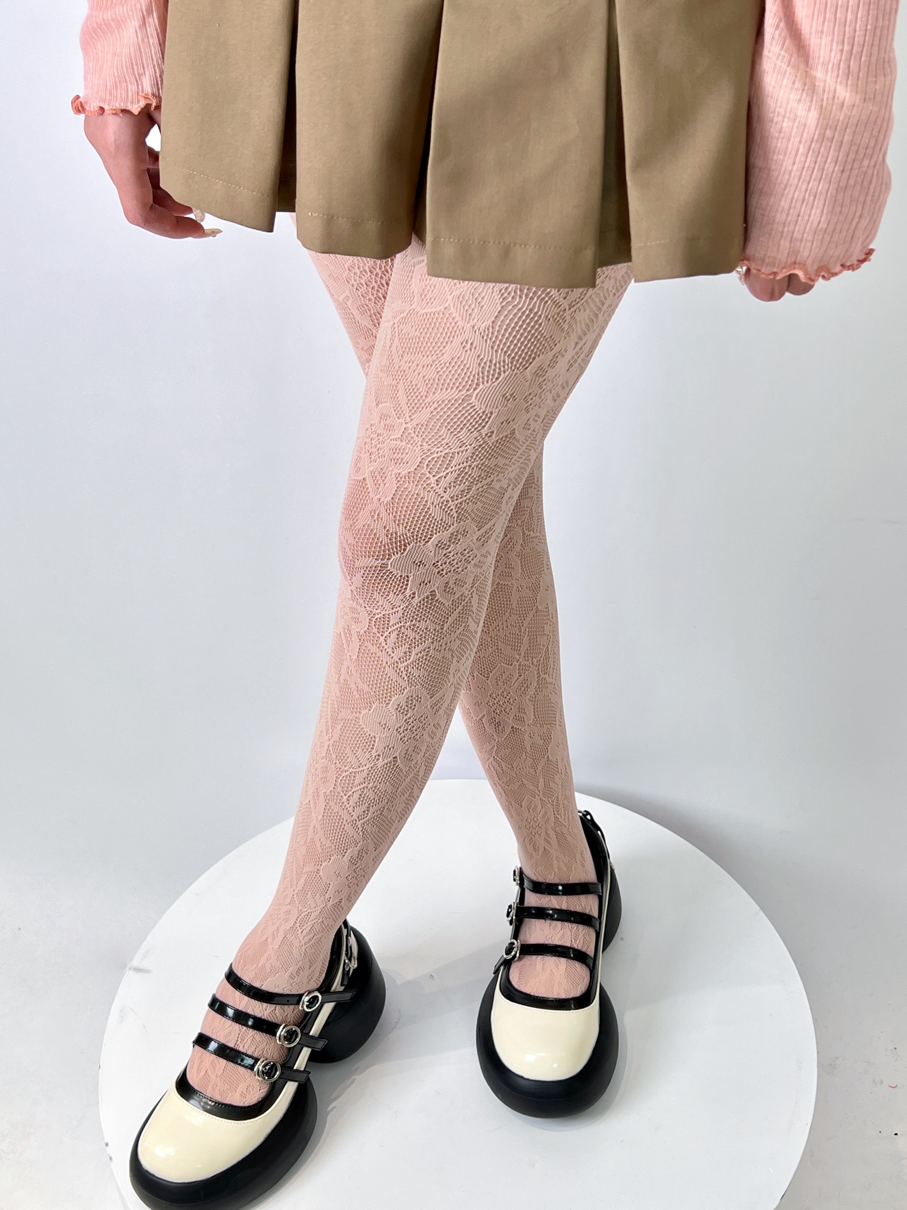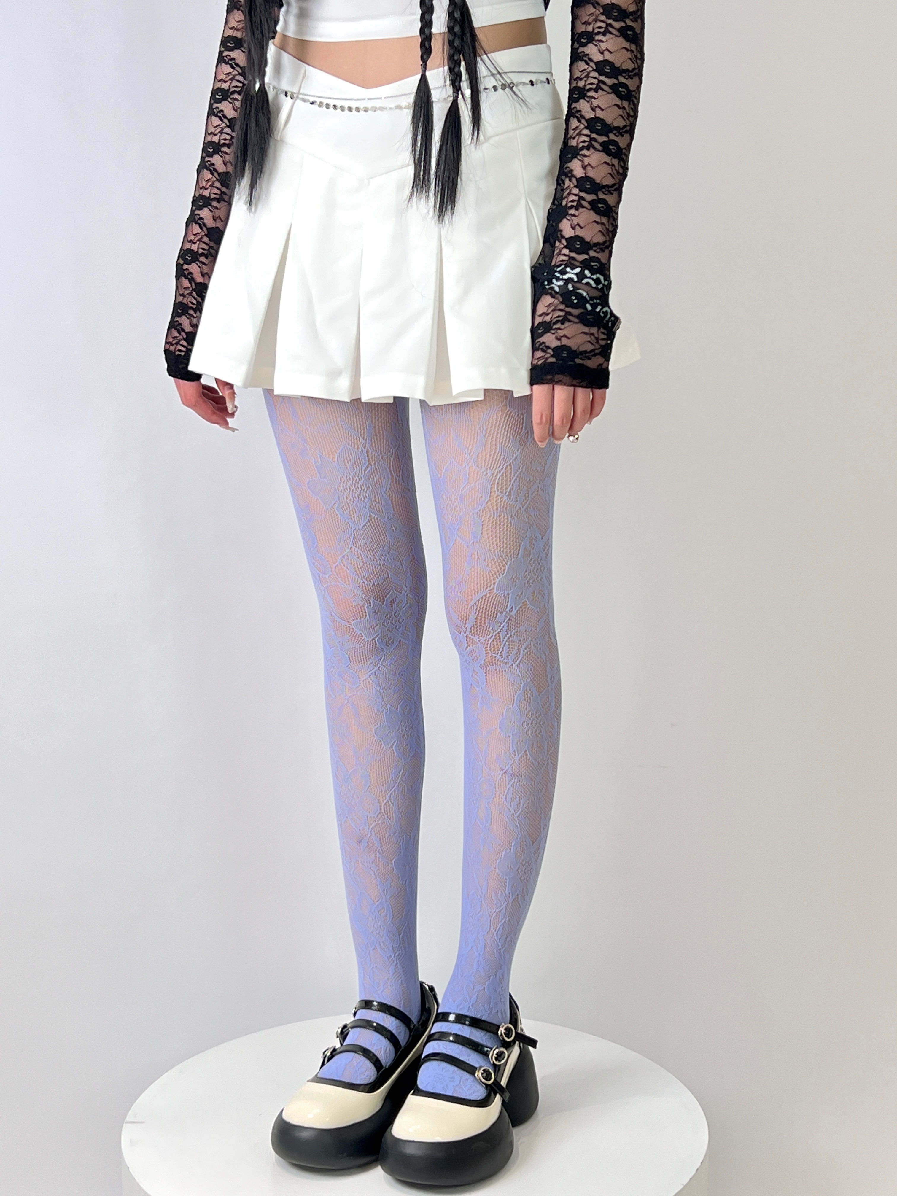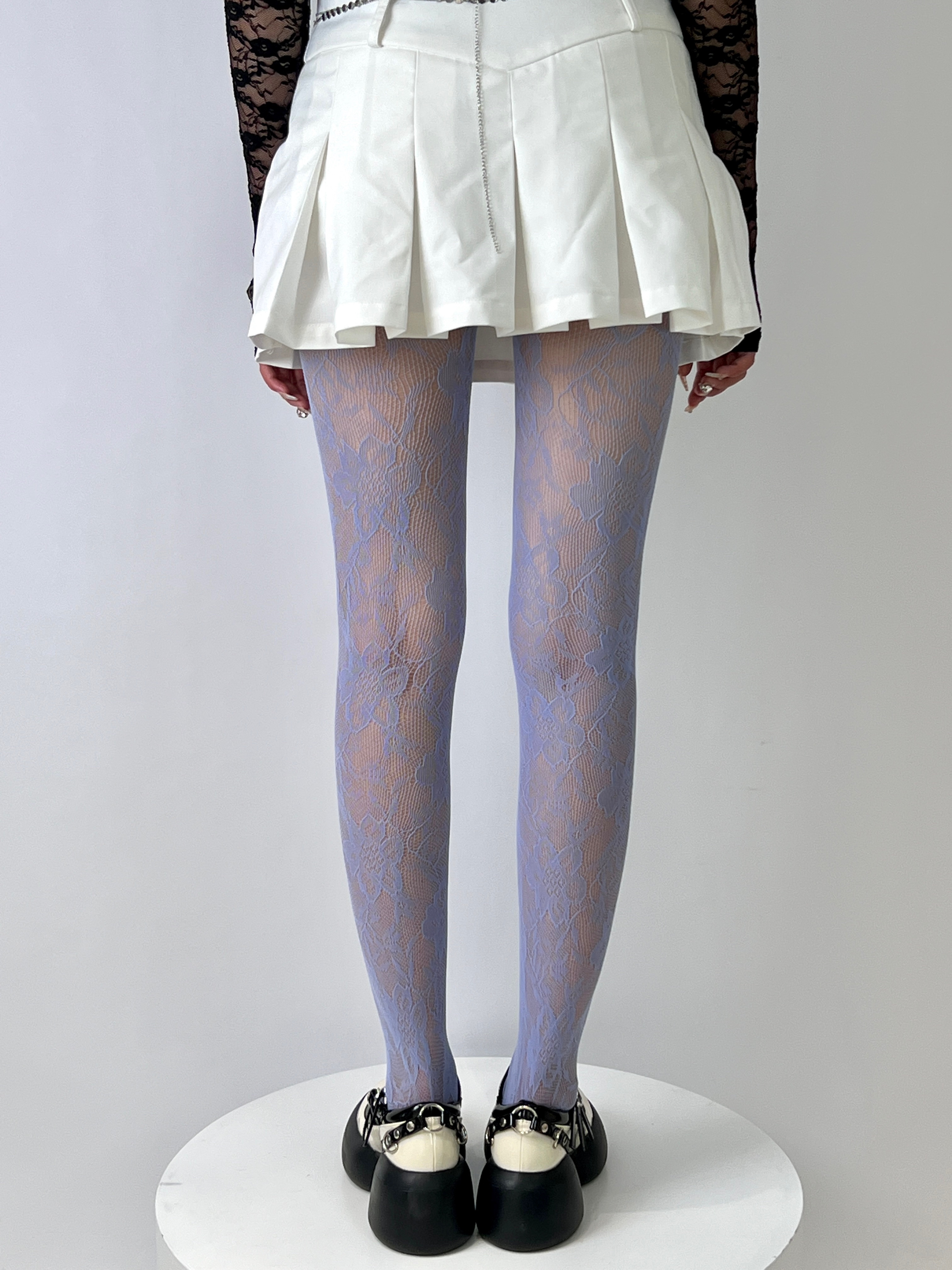 BON 春夏小衆彩色連褲襪盛開的鮮花純色蕾絲網襪甜酷辣妹絲襪