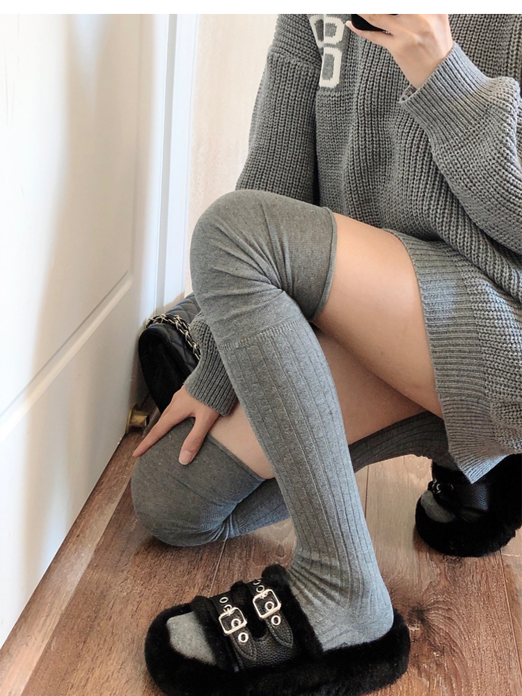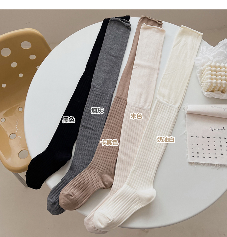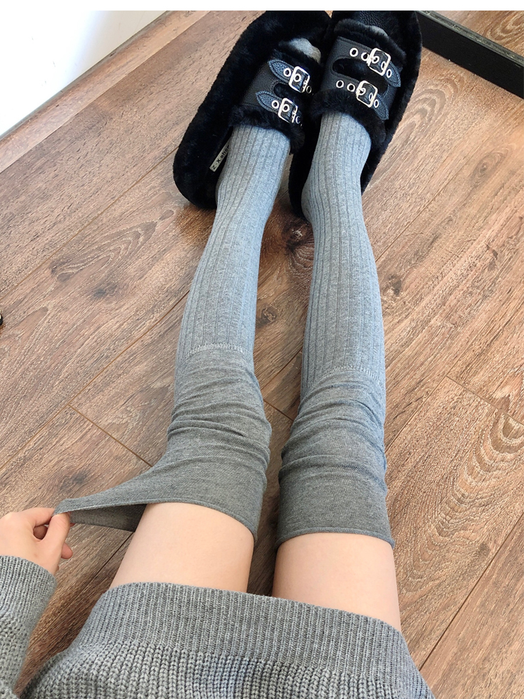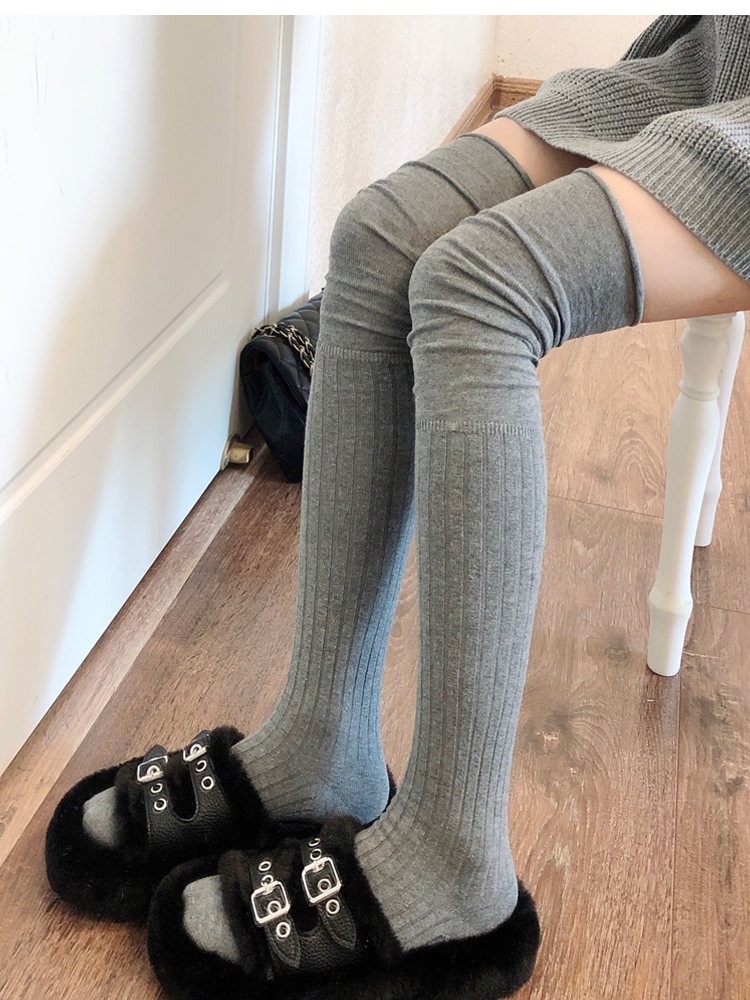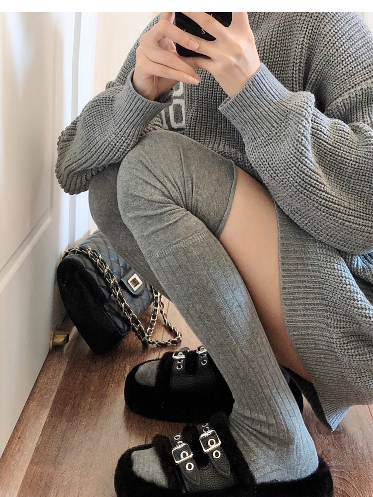 菸灰色過膝襪女春秋薄款黑色大腿襪拼接高筒襪東大門米白色長筒襪